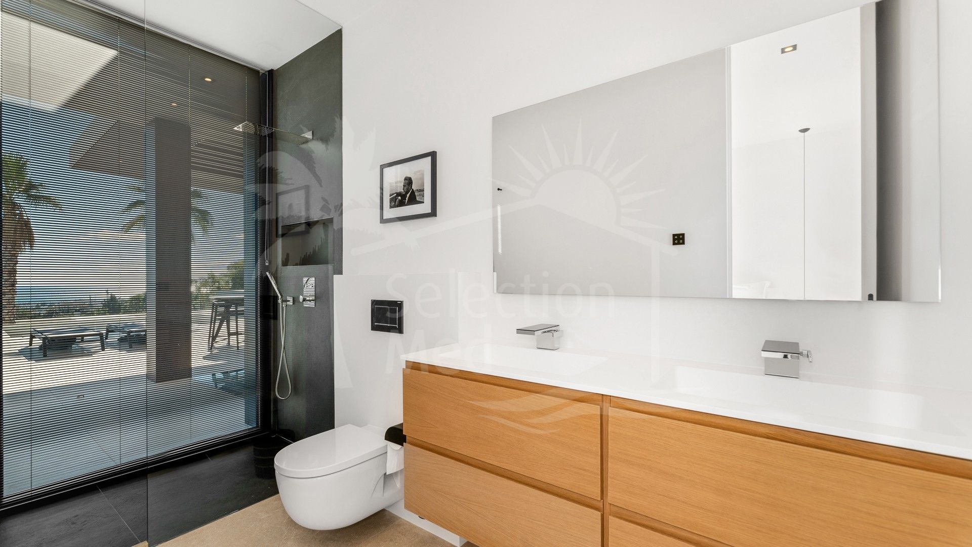 Los cinco amplios dormitorios, incluidos tres con acceso a una gran terraza en la primera planta, ofrecen un confort excepcional, mientras que los seis elegantes baños realzan la sofisticación de la villa. En el sótano, un gimnasio y una sala de TV completan las comodidades.
