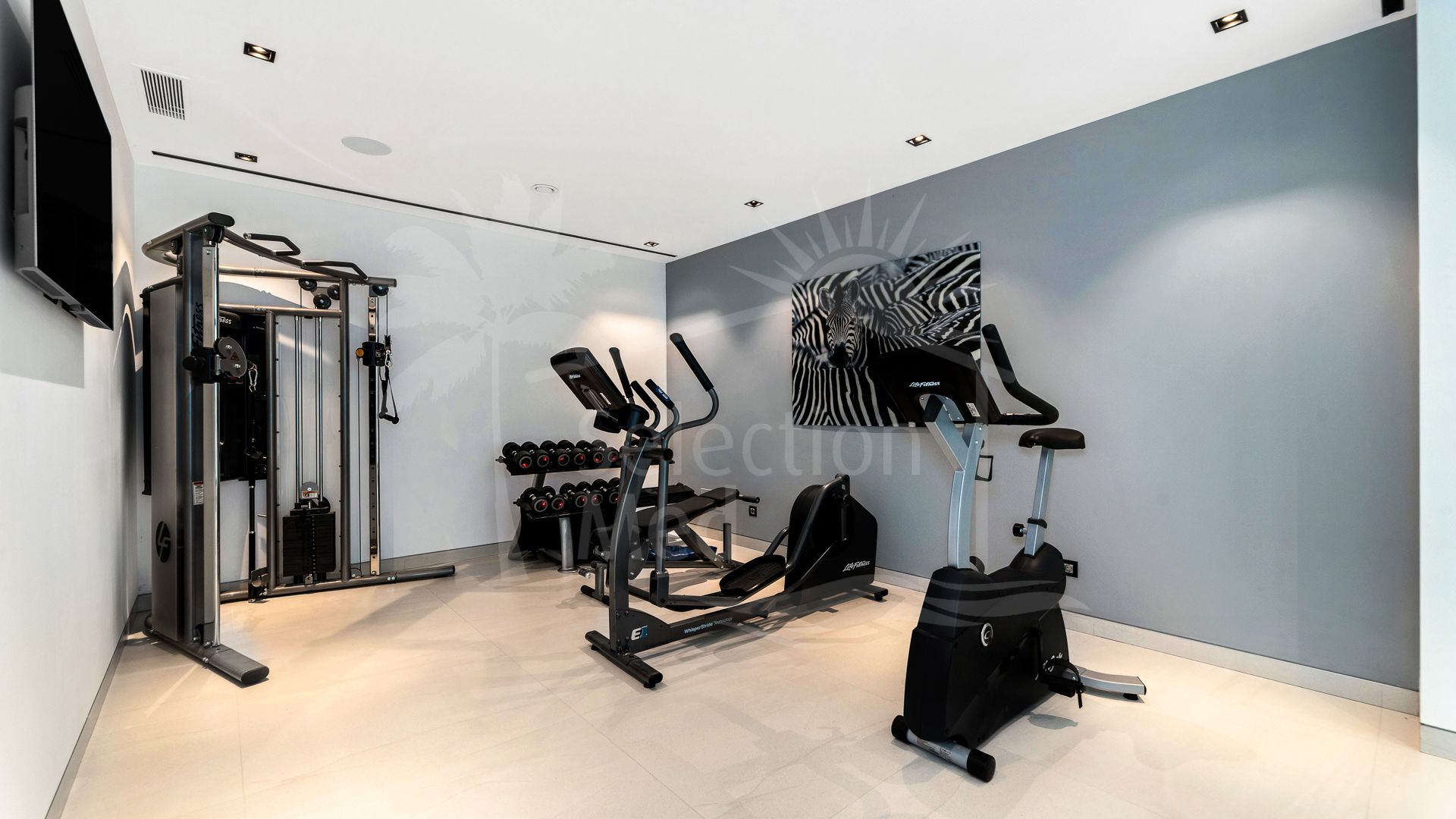 Un gimnasio privado mejora el bienestar en casa, mientras que el acceso directo a un garaje para múltiples vehículos garantiza una vida cotidiana sin interrupciones.