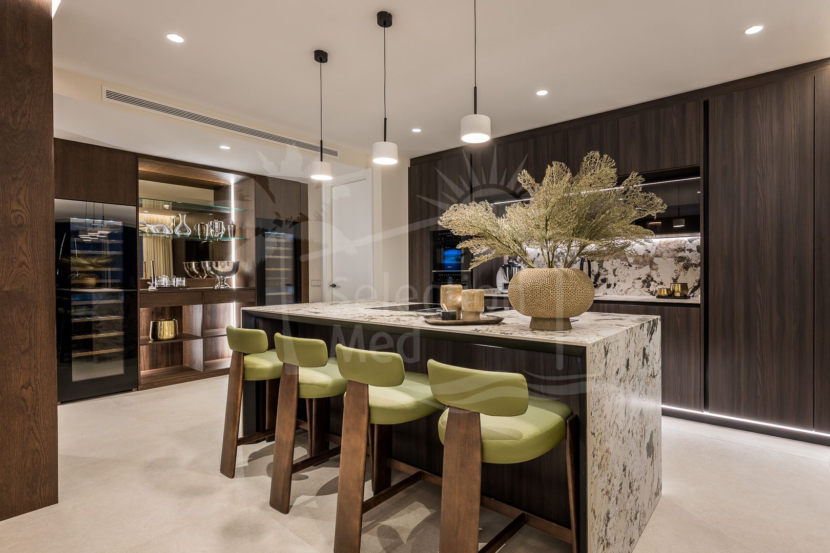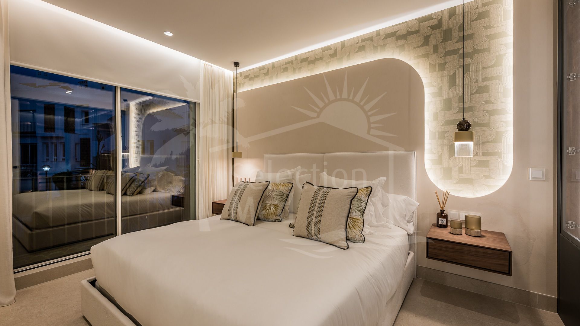 Con una orientación suroeste, el apartamento disfruta de luz natural durante todo el día y atardeceres impresionantes desde su amplia terraza de 40 m². El diseño interior ha sido cuidadosamente pensado hasta el último detalle: sistema de sonido Bang & Olufsen de última generación, chimenea eléctrica en el salón, armarios empotrados a medida y una exquisita bañera exenta en el baño principal.