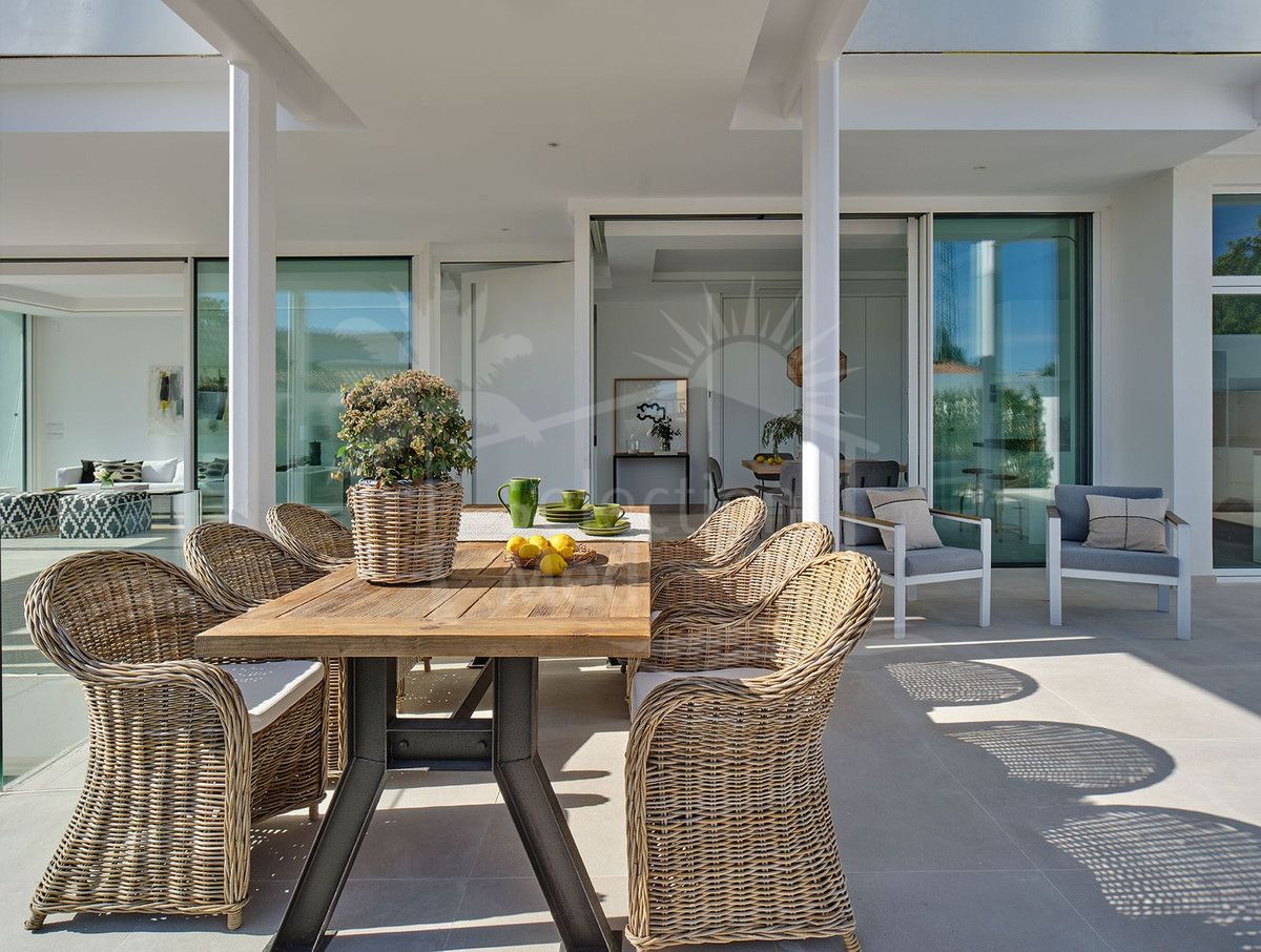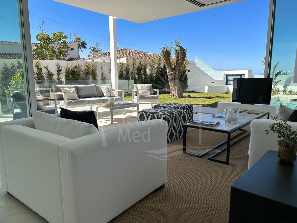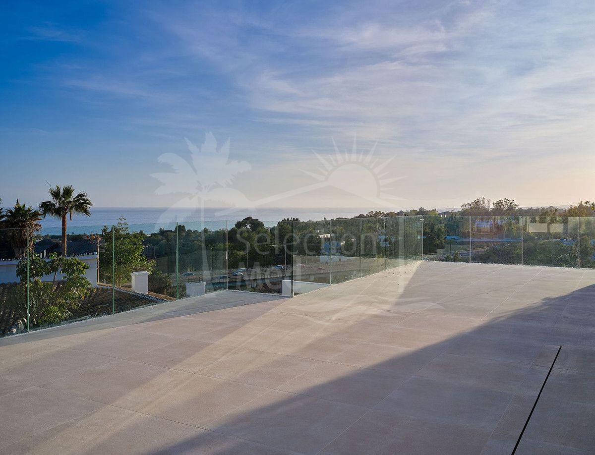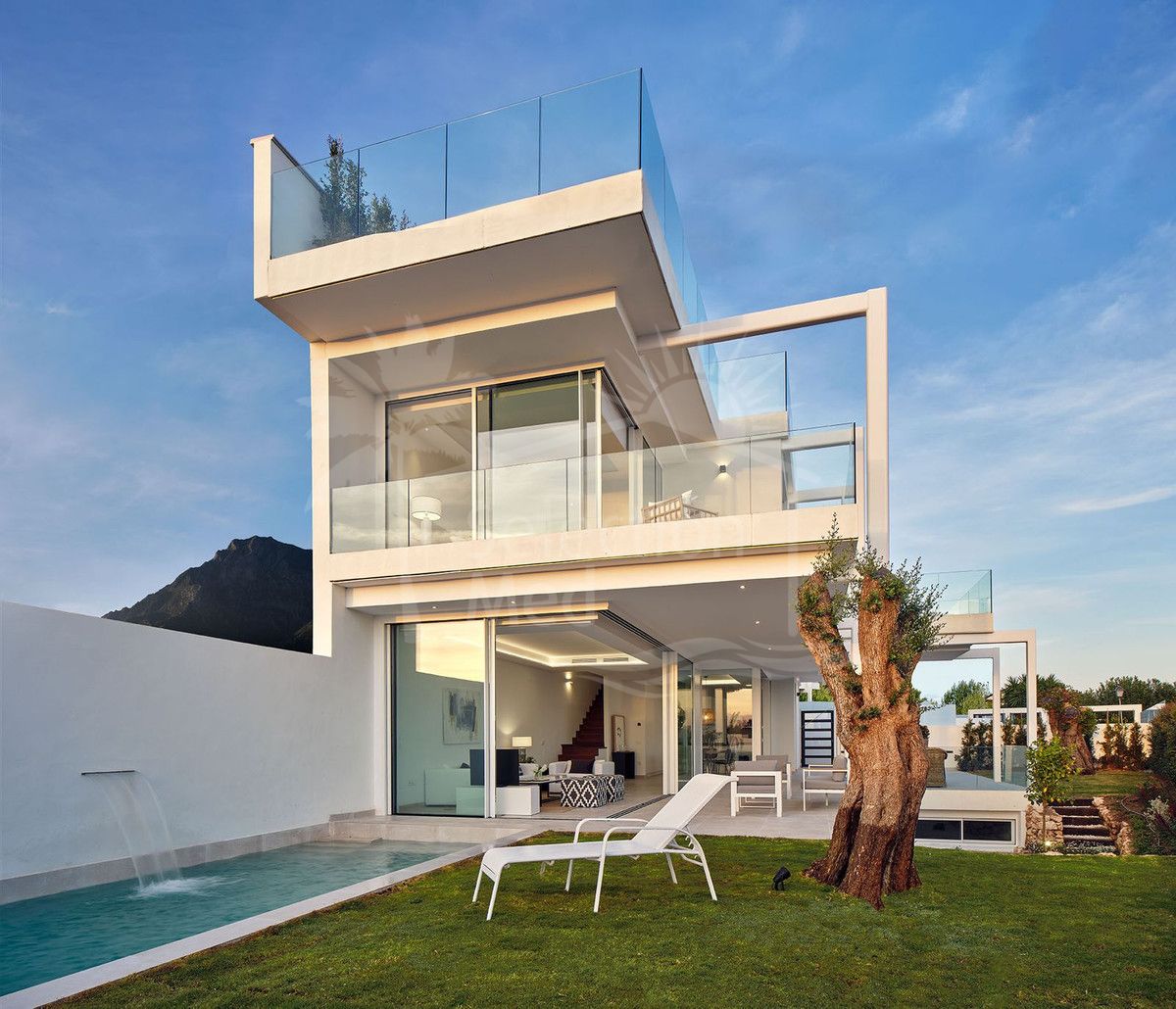 Ubicada en una parcela espectacular con vista al mar de 4.000m2, dentro un conjunto residencial compuesto de 8 villas independientes con un diseño moderno muy innovador ubicado en la conocida zona de Valdeolletas, zona muy consolidada a 5 minutos del centro de Marbella y sus playas.