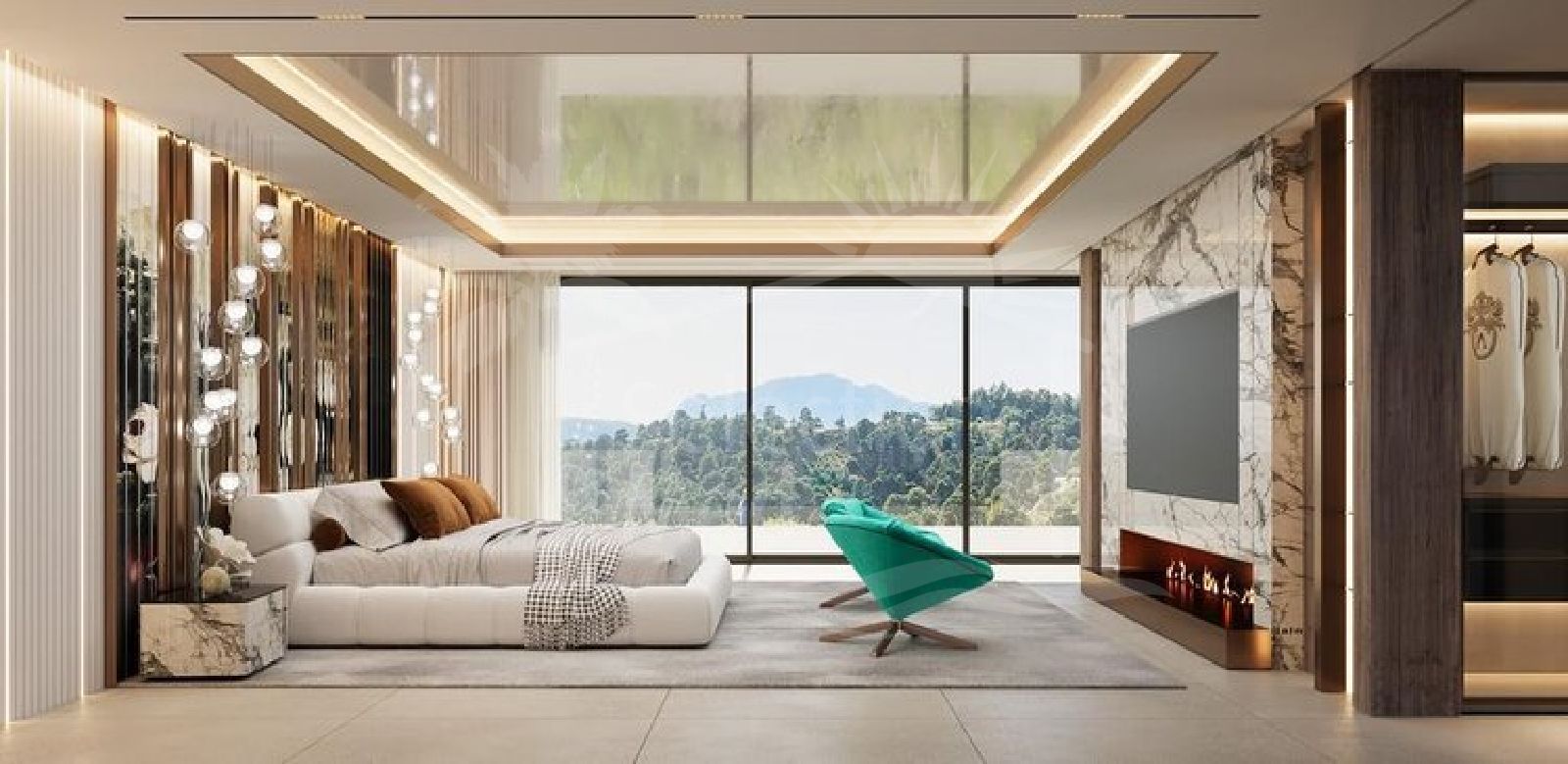 La villa cuenta con seis amplios dormitorios, cada uno con su propio baño en suite, así como un aseo de cortesía, garantizando un alojamiento cómodo para familiares e invitados. Los interiores están meticulosamente equipados con acabados de alta gama, incluyendo suelos de porcelanato, armarios empotrados y puertas de cristal, mientras que la cocina totalmente equipada y la cocina de servicio independiente ofrecen espacios culinarios versátiles. Las áreas de salón y comedor se abren tanto a terrazas cubiertas como descubiertas, integrando a la perfección los espacios interiores y exteriores. La propiedad es completamente accesible mediante ascensor y está equipada con tecnología domótica, calefacción por suelo radiante en toda la vivienda, unidades individuales de aire acondicionado y sistemas de aerotermia para garantizar el confort durante todo el año.