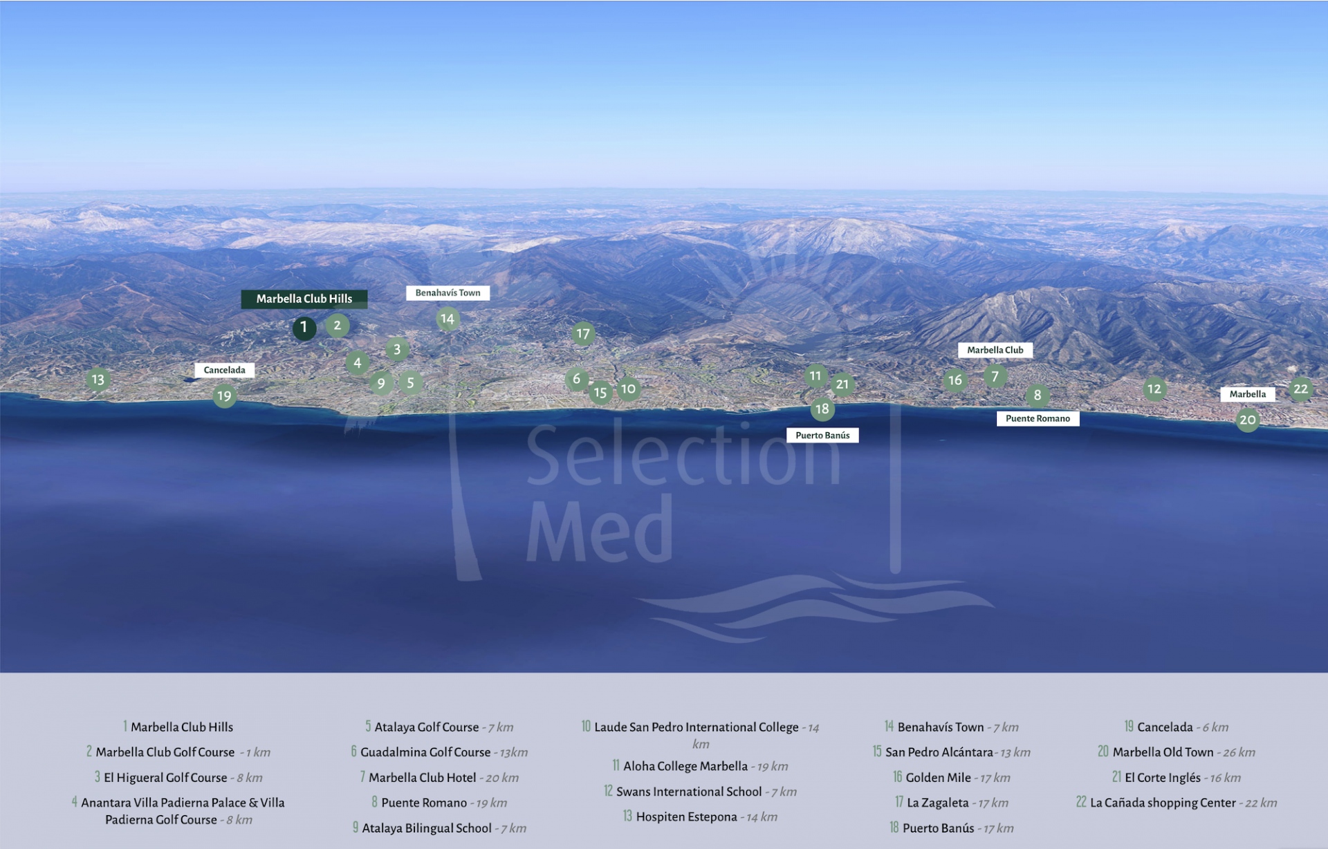 Situado en Benahavís, en el exclusivo enclave entre el renombrado Marbella Club Golf Resort y el icónico Anantara Villa Padierna Palace, esta propiedad excepcional se encuentra a solo 20 minutos de Estepona, a 30 minutos del centro de Marbella y a 55 minutos del aeropuerto internacional de Málaga.