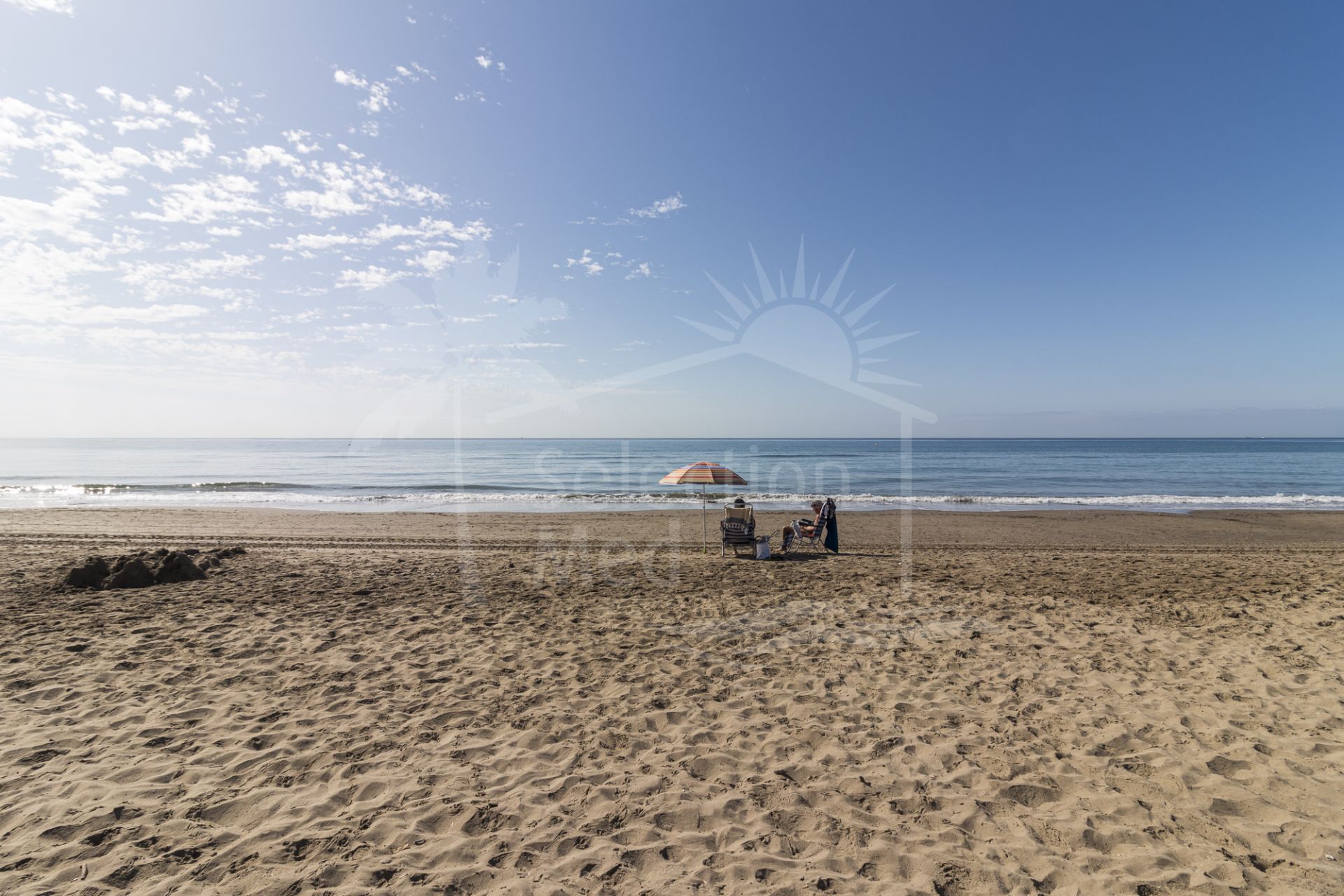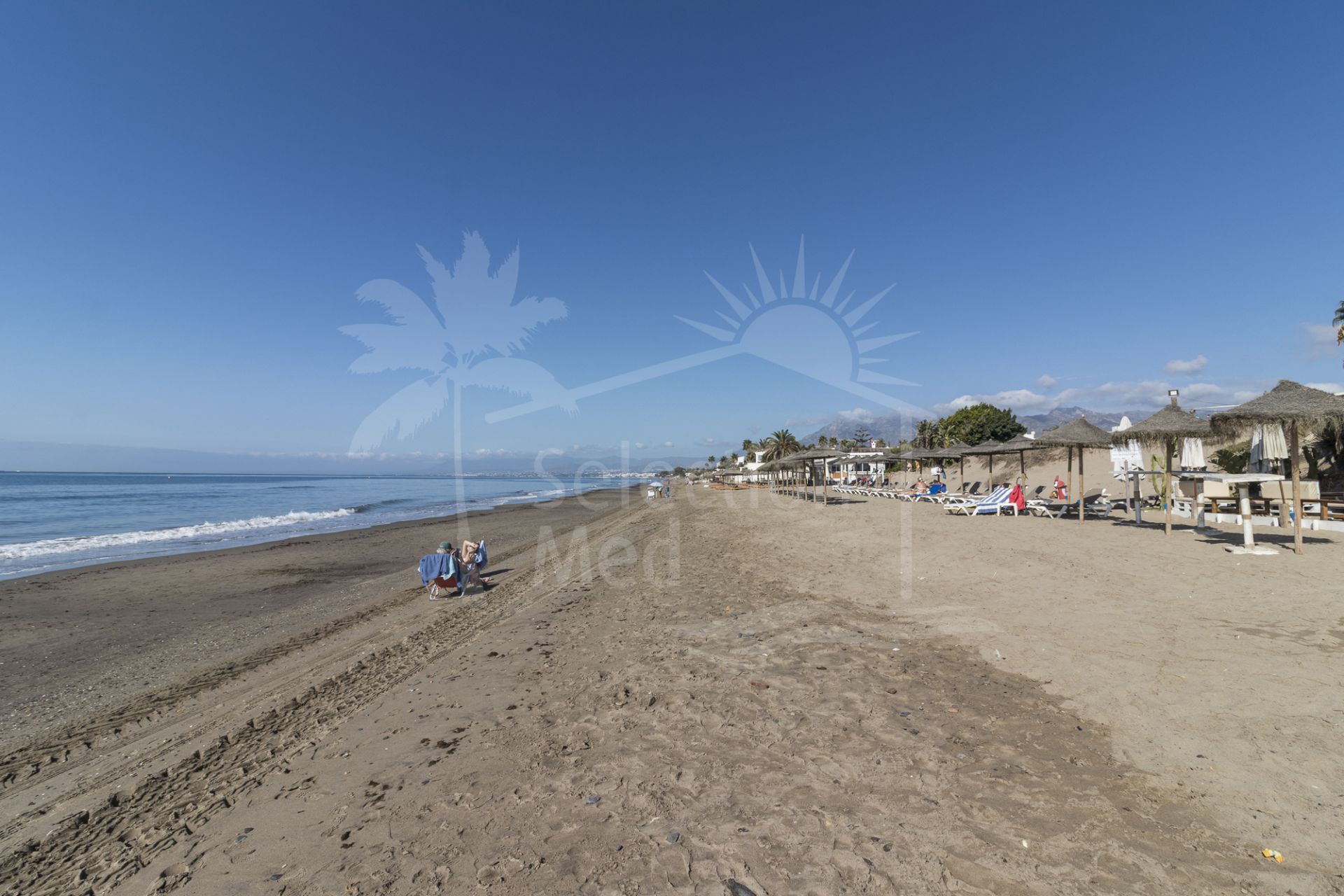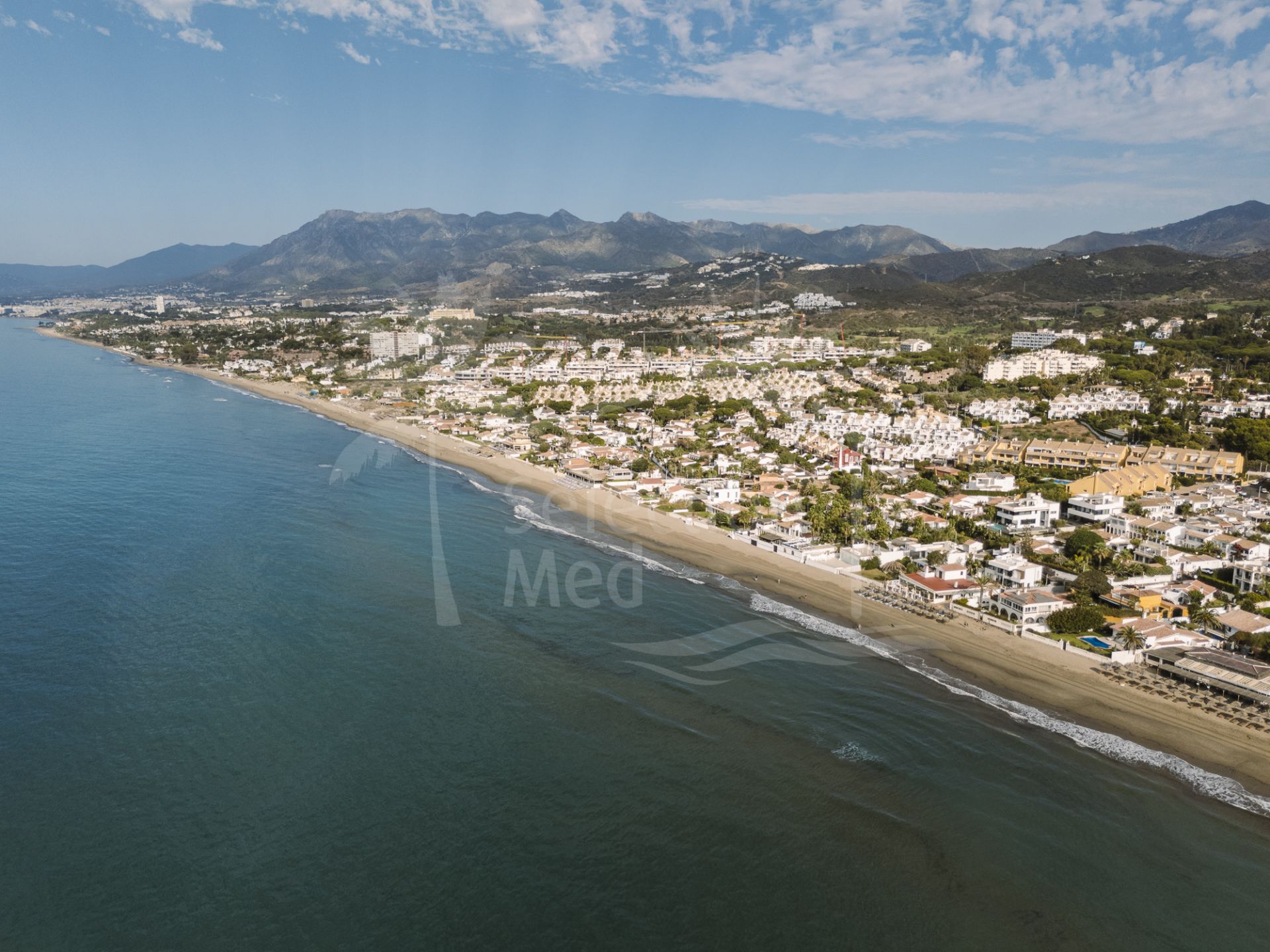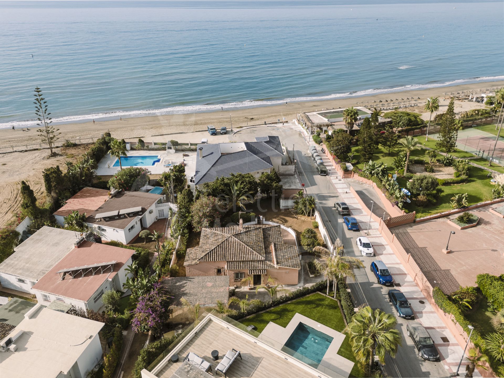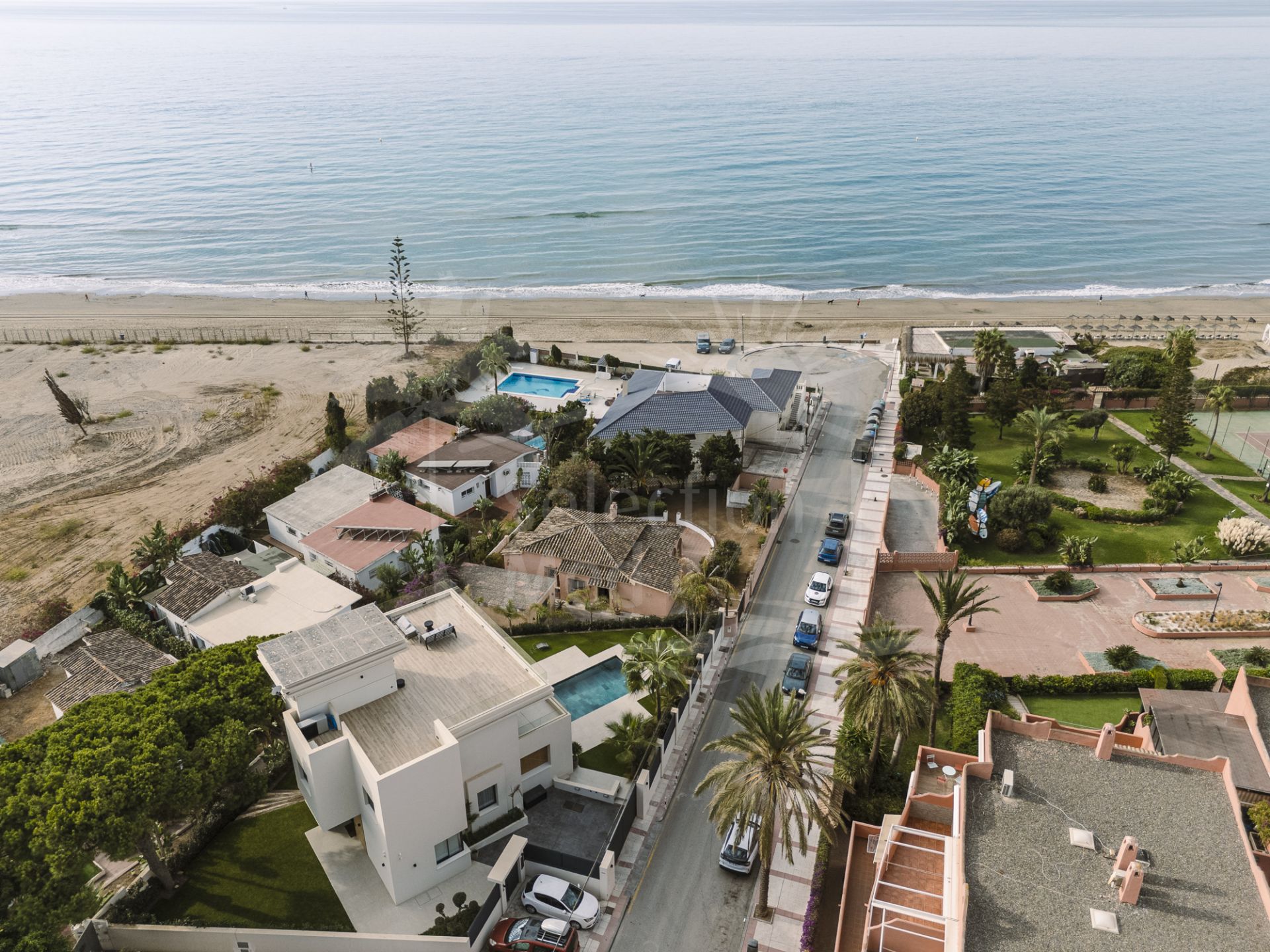 Ubicada en segunda línea de playa, a tan solo 30 metros de la orilla del mar. Esta villa se encuentra a pocos minutos de reconocidos chiringuitos, restaurantes, campos de golf y servicios, con excelente conexión a la A-7 y a solo 10 minutos del centro de Marbella.