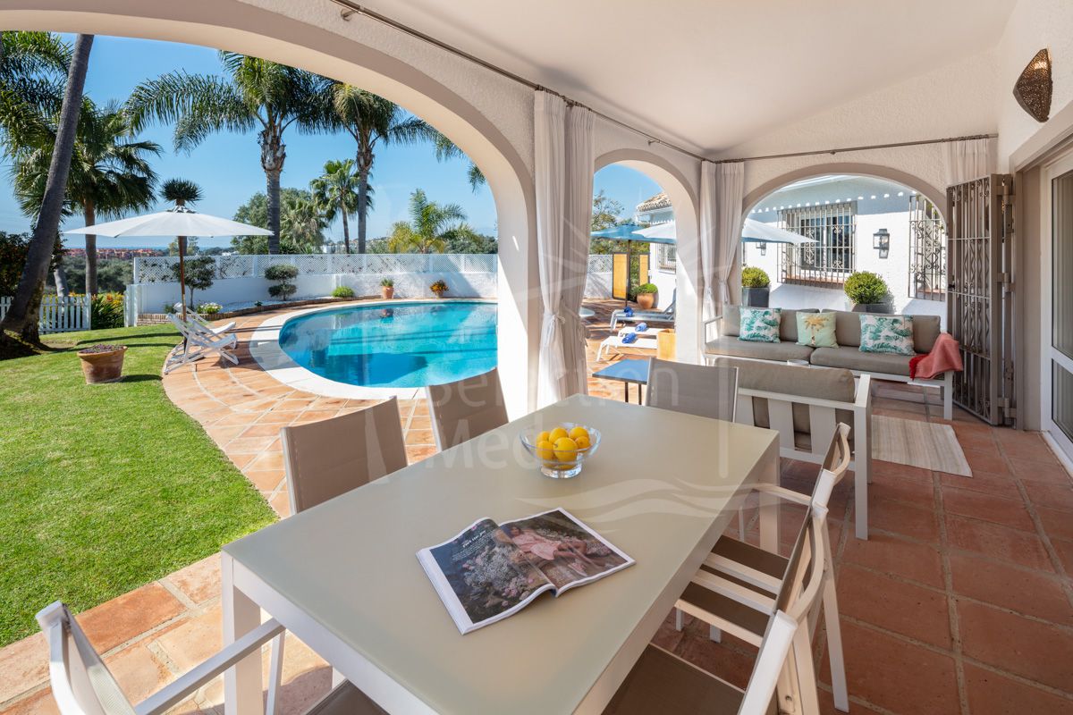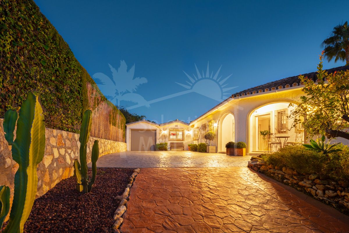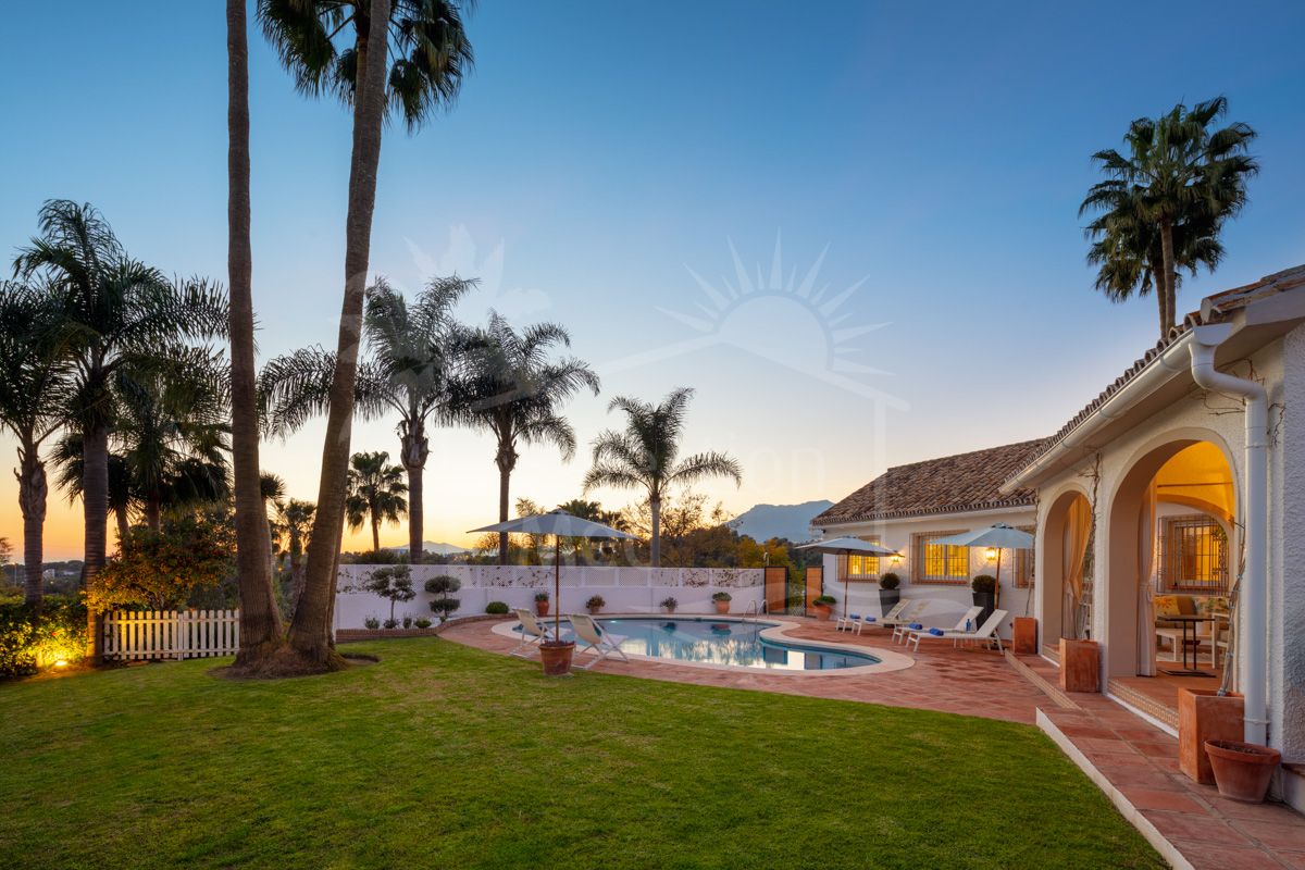 Villa de una sola planta con vistas al mar y montaña en El Rosario, Marbella