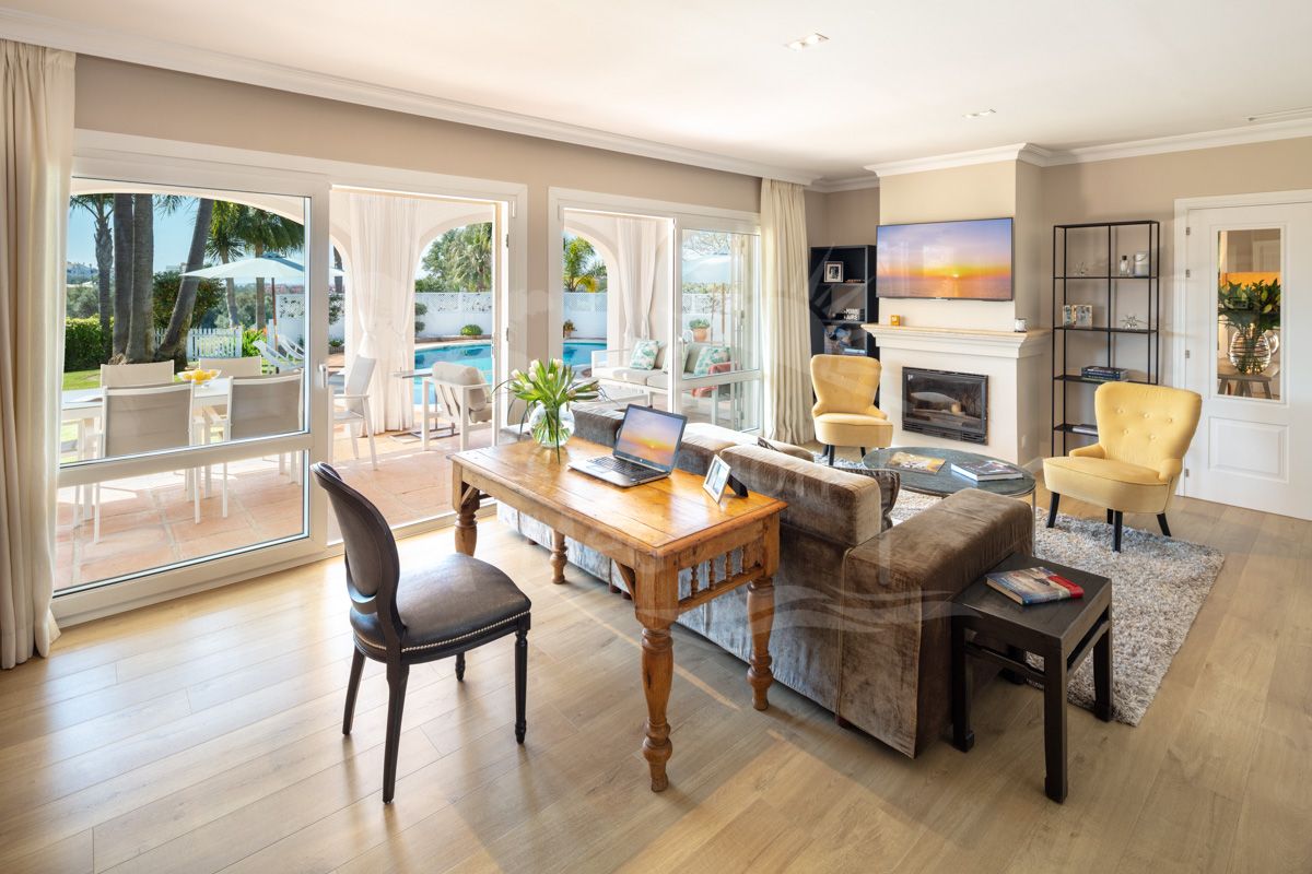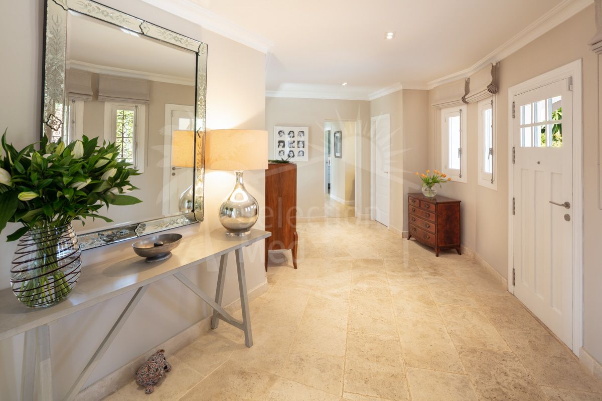 Ubicada en la prestigiosa zona de Marbella Este, en la urbanización El Rosario, esta villa representa el hogar ideal para quienes buscan un entorno tranquilo y exclusivo con vistas inigualables al mar y la montaña. Con su diseño de estilo andaluz y orientación suroeste, esta propiedad combina a la perfección el encanto tradicional con las comodidades modernas, ofreciendo un espacio acogedor y renovado a un nivel excepcional.