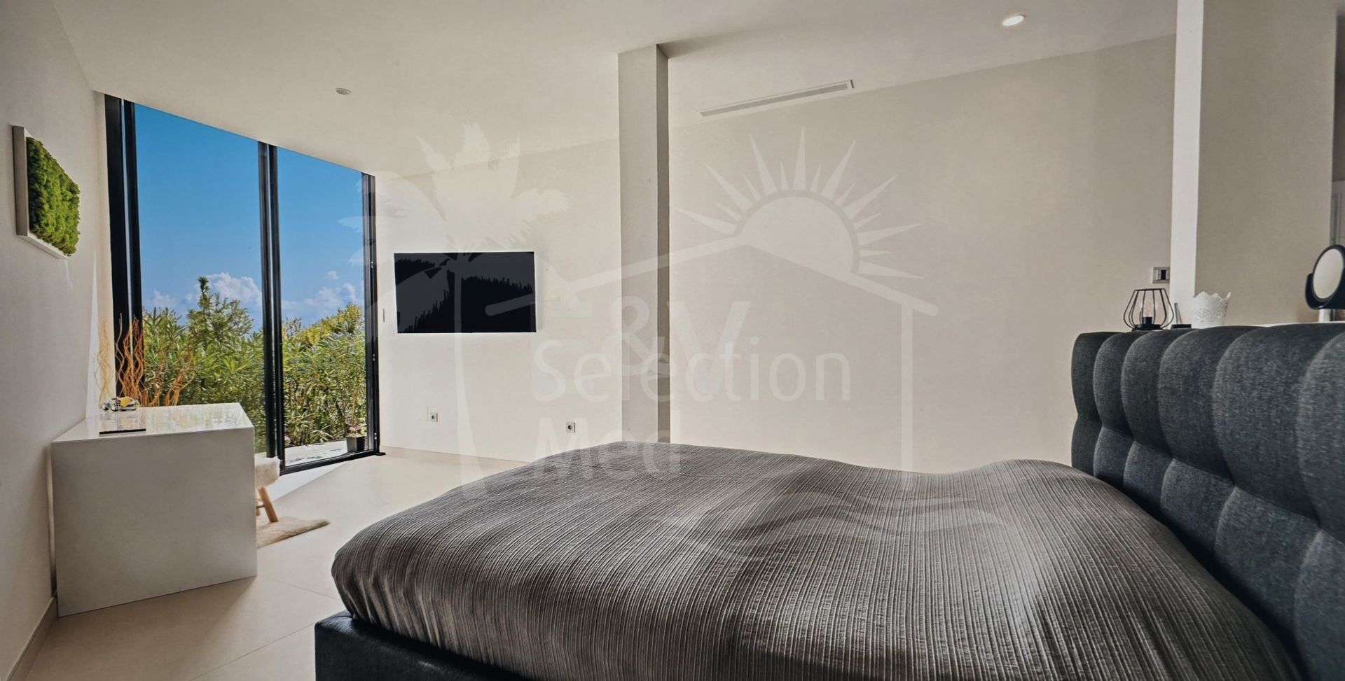 Esta villa está equipada con comodidades de primer nivel, incluyendo calefacción por suelo radiante, un sistema domótico, tecnología aertera, persianas eléctricas y estacionamiento para dos coches.