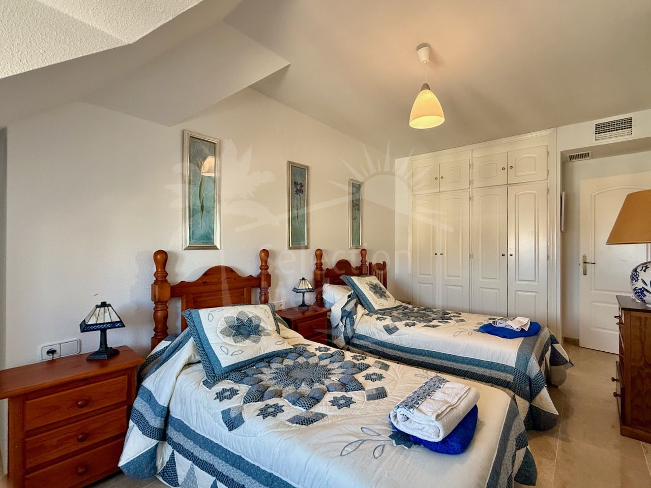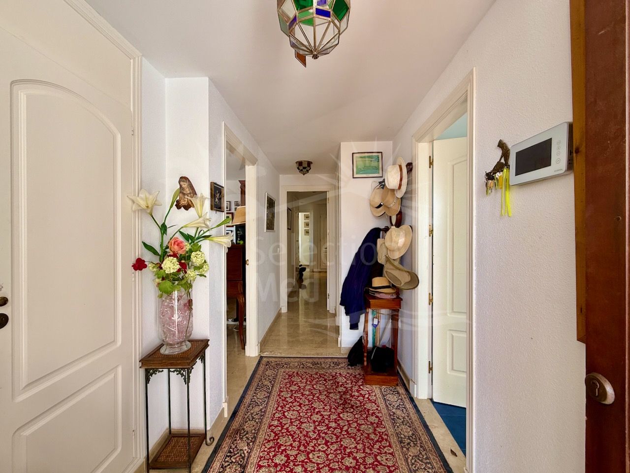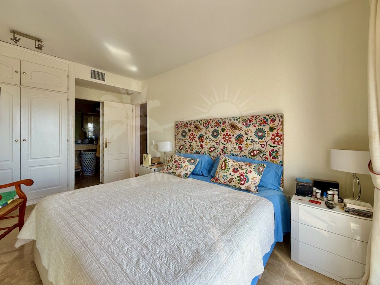 El interior es luminoso y está bien distribuido, con un amplio salón-comedor con acceso directo a la terraza principal, una cocina totalmente equipada y tres cómodos dormitorios y tres baños. Los suelos de mármol, el aire acondicionado y los armarios empotrados aportan confort y calidad a la vivienda.