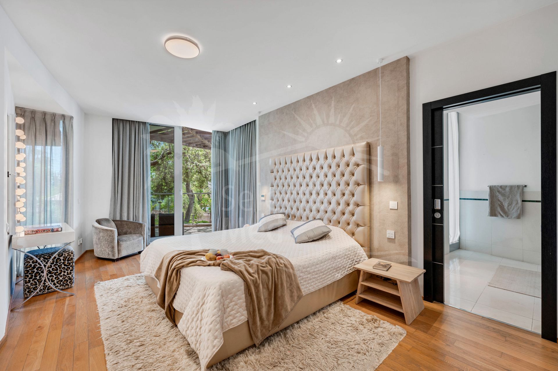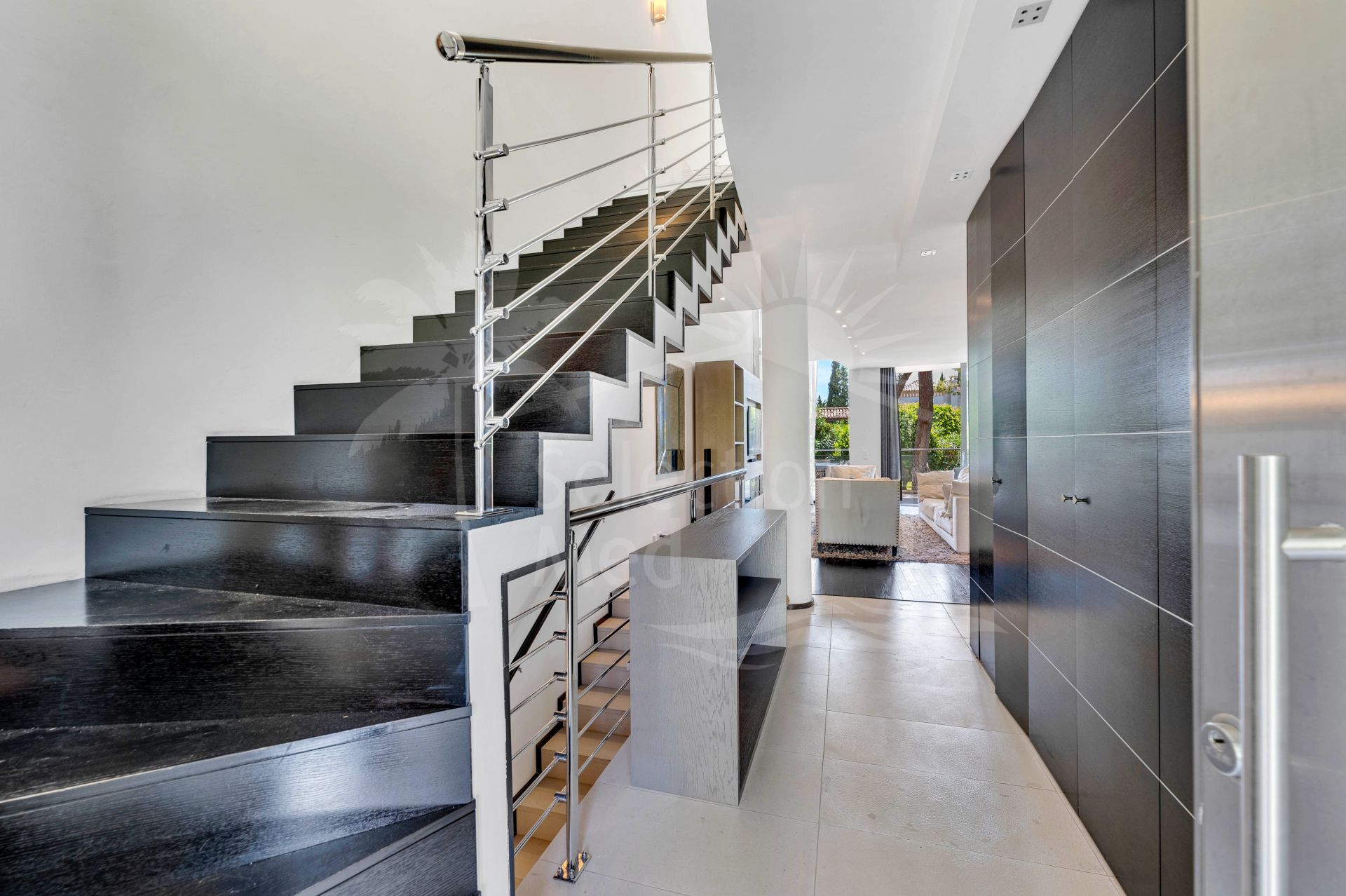 Esta lujosa casa adosada se sitúa en la prestigiosa urbanización Meisho Hills, en la codiciada Milla de Oro de Marbella, Málaga. La propiedad destaca por su excelente ubicación, cercana a todos los servicios, la playa, comercios, colegios y el centro de Marbella. Se trata de una vivienda indicada para quienes buscan confort, seguridad y accesibilidad en uno de los enclaves más exclusivos de la Costa del Sol.
