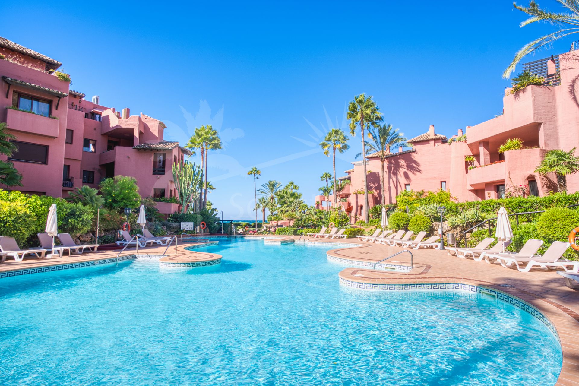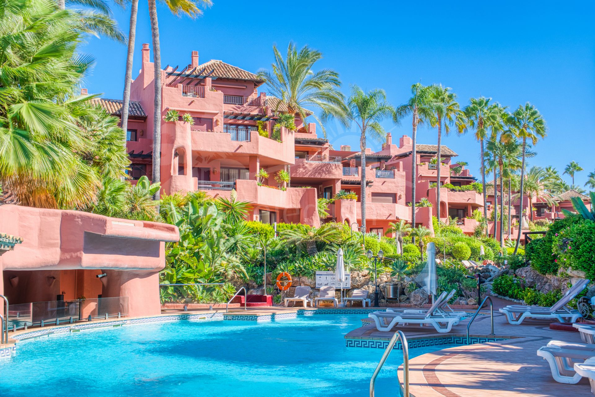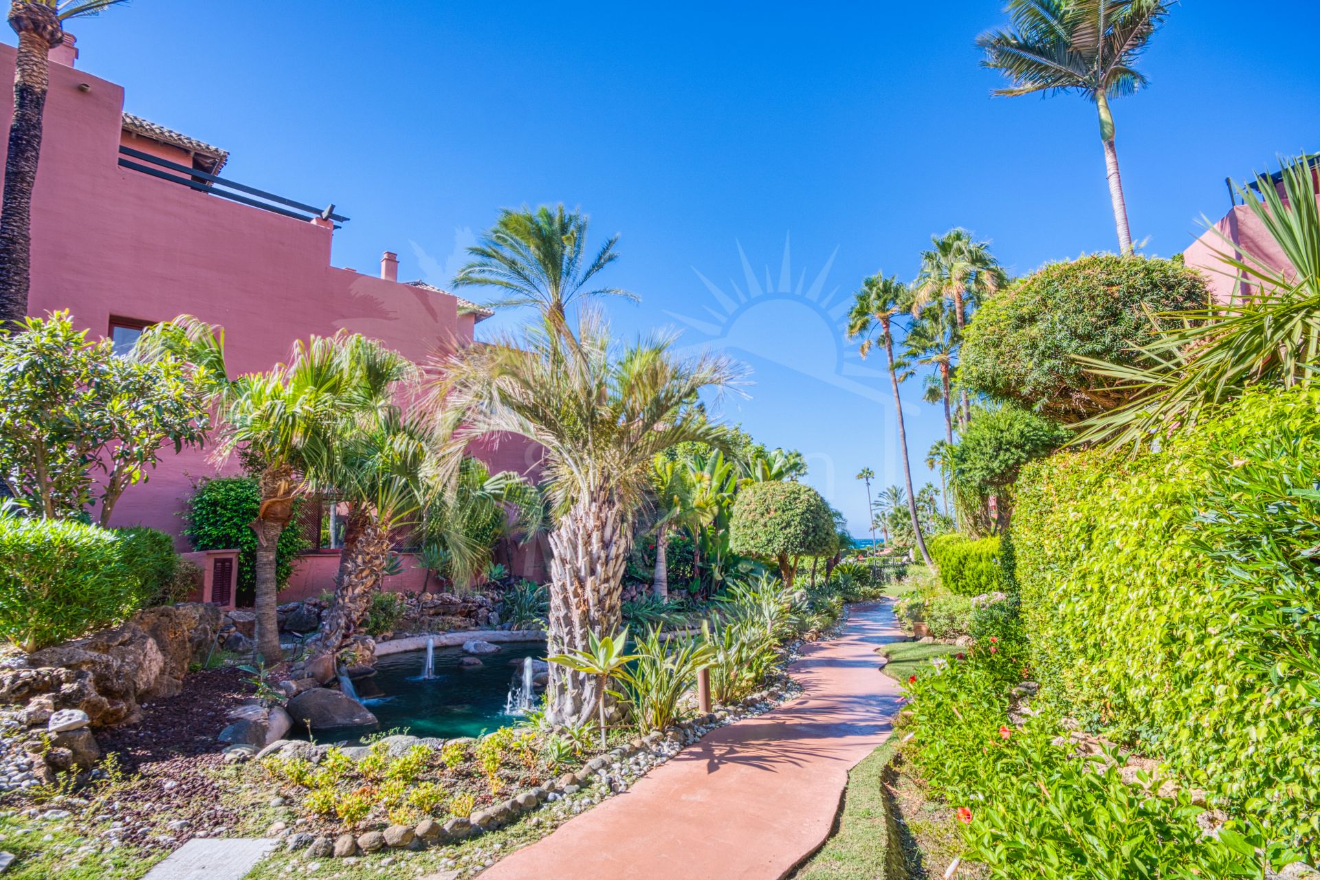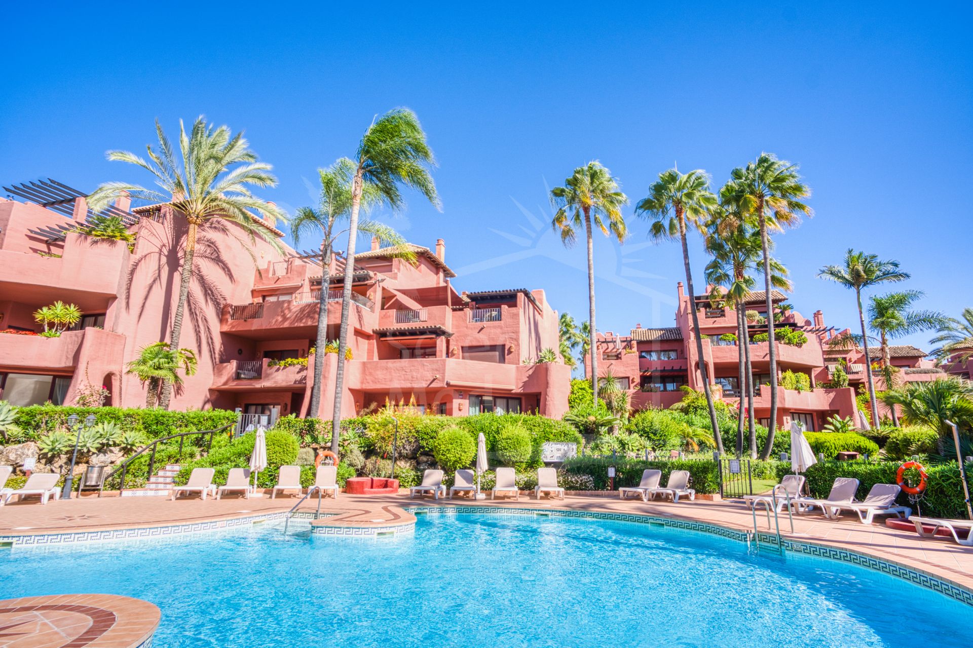 Impresionante ático dúplex de tres dormitorios orientado al sur en la prestigiosa y cerrada comunidad frente a la playa Menara Beach, Estepona. Este complejo con jardines tropicales bien cuidados, piscina comunitaria al aire libre, piscina cubierta climatizada y gimnasio, así como a solo diez minutos en coche de Puerto Banús y a poca distancia de tiendas, restaurantes y todas las comodidades. La propiedad tiene una sala de estar y comedor con puertas de patio que conducen a dos terrazas privadas con hermosas vistas al mar; cocina totalmente equipada con zona de lavandería independiente; suite de invitados con acceso a la terraza; dormitorio de invitados; y un baño de invitados. El nivel superior conduce a la impresionante suite principal con techos abovedados y una terraza privada; en este nivel hay una amplia terraza adicional con zona de barbacoa y vistas impresionantes de la comunidad y el mar. Otras características incluyen armarios empotrados en todas partes, suelos de mármol, aire acondicionado frío y caliente, calefacción por suelo radiante en los baños, aparcamiento privado y trastero.