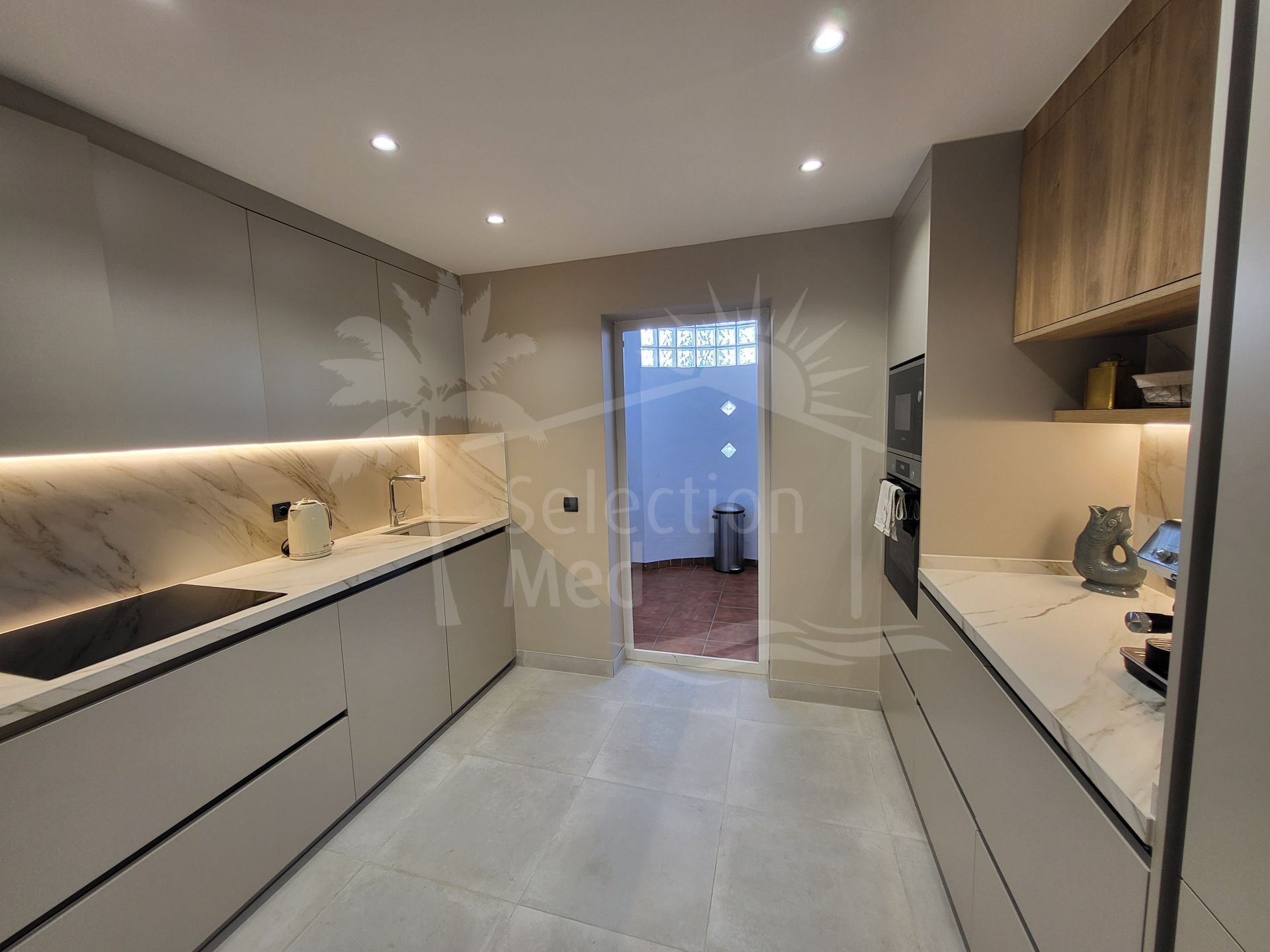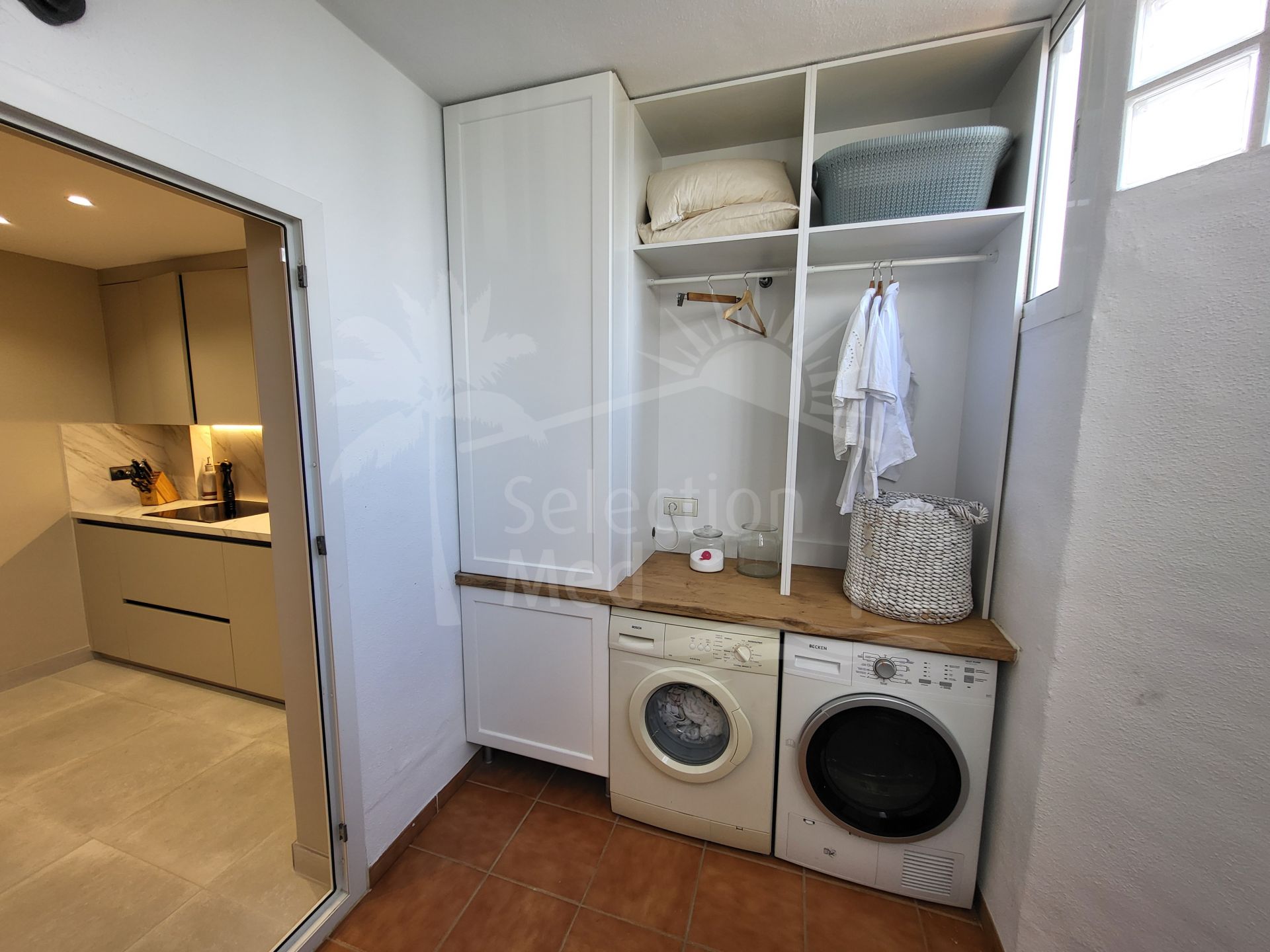 El amplio salón-comedor se abre a una soleada terraza y espacioso jardín privado con vistas abiertas, ideal para relajarse, recibir invitados o disfrutar del estilo de vida de la Costa del Sol. La cocina independiente totalmente equipada se complementa con un amplio lavadero, perfecta para el día a día. Los tres dormitorios son espaciosos, y la suite principal dispone de baño en suite y acceso directo al jardín a través de elegantes puertas de terraza. La terraza cubierta y el jardín privado crean el escenario perfecto para cenas al aire libre y vida exterior.