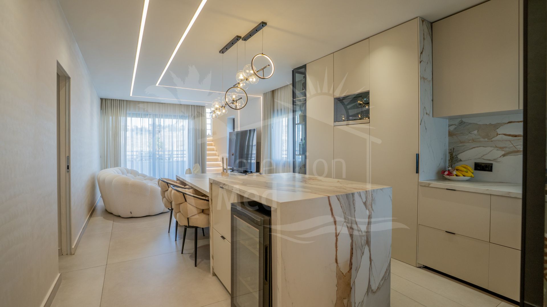 Este excepcional apartamento de lujo ofrece una atractiva combinación de sofisticación y confort, ideal para quienes buscan un estilo de vida elegante en la Costa del Sol. Con generosas proporciones y espacios bellamente diseñados, esta vivienda es perfecta tanto para disfrutar de momentos tranquilos como para celebrar animadas reuniones. La amplia terraza privada y las impresionantes vistas a la montaña crean una atmósfera serena, mientras que la proximidad a servicios, campos de golf y la playa garantiza una vida vibrante y cómoda.
