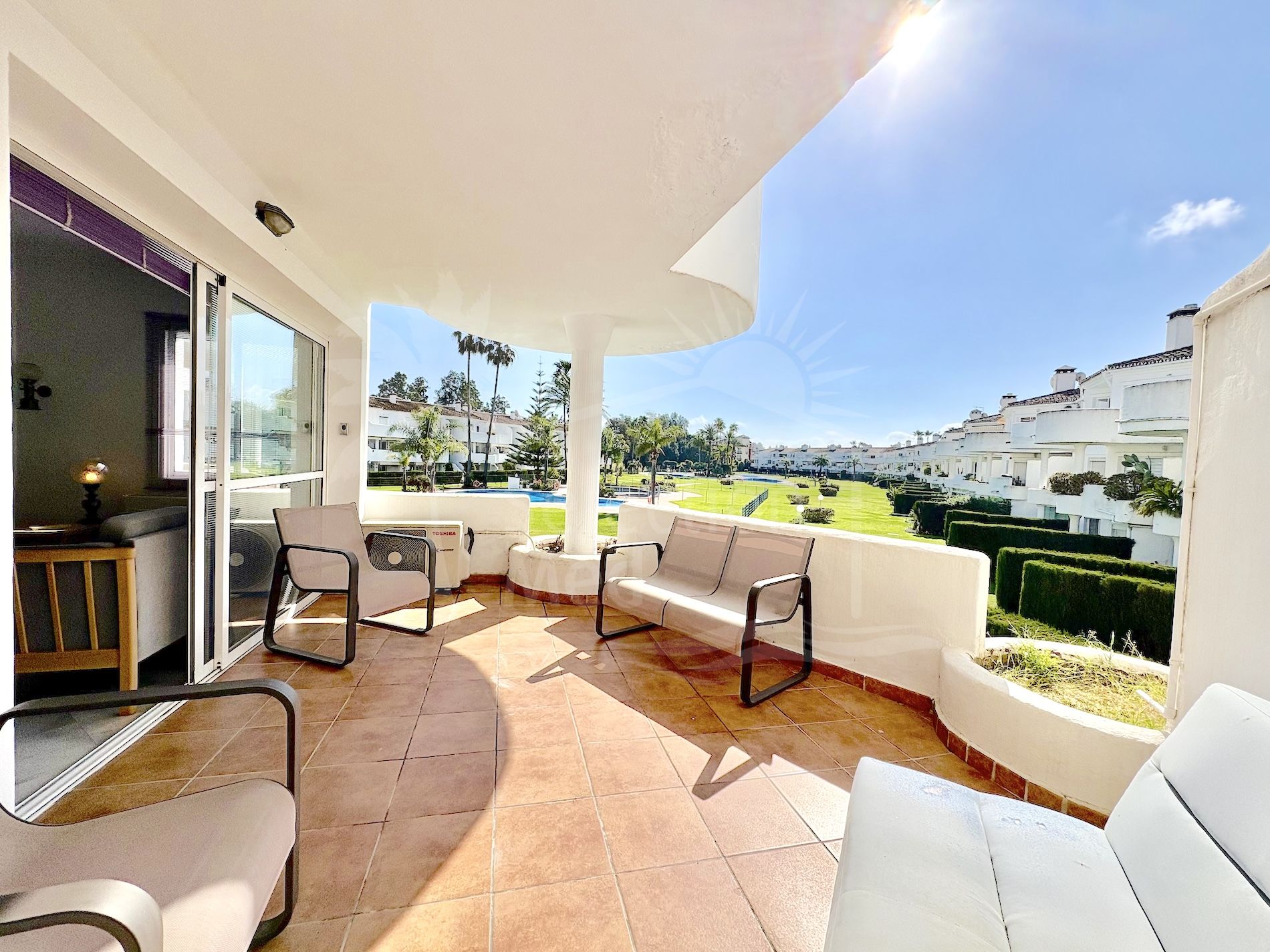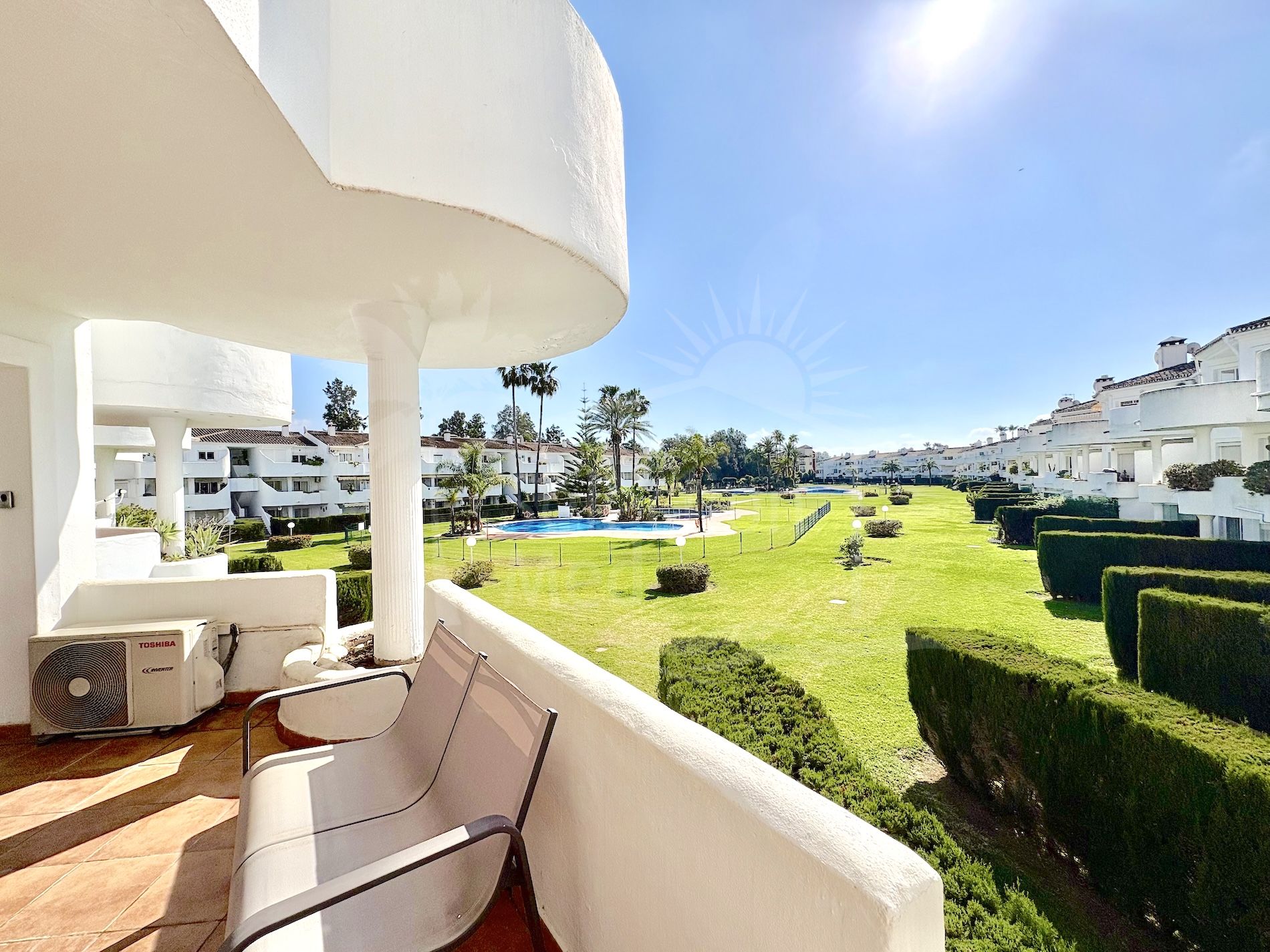 Espacioso apartamento de 2 dormitorios con dobles terrazas en Mijas Golf – Primera ubicación, Vistas a la piscina “ Potencial de inversión