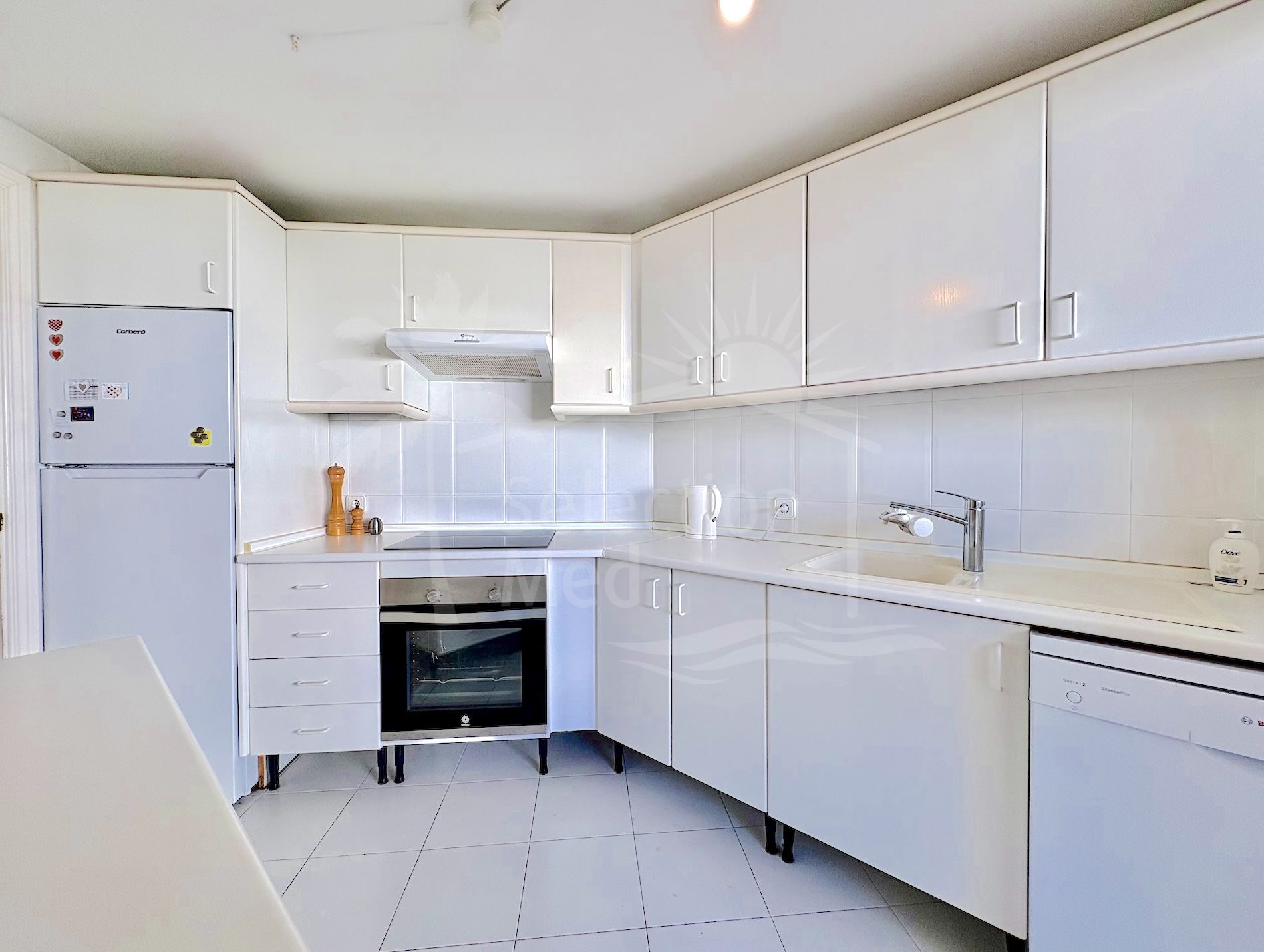 La cocina independiente totalmente equipada también se abre a la terraza orientada al oeste, permitiendo luz natural durante todo el día.