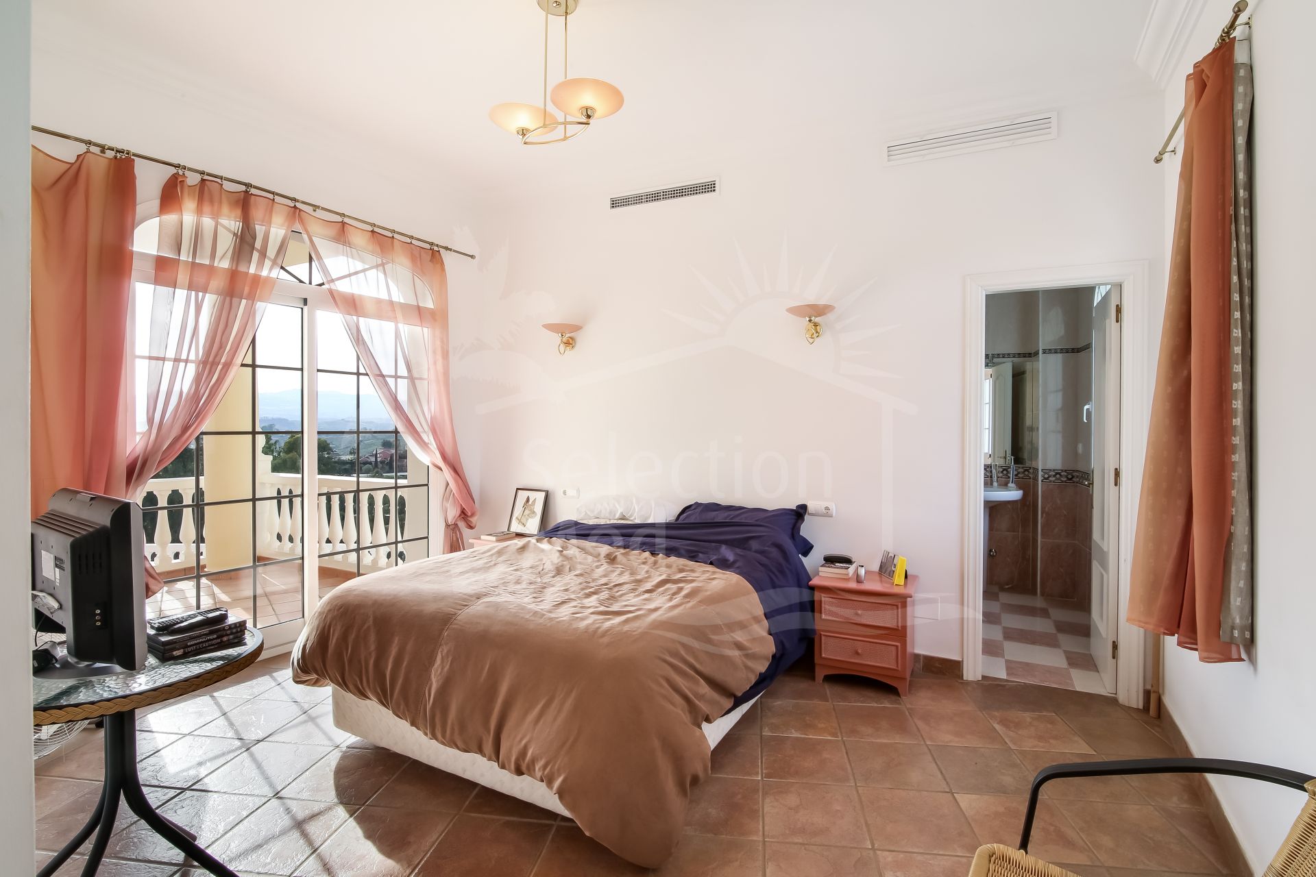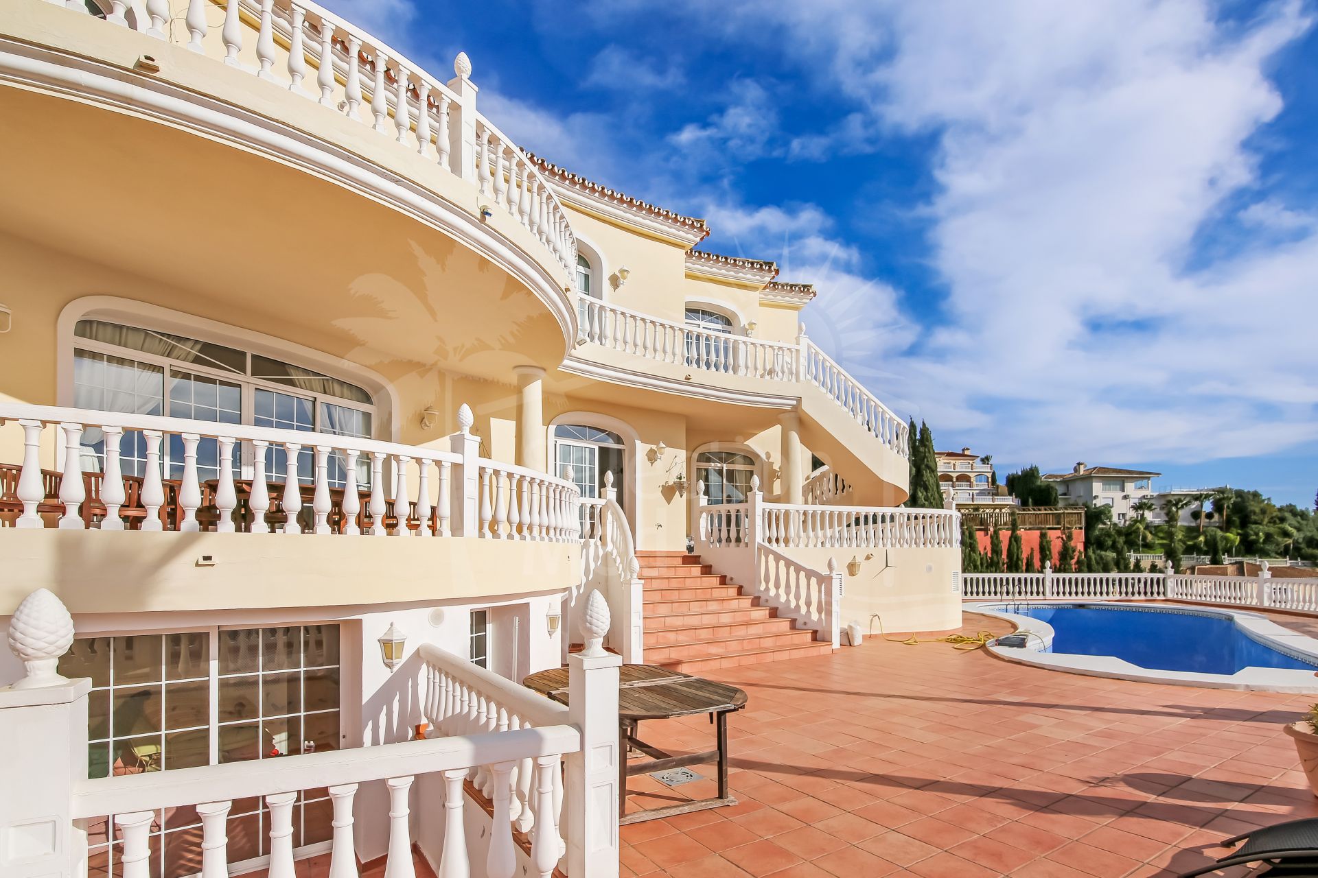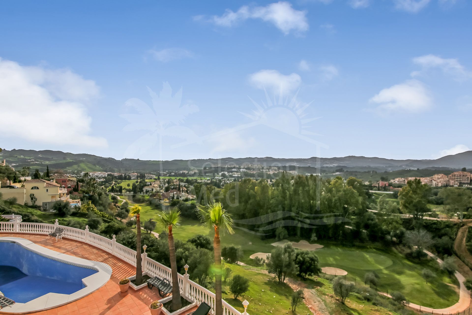 La villa está ubicada al final de la calle, sin vecinos a un lado, siendo una propiedad muy privada en todas partes. La villa está construida en varios niveles, con la entrada en el piso principal donde encontrará una sala de estar abierta y espaciosa, un amplio comedor y cocina y un segundo comedor. También encontrará en este nivel un dormitorio con baño en suite. El nivel superior tiene 4 dormitorios todos con baño en suite, el dormitorio principal tiene un vestidor, así como un baño y ducha. La planta superior tiene una amplia terraza que mira hacia las montañas de Mijas y el campo de golf.