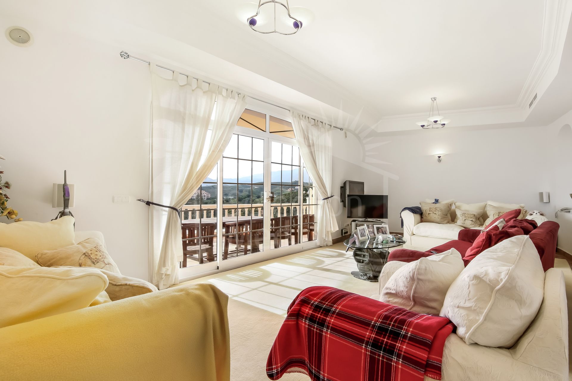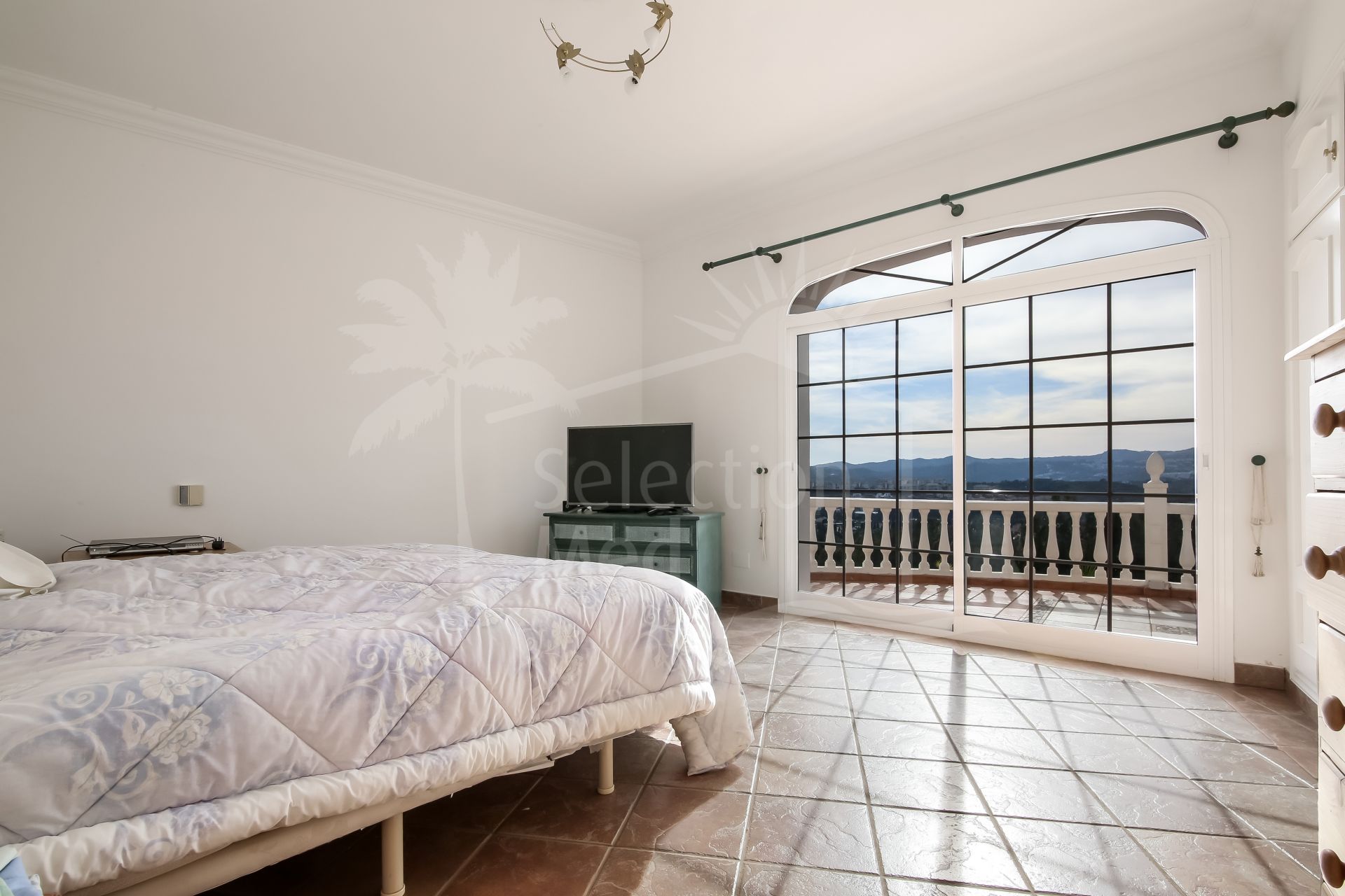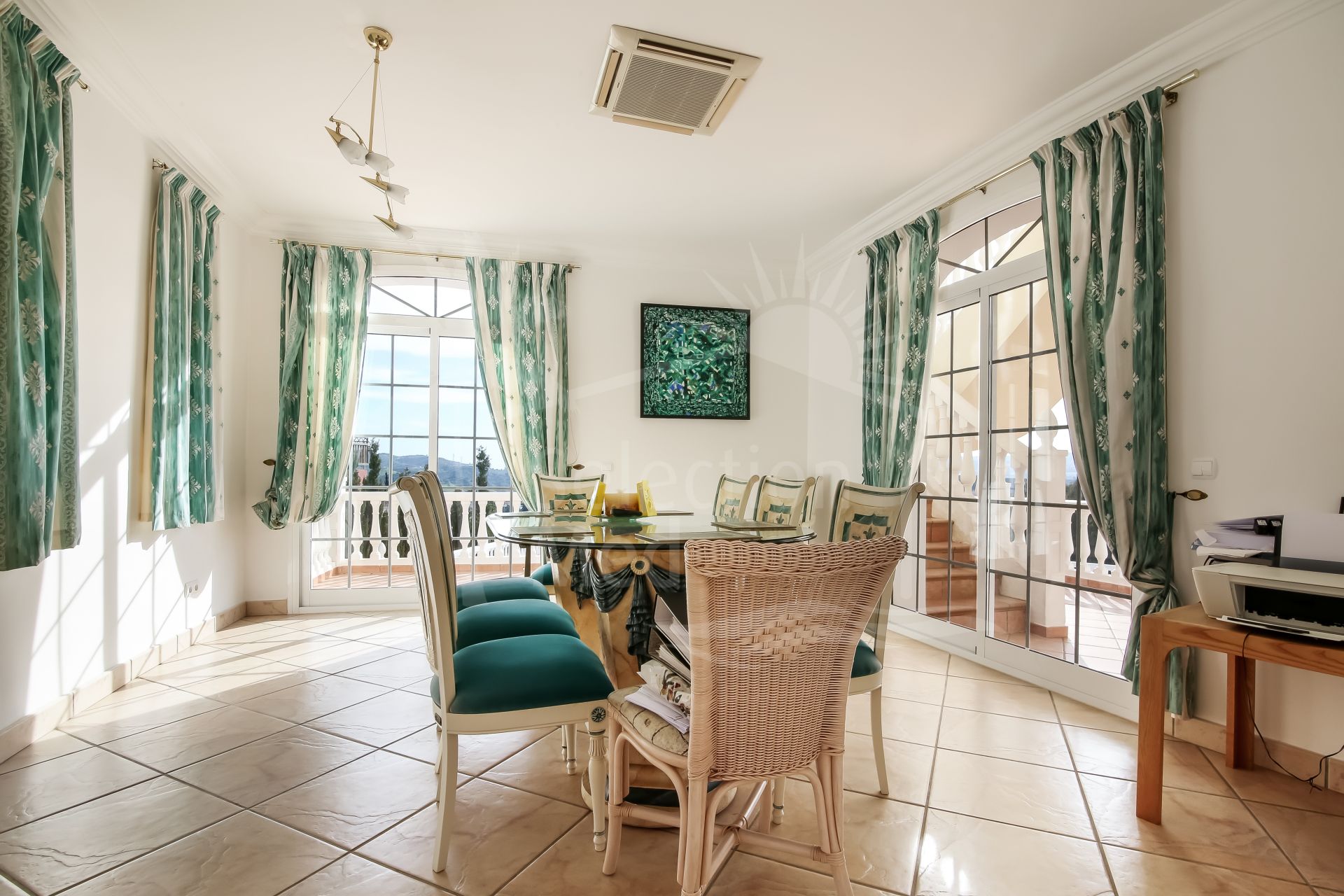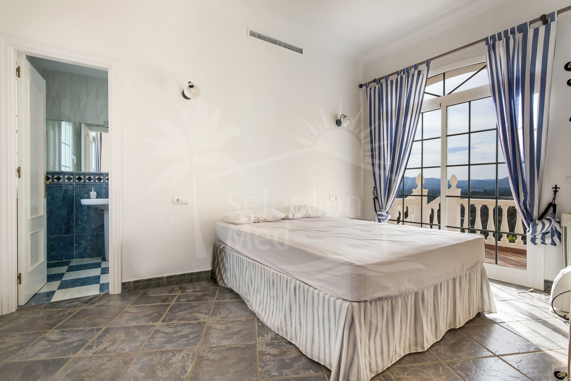 La villa está ubicada al final de la calle, sin vecinos a un lado, siendo una propiedad muy privada en todas partes. La villa está construida en varios niveles, con la entrada en el piso principal donde encontrará una sala de estar abierta y espaciosa, un amplio comedor y cocina y un segundo comedor. También encontrará en este nivel un dormitorio con baño en suite. El nivel superior tiene 4 dormitorios todos con baño en suite, el dormitorio principal tiene un vestidor, así como un baño y ducha. La planta superior tiene una amplia terraza que mira hacia las montañas de Mijas y el campo de golf.