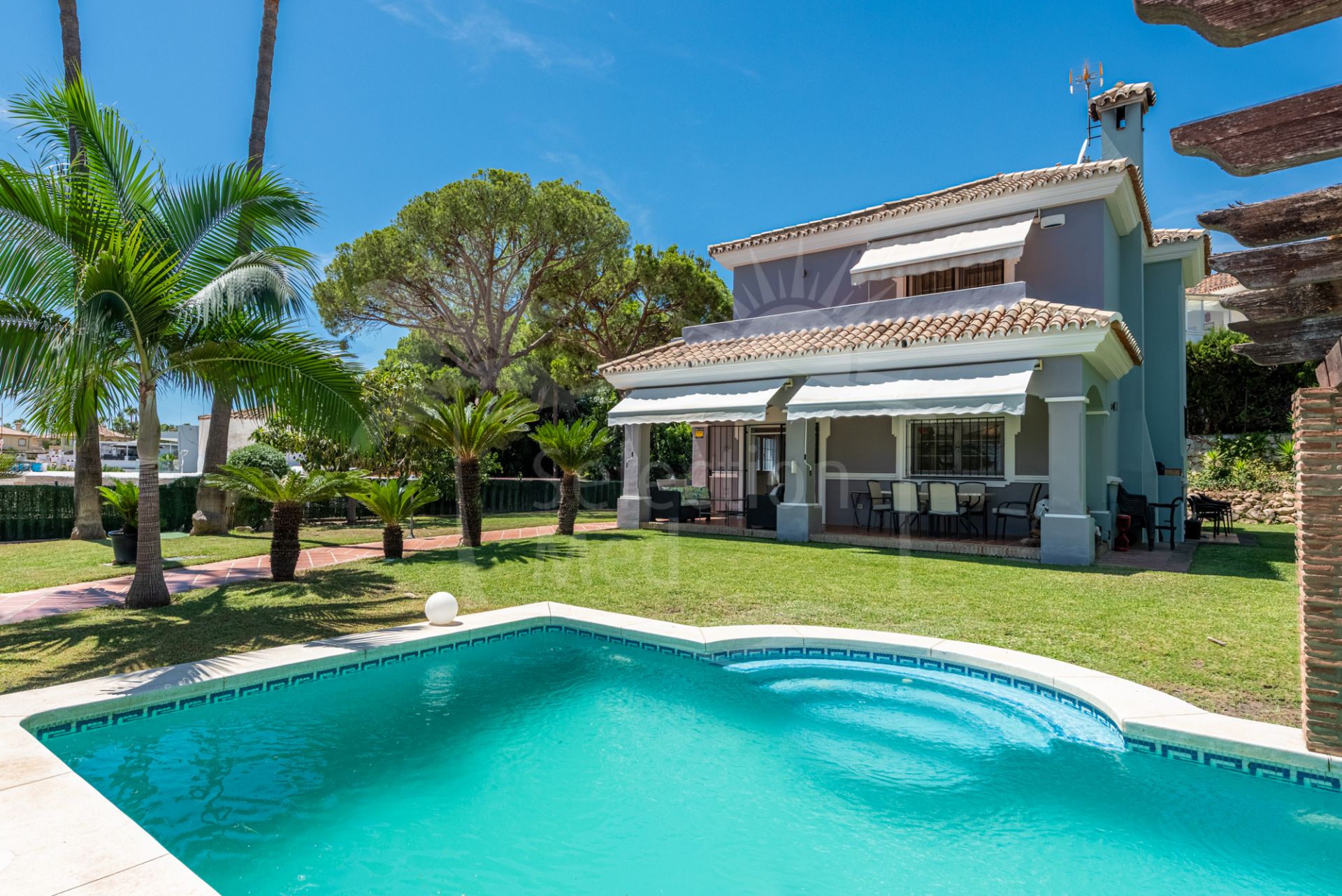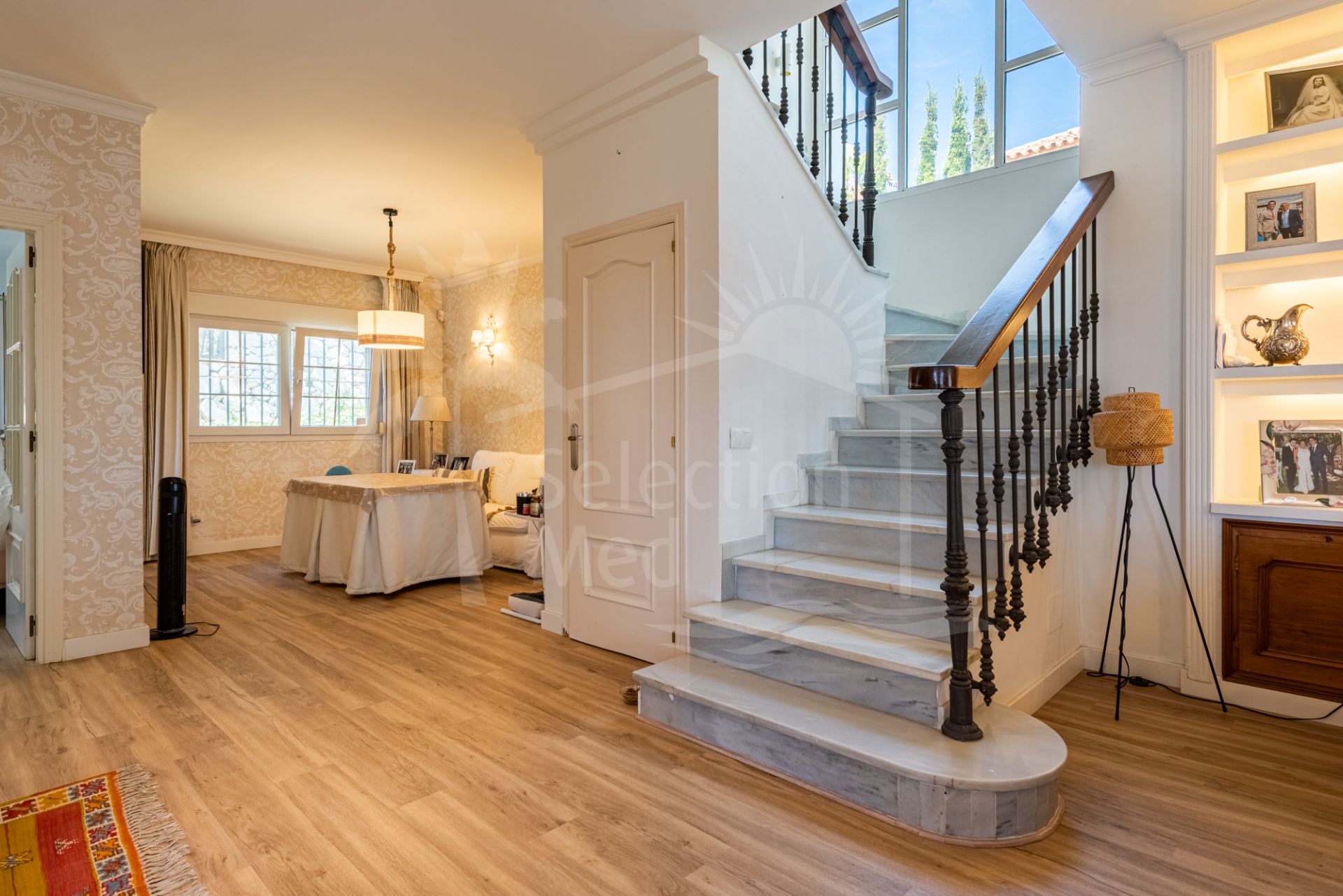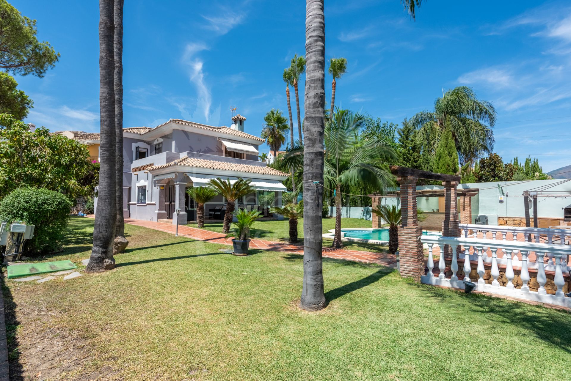 Bonita villa familiar situada en Monte Biarritz, entre Marbella y Estepona, a poca distancia a pie de tiendas, restaurantes y la playa. Con acceso rápido y cómodo a la autopista A-7, que conecta con Marbella, Estepona y Benahavís en solo 15 minutos.