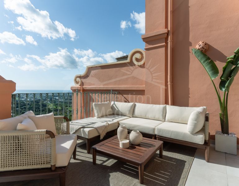 Nos complace ofrecer a la venta uno de los mejores apartamentos en la exclusiva urbanización Torre Halcones. Con un amplio salón-comedor con chimenea, esta zona tiene acceso a una impresionante terraza con vistas panorámicas al mar y a la montaña,...