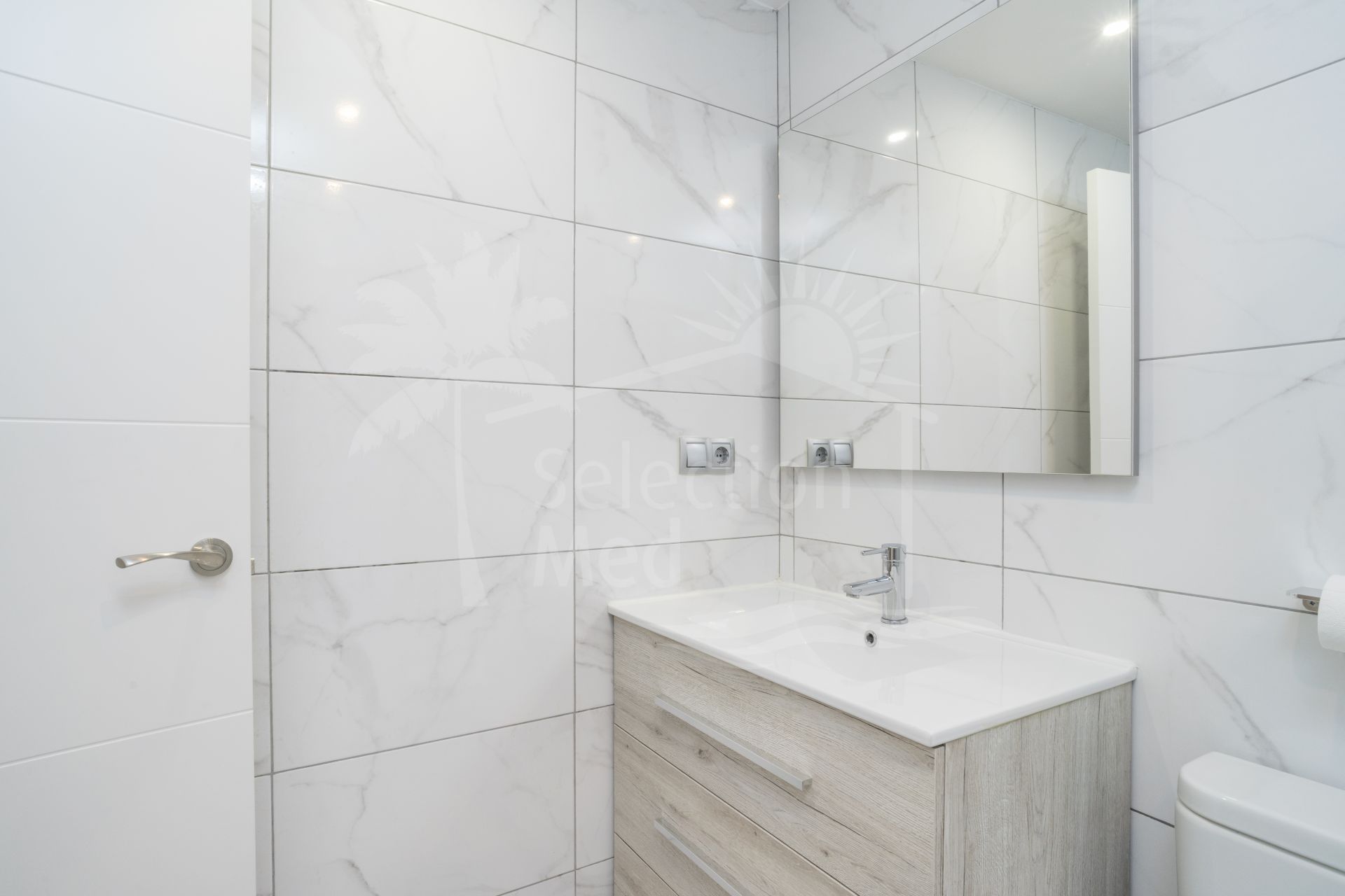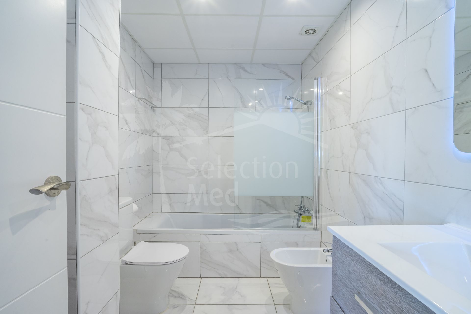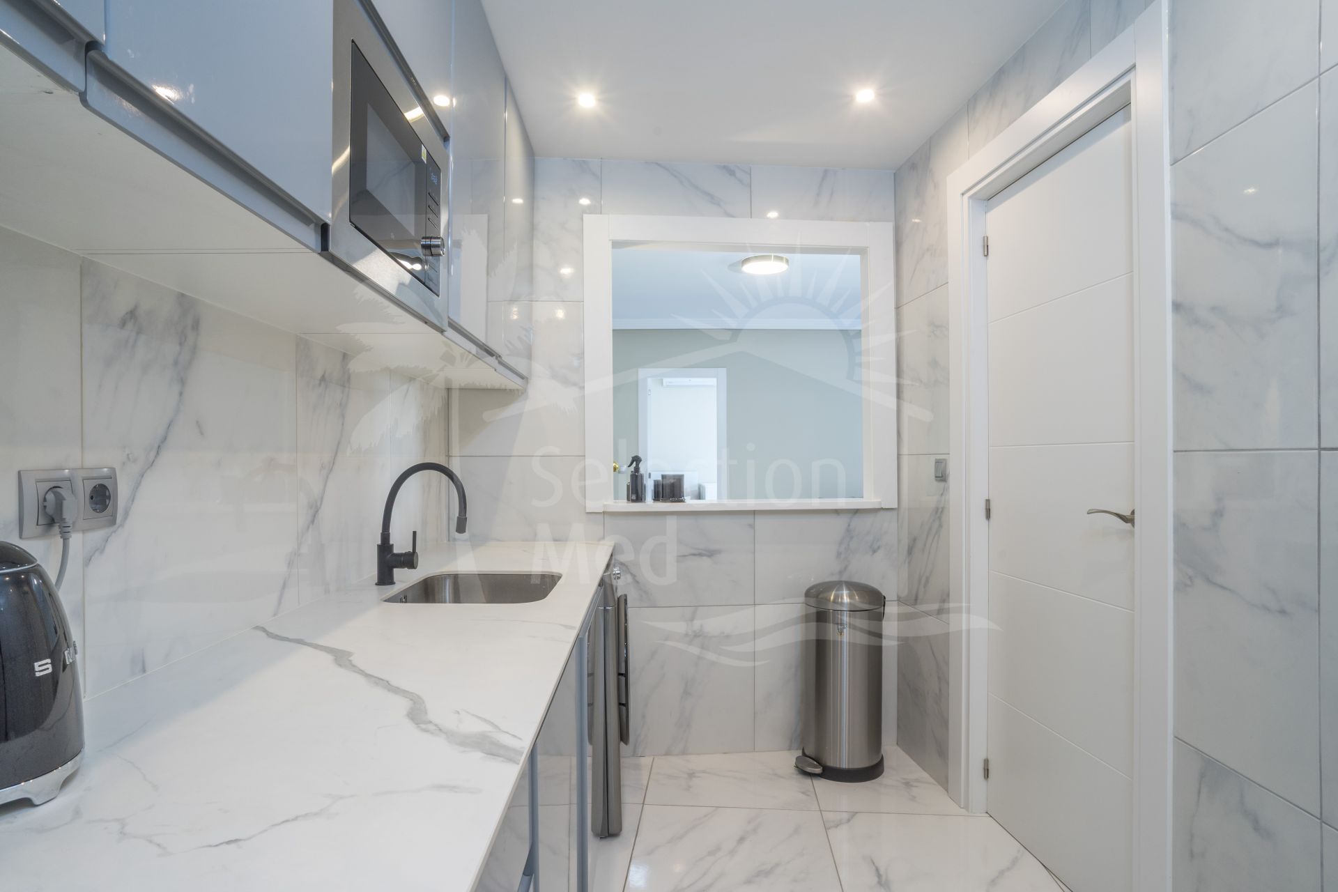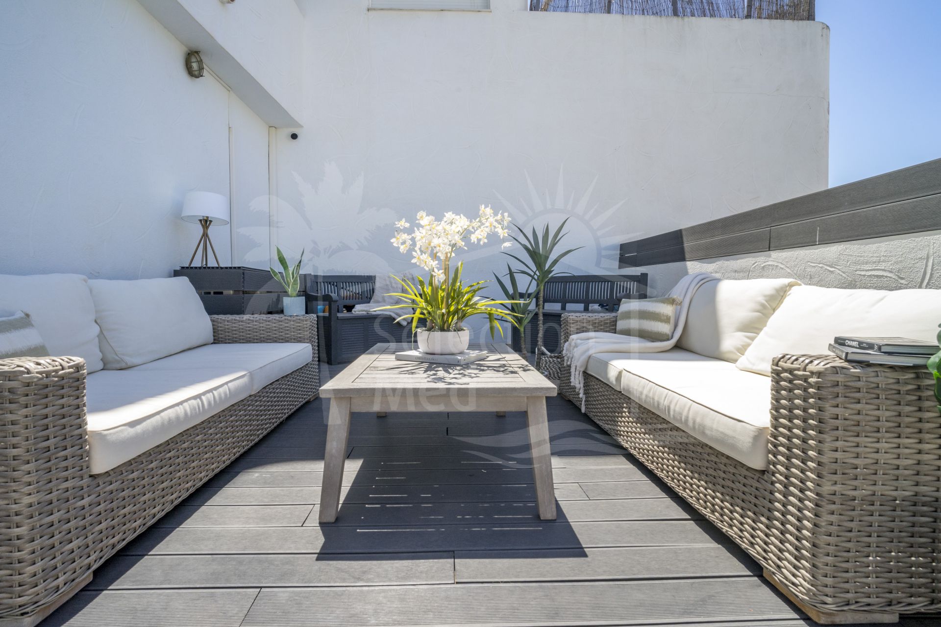 El apartamento ha sido totalmente reformado con los más altos estándares y se vende completamente amueblado, listo para entrar a vivir o alquilar de inmediato. Cuenta con la terraza privada más grande del complejo, ideal para cenas al aire libre, reuniones sociales o simplemente relajarse bajo el sol.