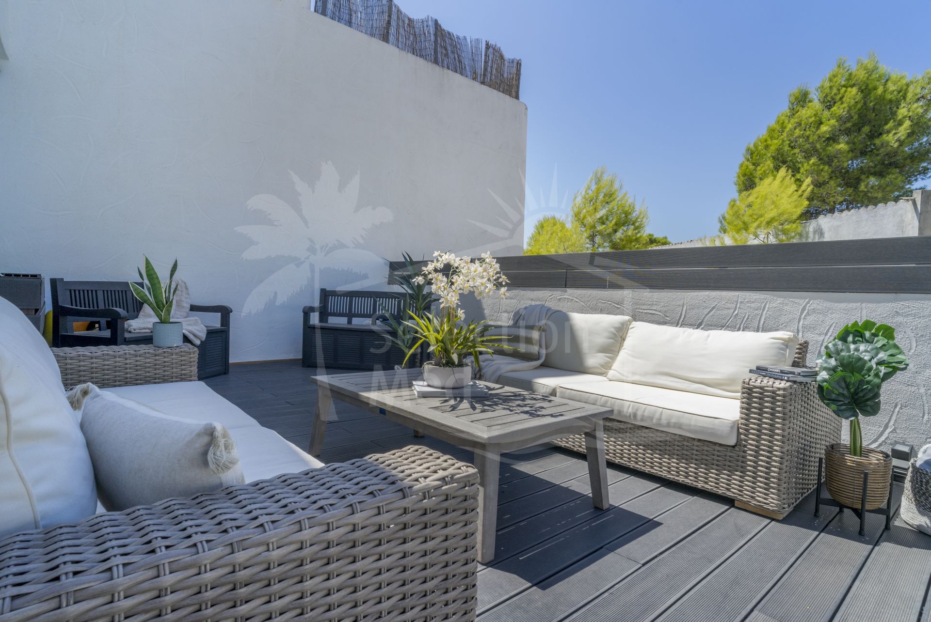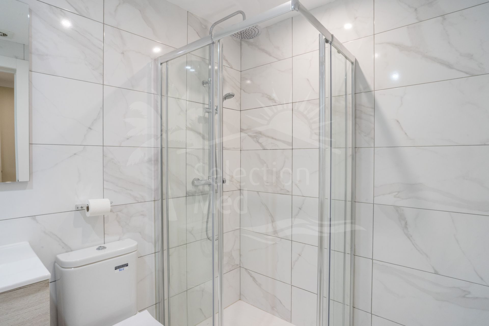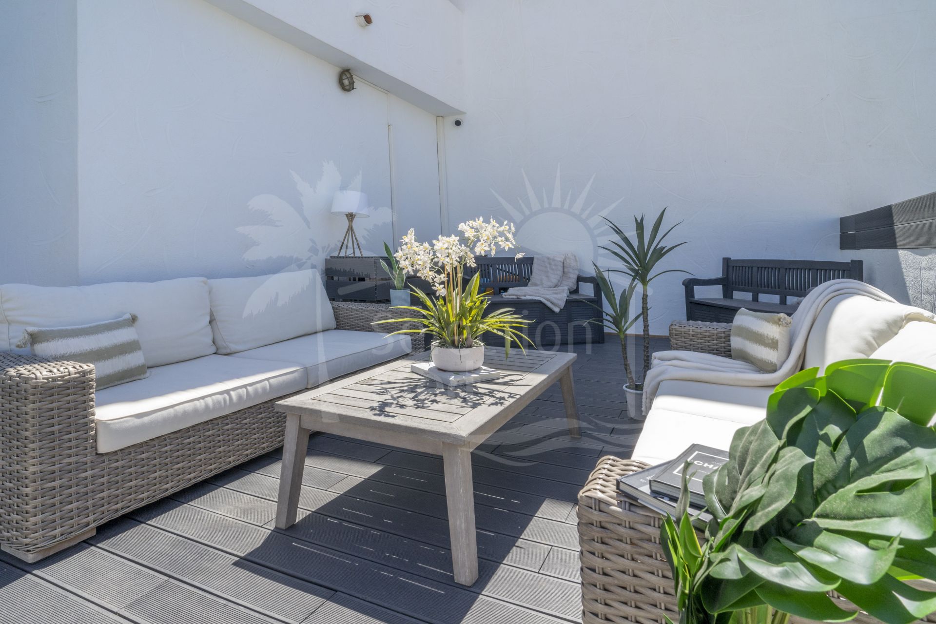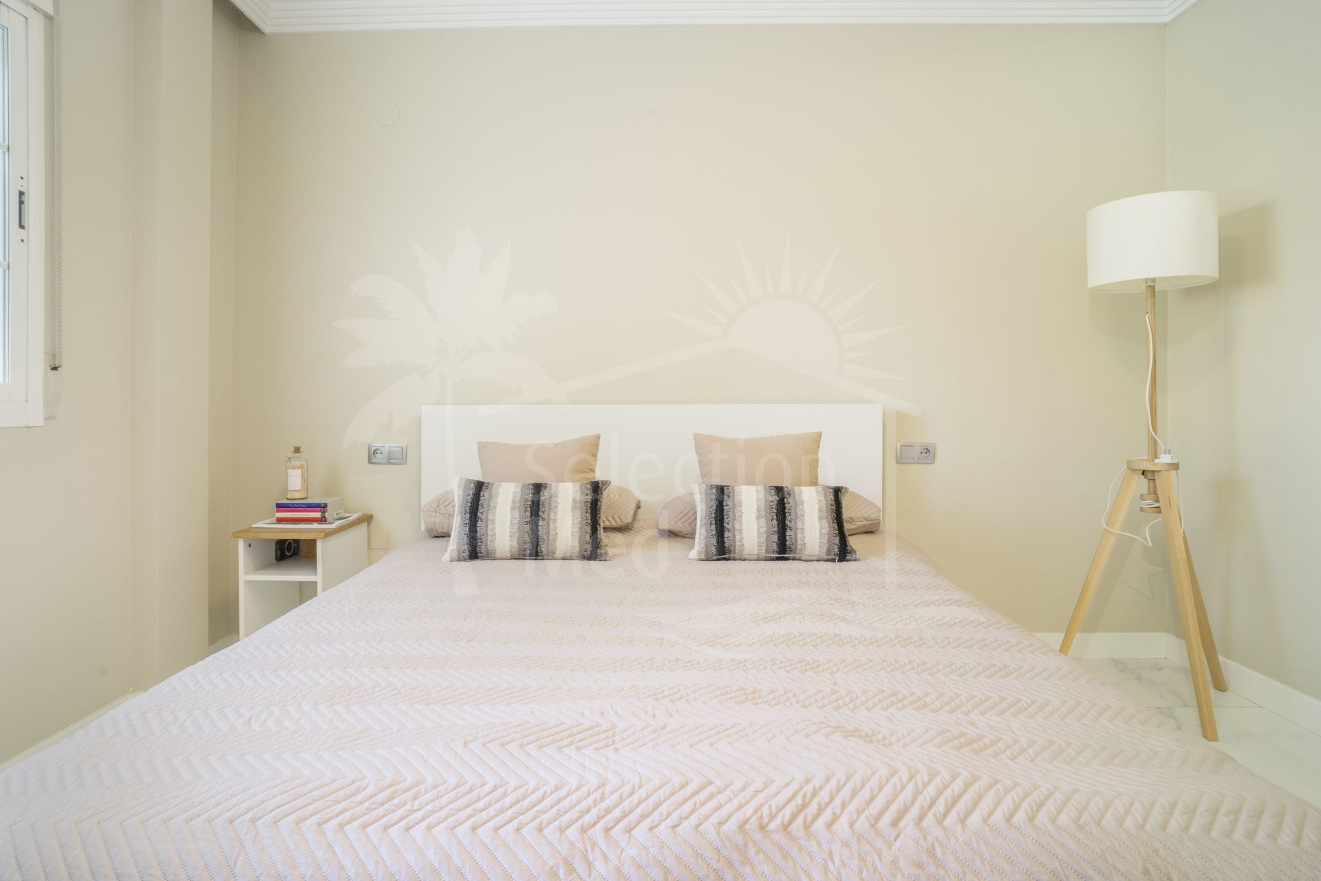 El apartamento ha sido totalmente reformado con los más altos estándares y se vende completamente amueblado, listo para entrar a vivir o alquilar de inmediato. Cuenta con la terraza privada más grande del complejo, ideal para cenas al aire libre, reuniones sociales o simplemente relajarse bajo el sol.