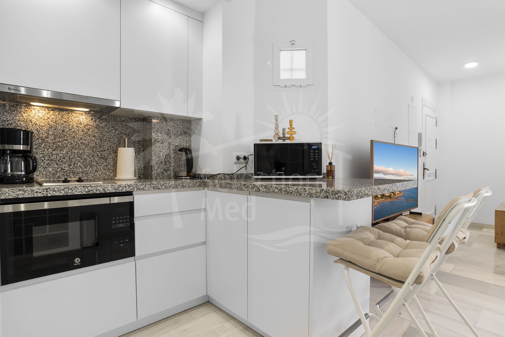 Desde su puerta, se puede pasear por las playas de oro, disfrutar de paseos a lo largo de la orilla, o sumergirse en la animada escena de Puerto Banús con sus restaurantes de clase mundial, bares animados y boutiques de lujo, todo a poca distancia. Con tiendas de comestibles, cafeterías encantadoras y comodidades diarias cerca, se garantiza la comodidad.