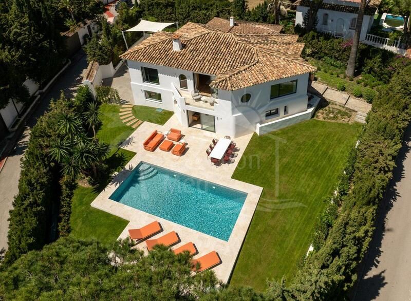 Villa es una impresionante villa mediterránea ubicada en el corazón de Nueva Andalucía. Diseñada para combinar la elegancia contemporánea con la belleza natural, la propiedad está rodeada por un jardín meticulosamente cuidado que la rodea, ofreciendo una sensación de serenidad y privacidad. Altos árboles y exuberante vegetación realzan la privacidad, mientras que la piscina privada al aire libre ofrece un remanso de paz. Con amplio espacio para el entretenimiento, Villa es perfecta para quienes aprecian tanto el lujo refinado como la conexión con la naturaleza.