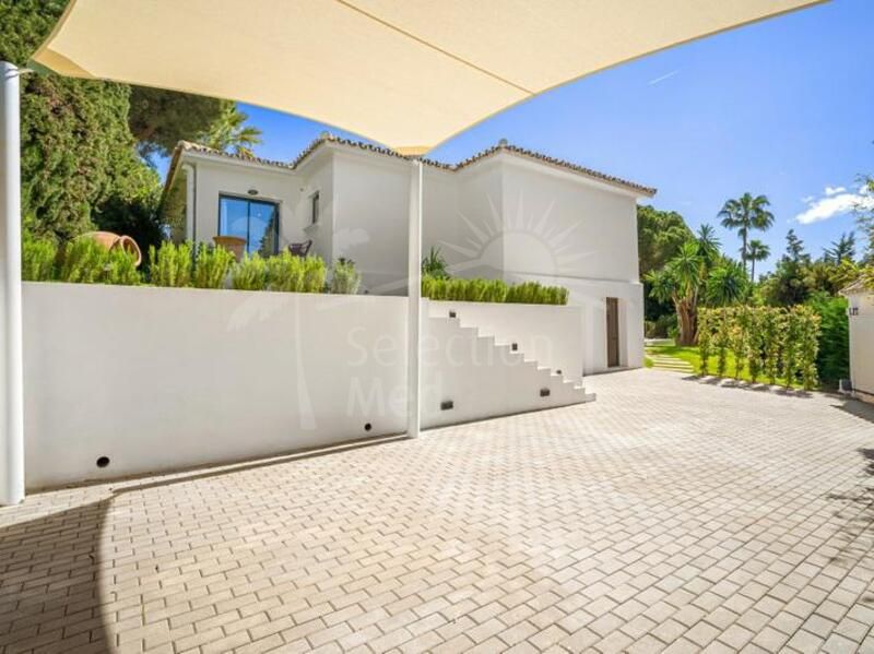 La suite principal es un verdadero punto culminante, con amplios ventanales que inundan la habitación de luz natural y enmarcan pintorescas vistas al jardín. El baño principal es igualmente lujoso, diseñado como un santuario privado para la comodidad y el disfrute. Un camino privado conduce a una plaza de aparcamiento cubierta, lo que garantiza comodidad y seguridad. Ubicada en una ubicación privilegiada en Nueva Andalucía, Villa ofrece el equilibrio perfecto entre exclusividad y accesibilidad, convirtiéndola en una casa de ensueño para quienes buscan la máxima expresión de la vida mediterránea moderna.