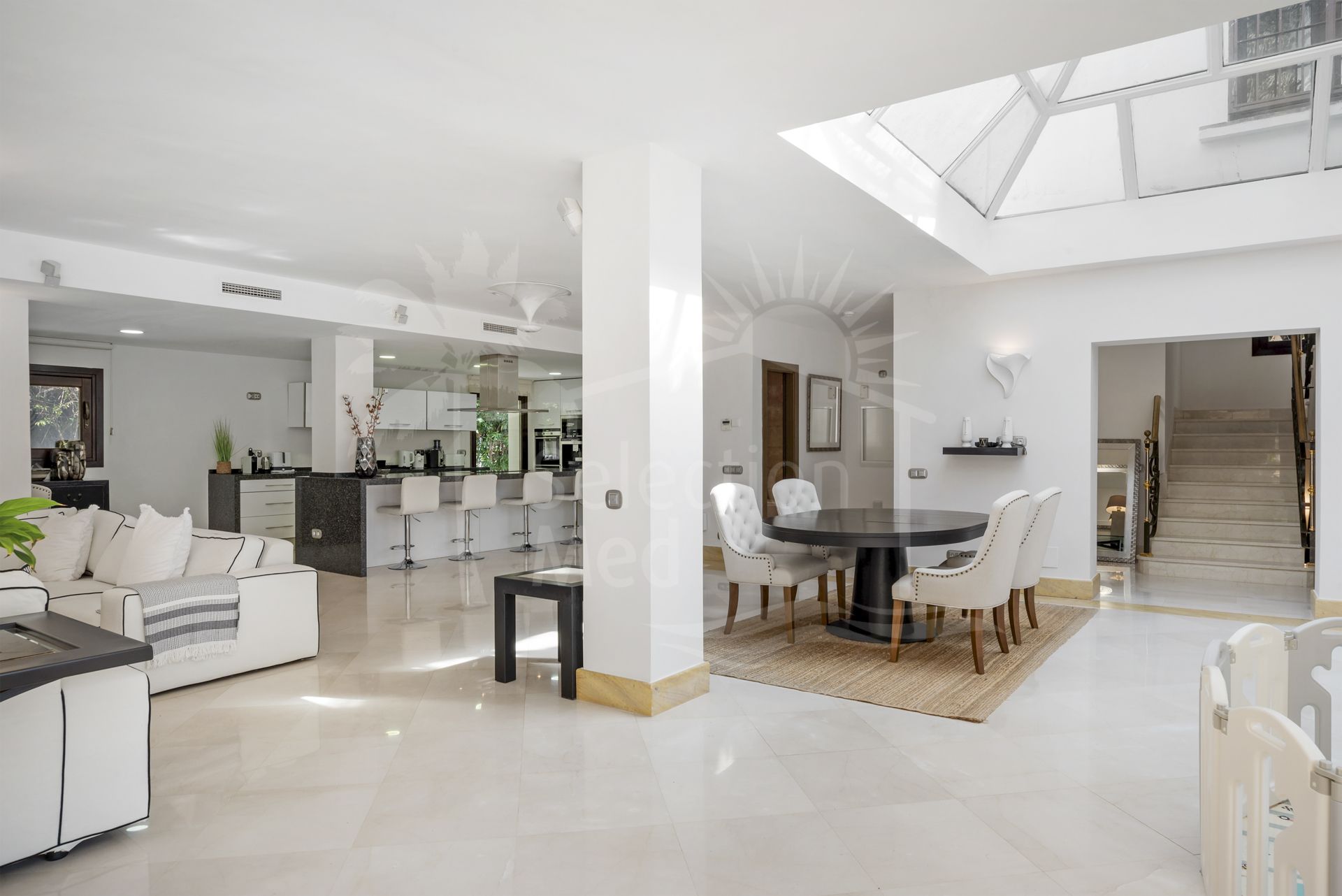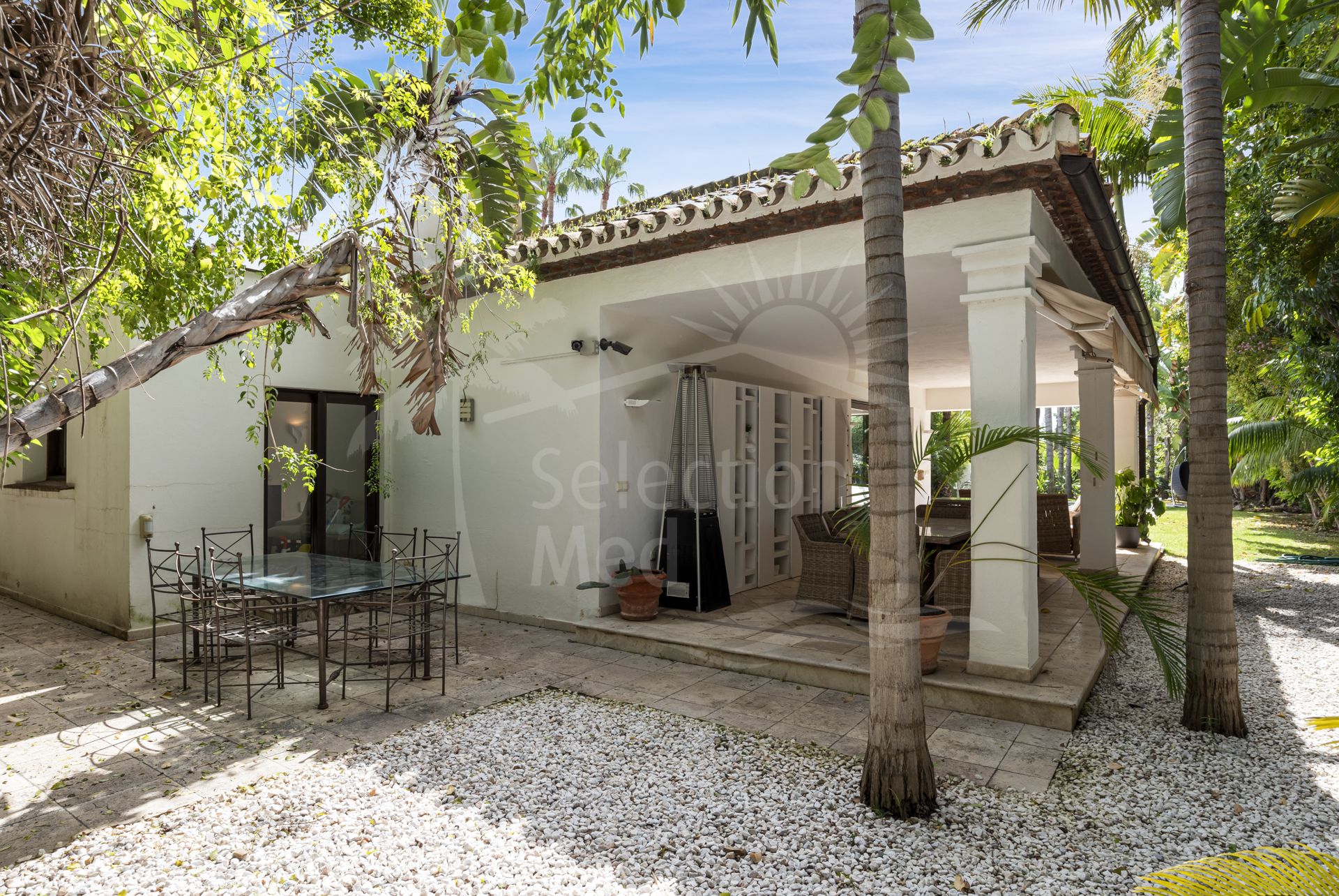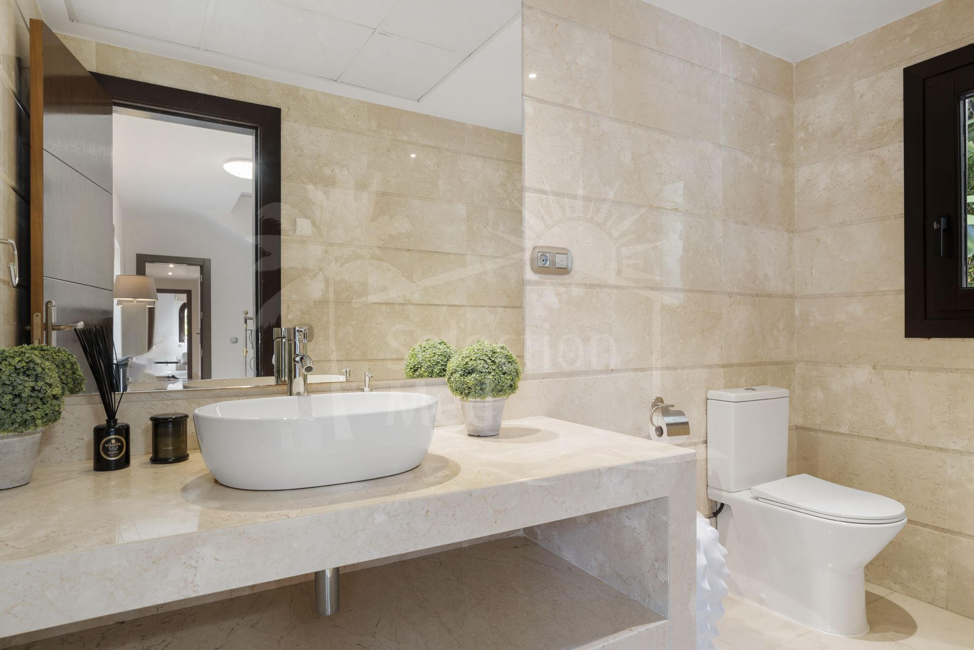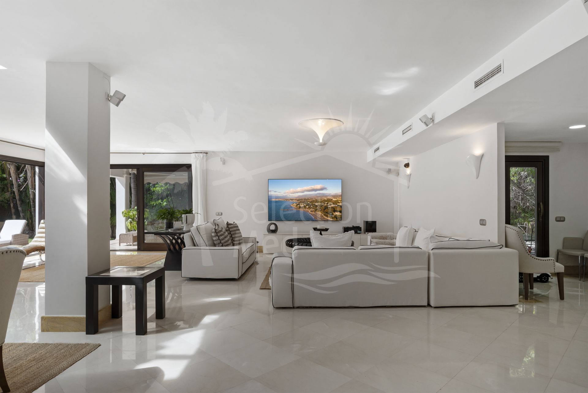 Bienvenido a esta villa única con orientación sur, situada en segunda línea de golf, a poca distancia de Centro Plaza, Aloha Garden, Puerto Banús, una serie de conocidos campos de golf como Aloha y Las Brisas, bares, restaurantes y supermercados.