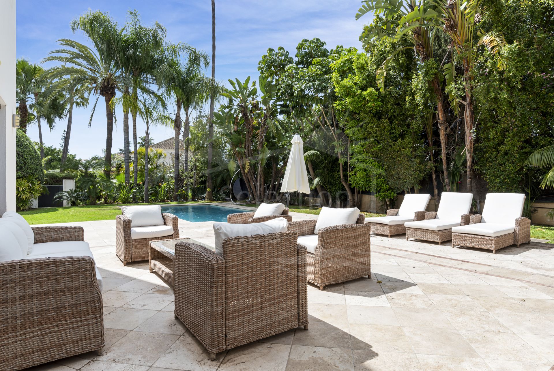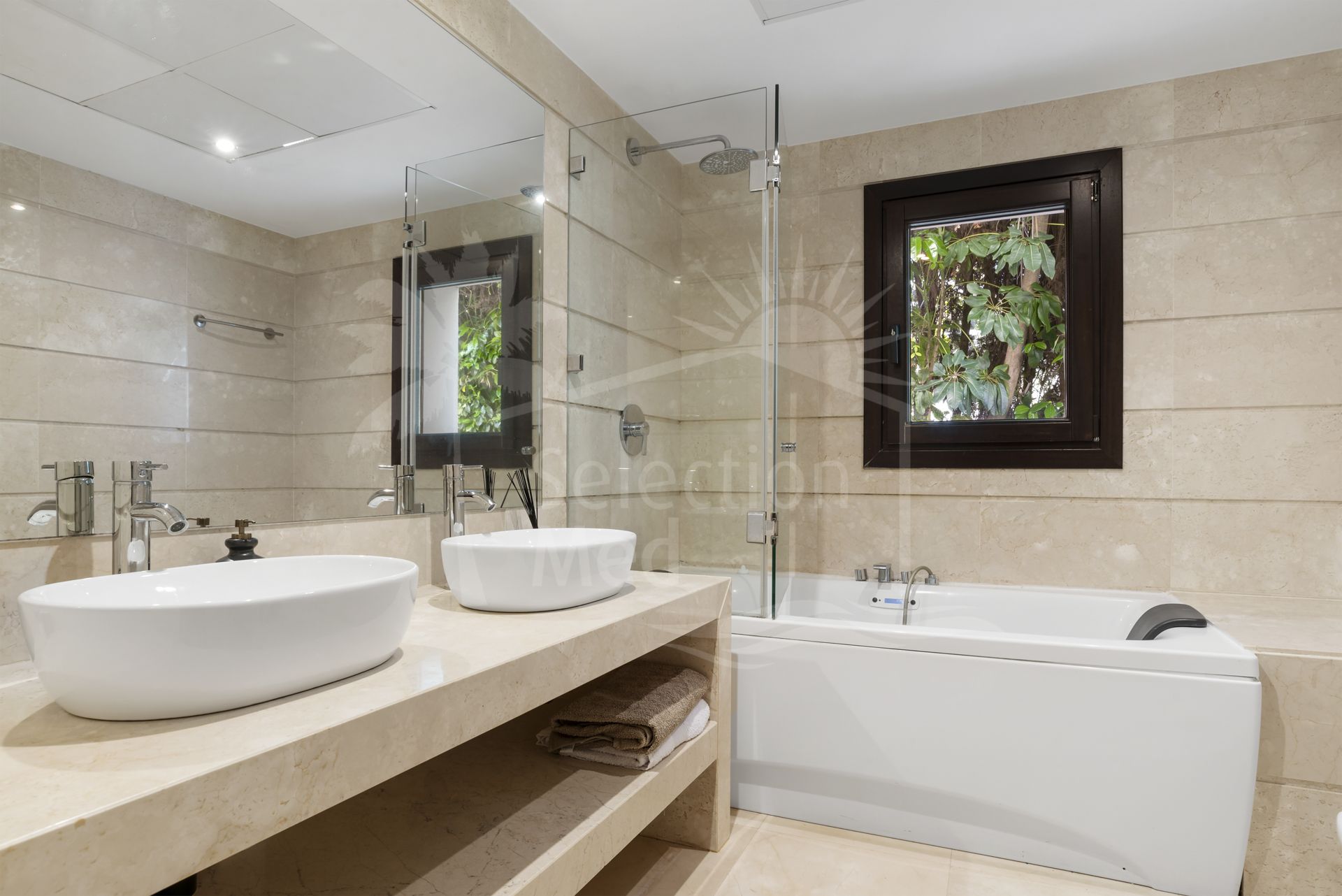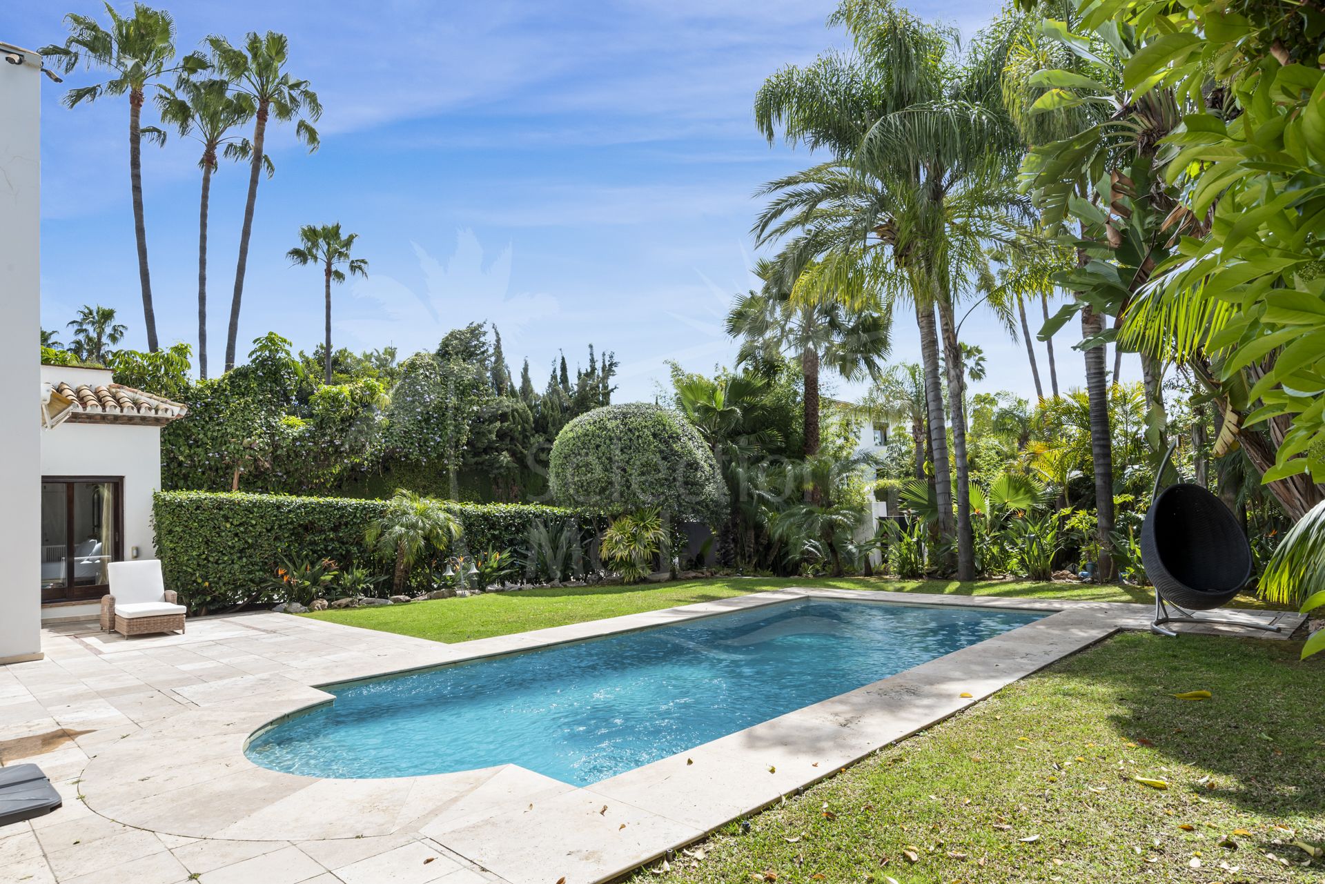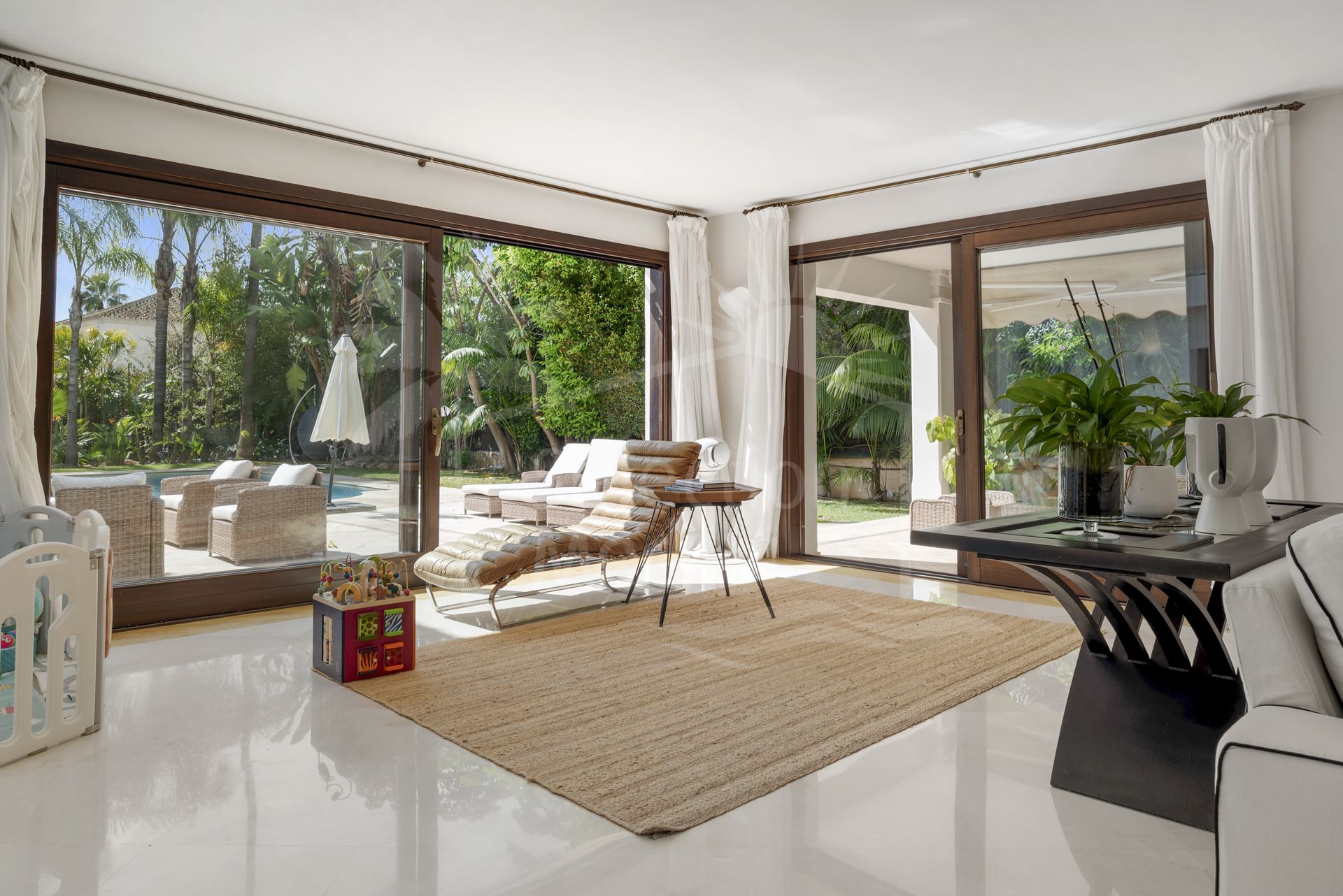 Bienvenido a esta villa única con orientación sur, situada en segunda línea de golf, a poca distancia de Centro Plaza, Aloha Garden, Puerto Banús, una serie de conocidos campos de golf como Aloha y Las Brisas, bares, restaurantes y supermercados.