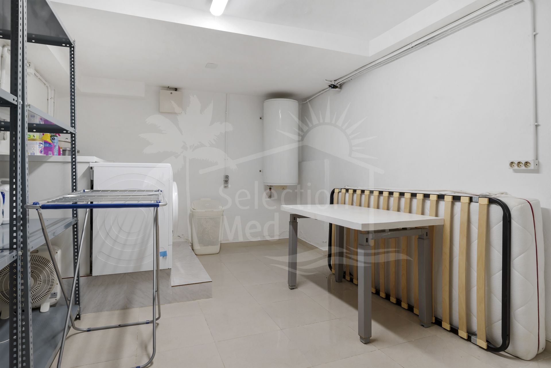En el sótano hay un trastero, lavadero, garaje para los 2 coches y espacio para hacer un gimnasio o una sala de cine.