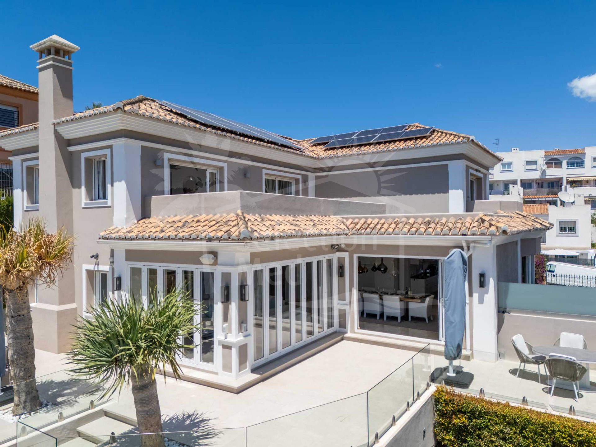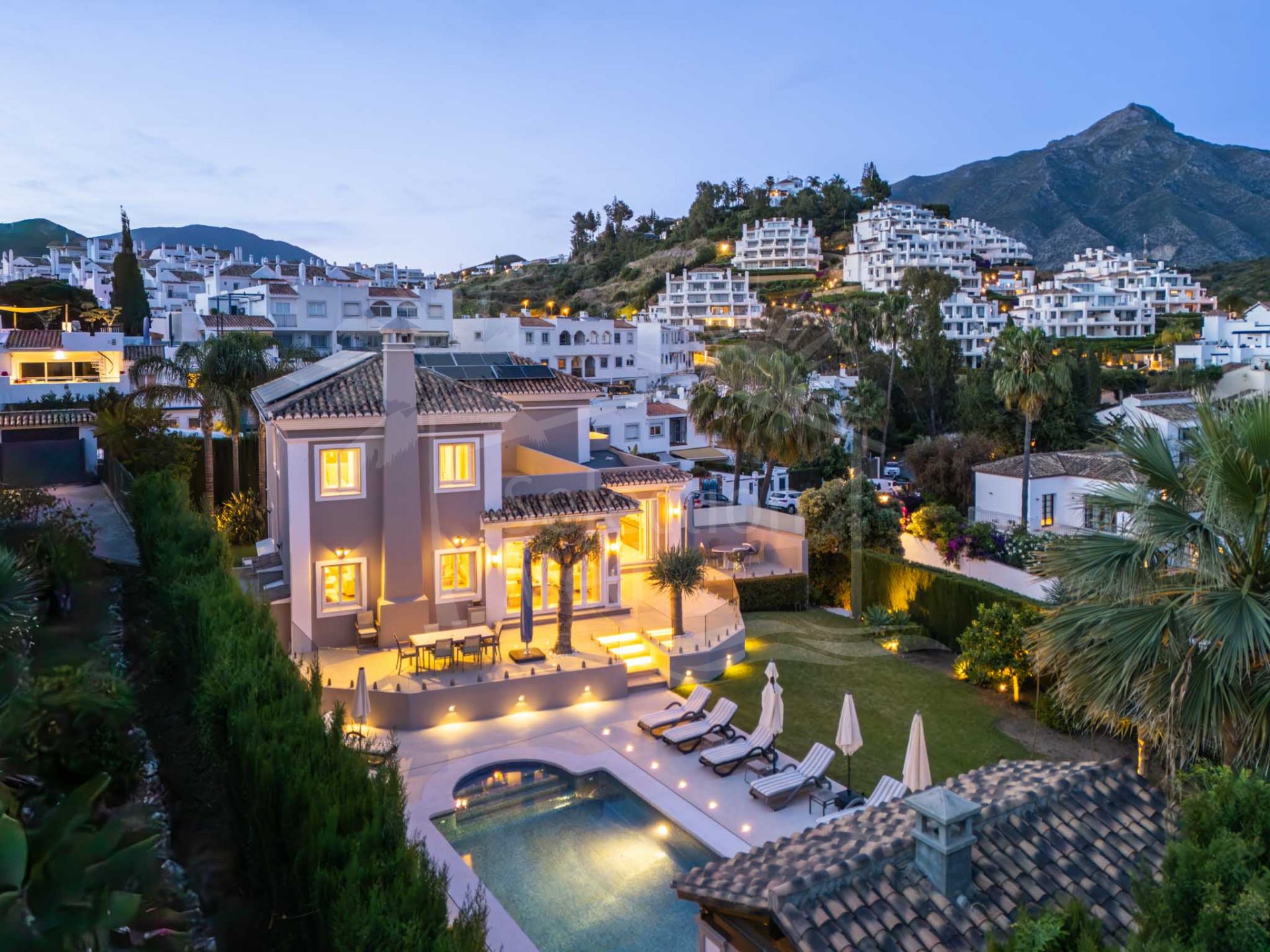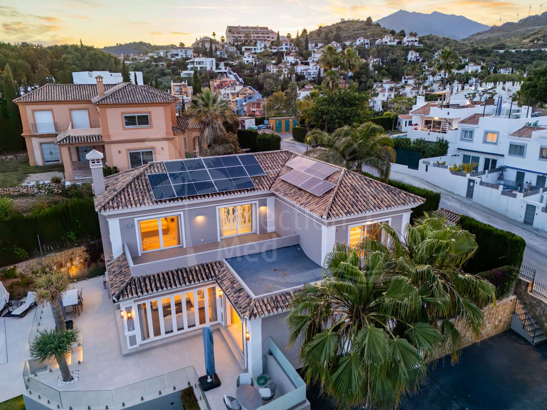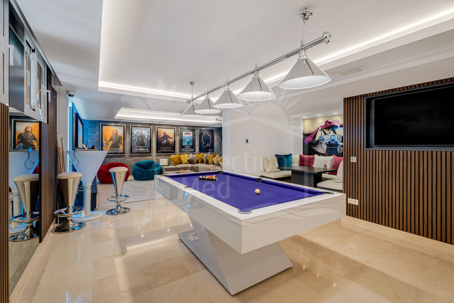 Entre los equipamientos destacan: aire acondicionado individual, persianas eléctricas, doble acristalamiento, sistema de alarma, cámaras de vigilancia, puerta blindada y entrada por videoportero. La propiedad incluye también paneles solares, sistema Dolby Stereo Surround, conexión a internet Wi-Fi, televisión por satélite y armarios empotrados. Su proximidad a servicios, transporte, colegios, golf, playas, puerto, tiendas y zonas infantiles convierten esta villa en una oportunidad única para quienes buscan lujo, seguridad y una ubicación inmejorable en Marbella.
