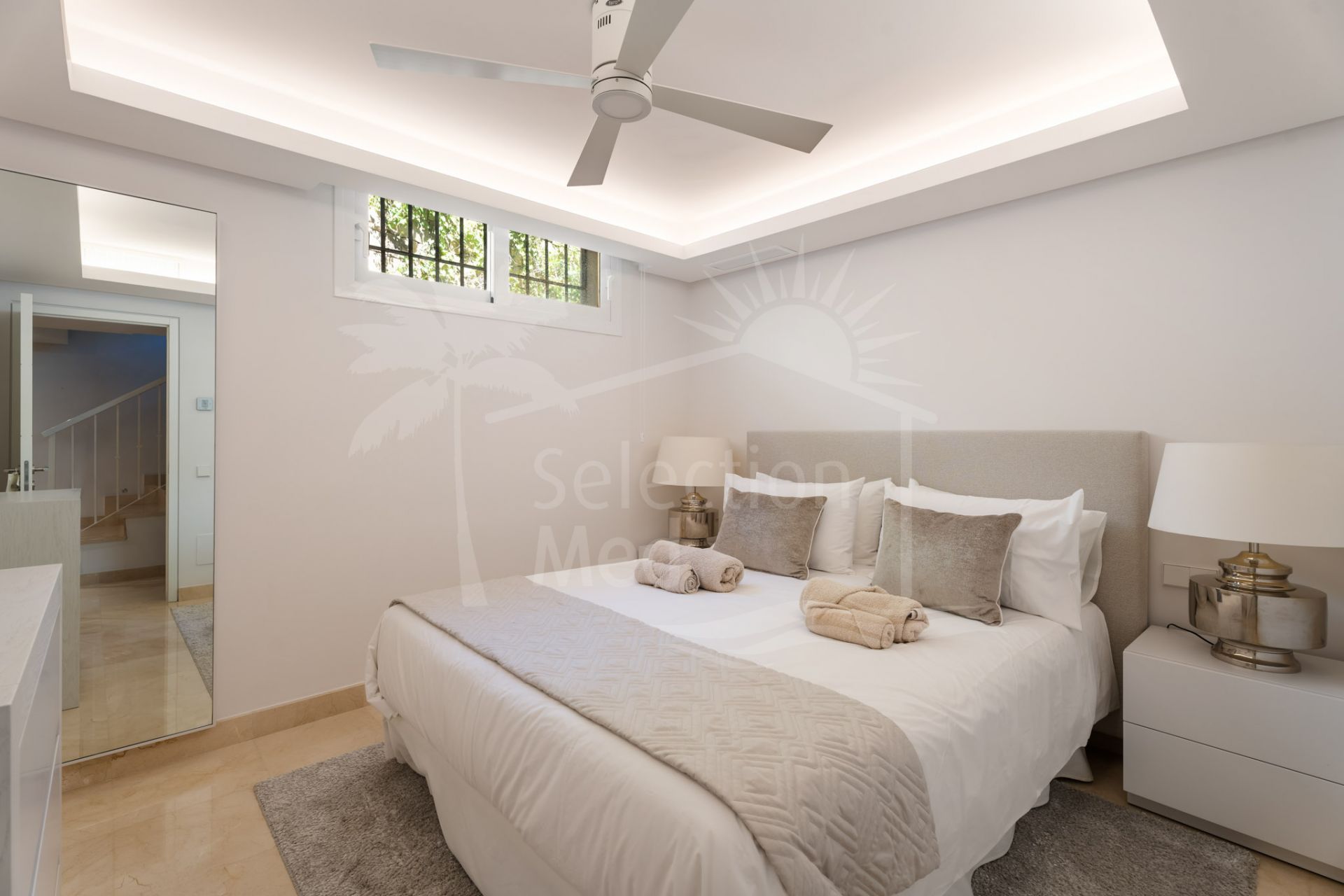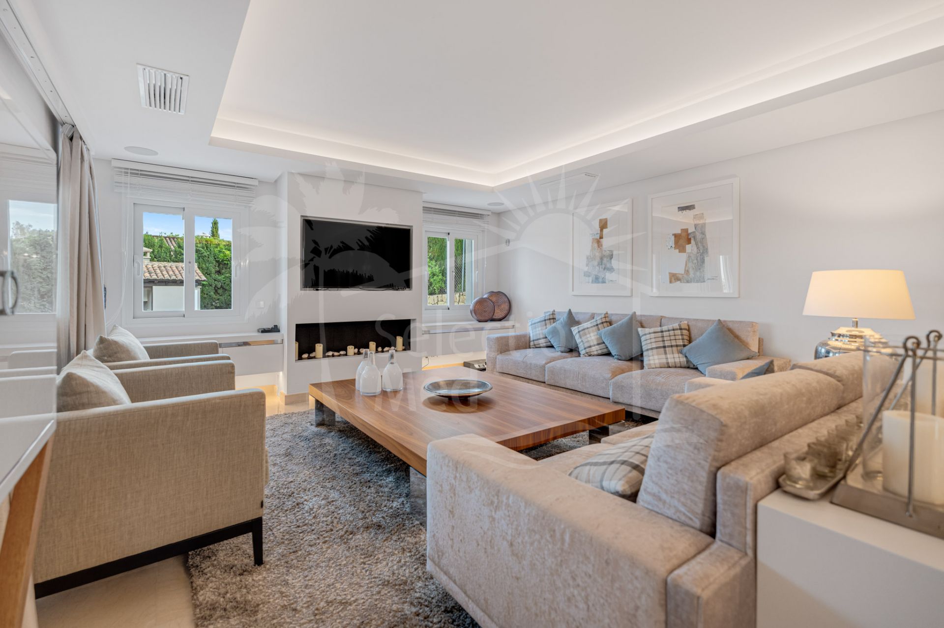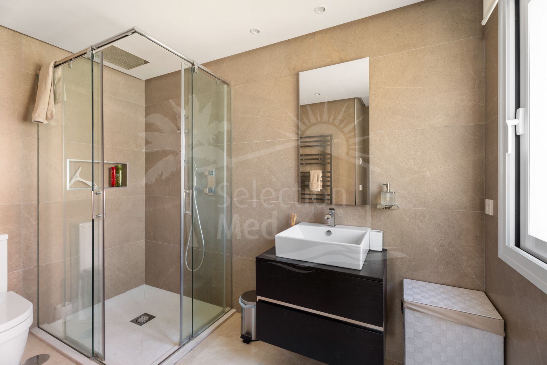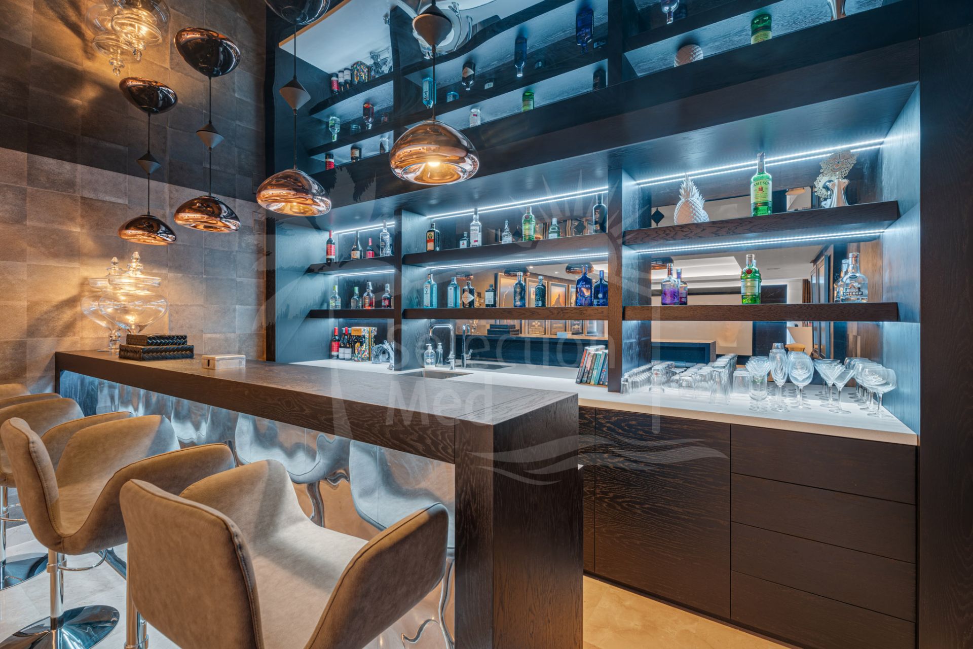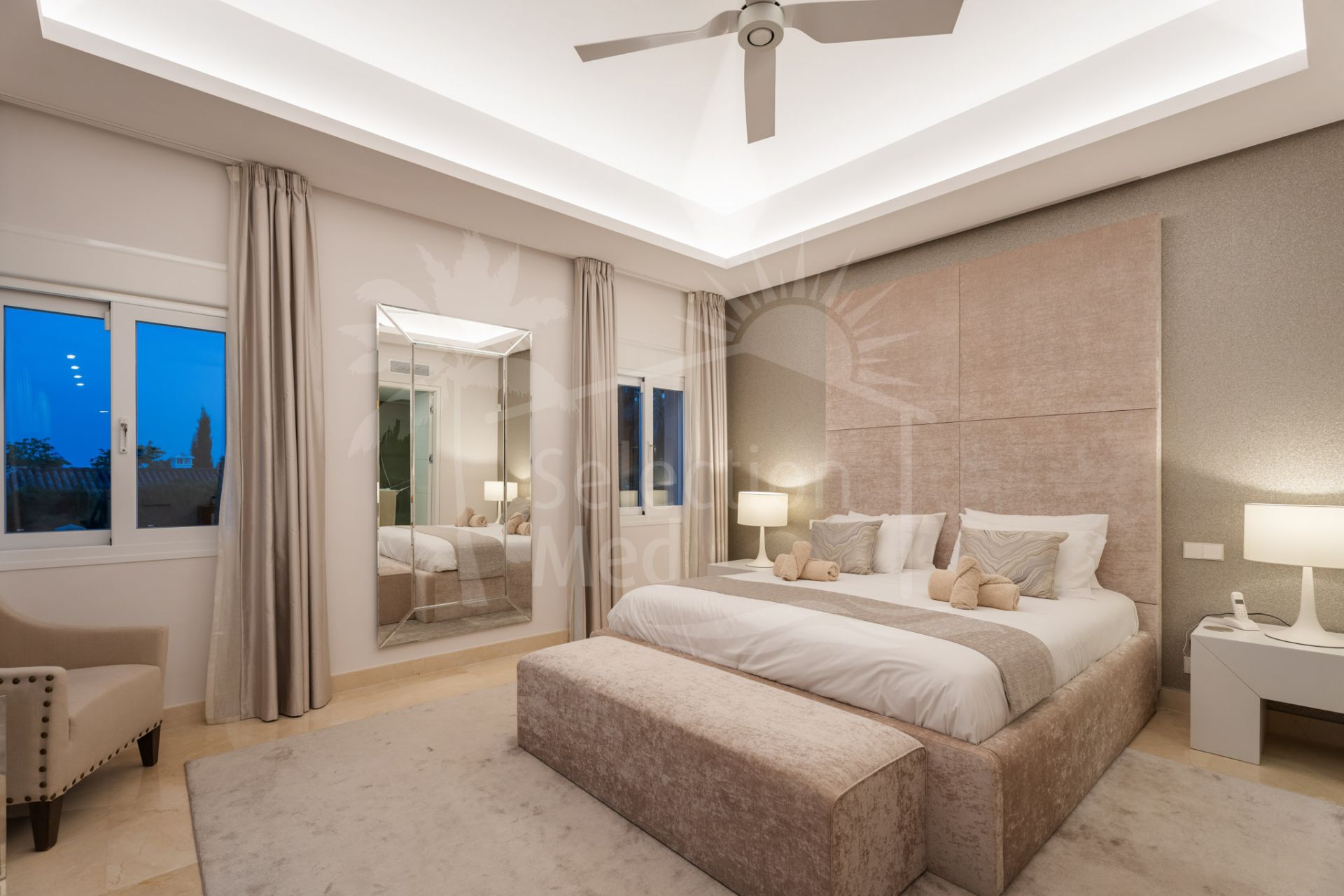 Entre los equipamientos destacan: aire acondicionado individual, persianas eléctricas, doble acristalamiento, sistema de alarma, cámaras de vigilancia, puerta blindada y entrada por videoportero. La propiedad incluye también paneles solares, sistema Dolby Stereo Surround, conexión a internet Wi-Fi, televisión por satélite y armarios empotrados. Su proximidad a servicios, transporte, colegios, golf, playas, puerto, tiendas y zonas infantiles convierten esta villa en una oportunidad única para quienes buscan lujo, seguridad y una ubicación inmejorable en Marbella.