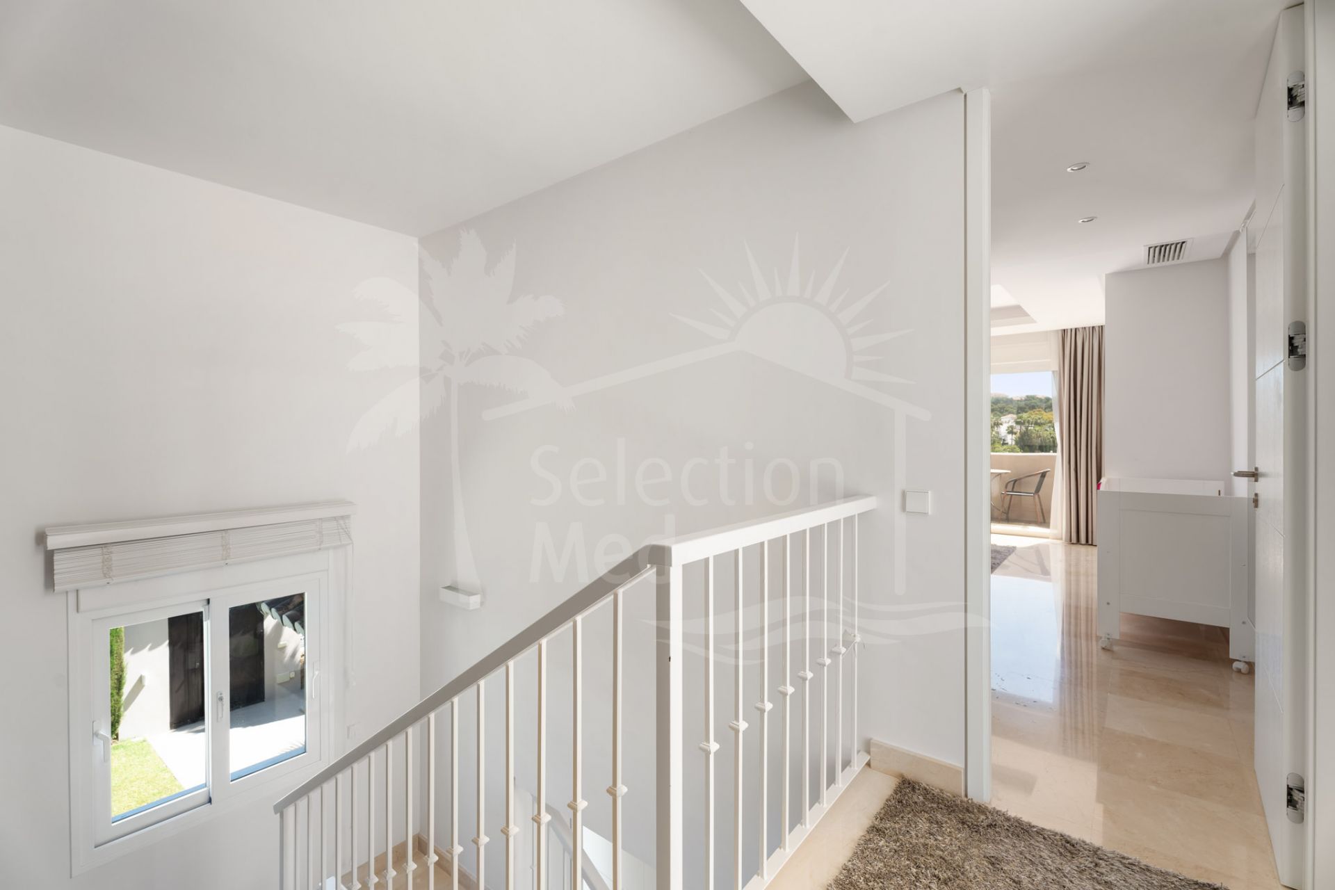 Esta impresionante villa de lujo, situada en la codiciada zona de Nueva Andalucía, Marbella, Málaga, destaca por su combinación de elegancia, confort y ubicación privilegiada. Con una superficie construida de 510 m² sobre una generosa parcela de 1.200 m², la propiedad ha sido diseñada para satisfacer las más altas expectativas. Se encuentra en una sole agency, lo que garantiza su exclusividad en el mercado.