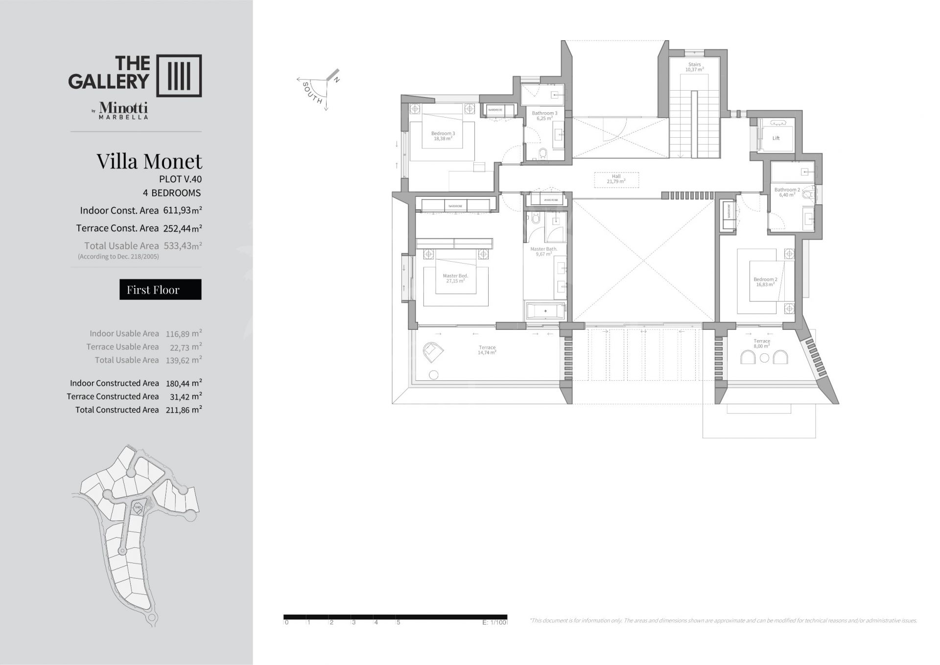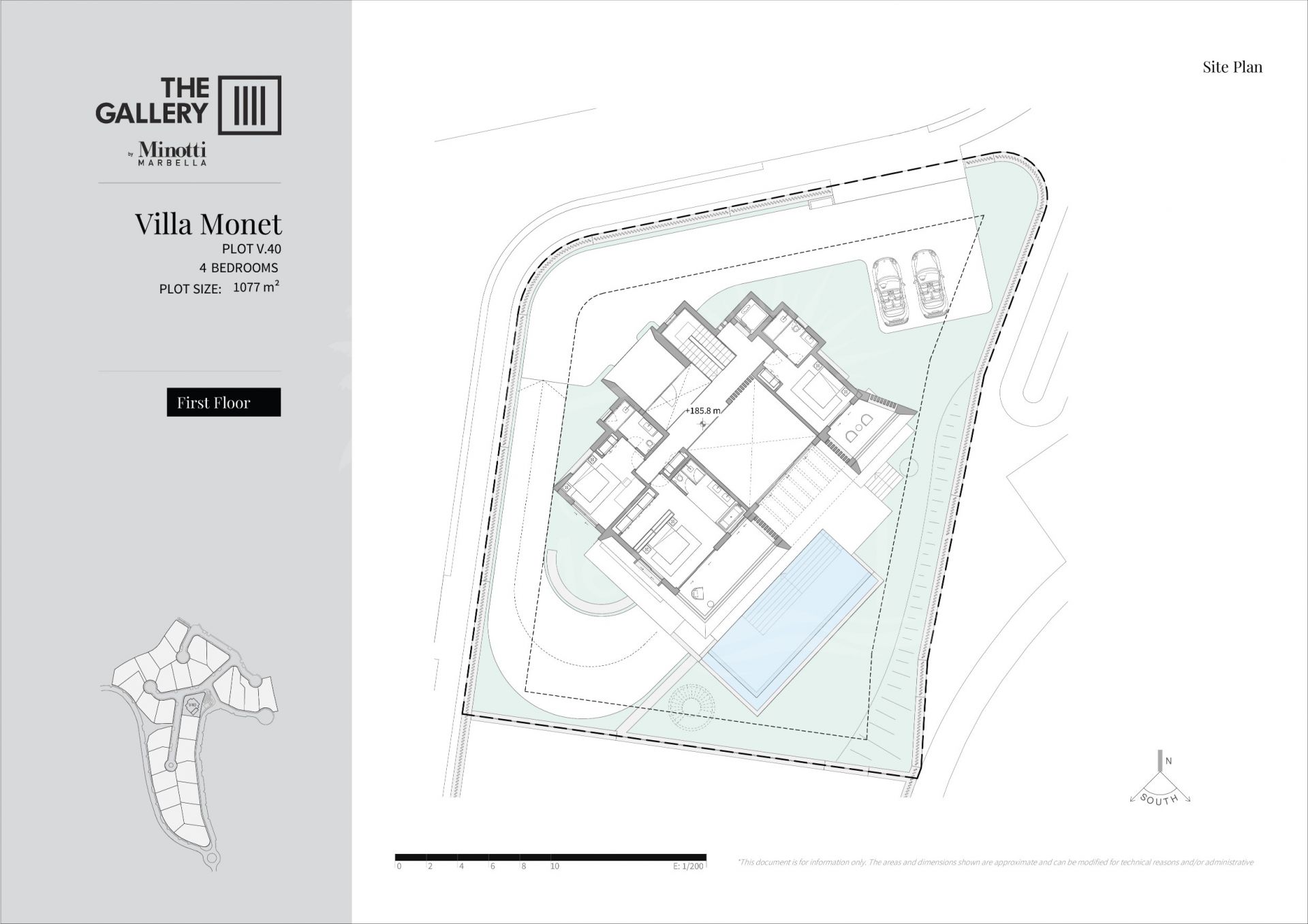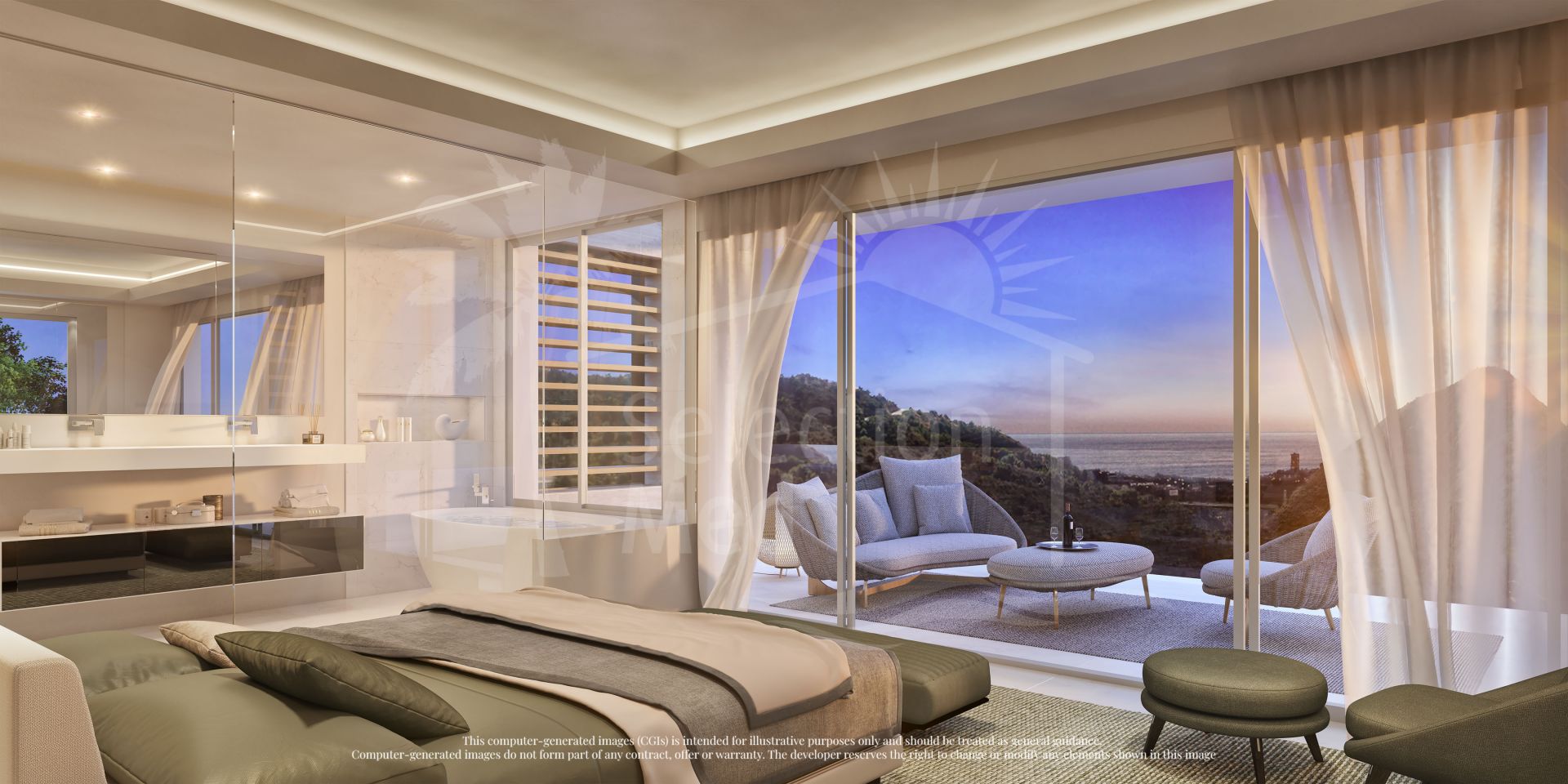 Villa en venta en Palo Alto, Ojen con 4 dormitorios, 5 baños, 4 baños en suite, 1 aseo, construido en 2025 y tiene piscina (privado), garaje (privado) y jardín (privado). Dimensiones: 864.37m² construidos, 1077m² parcela, 611.93m² interior y 252.44m² terraza.