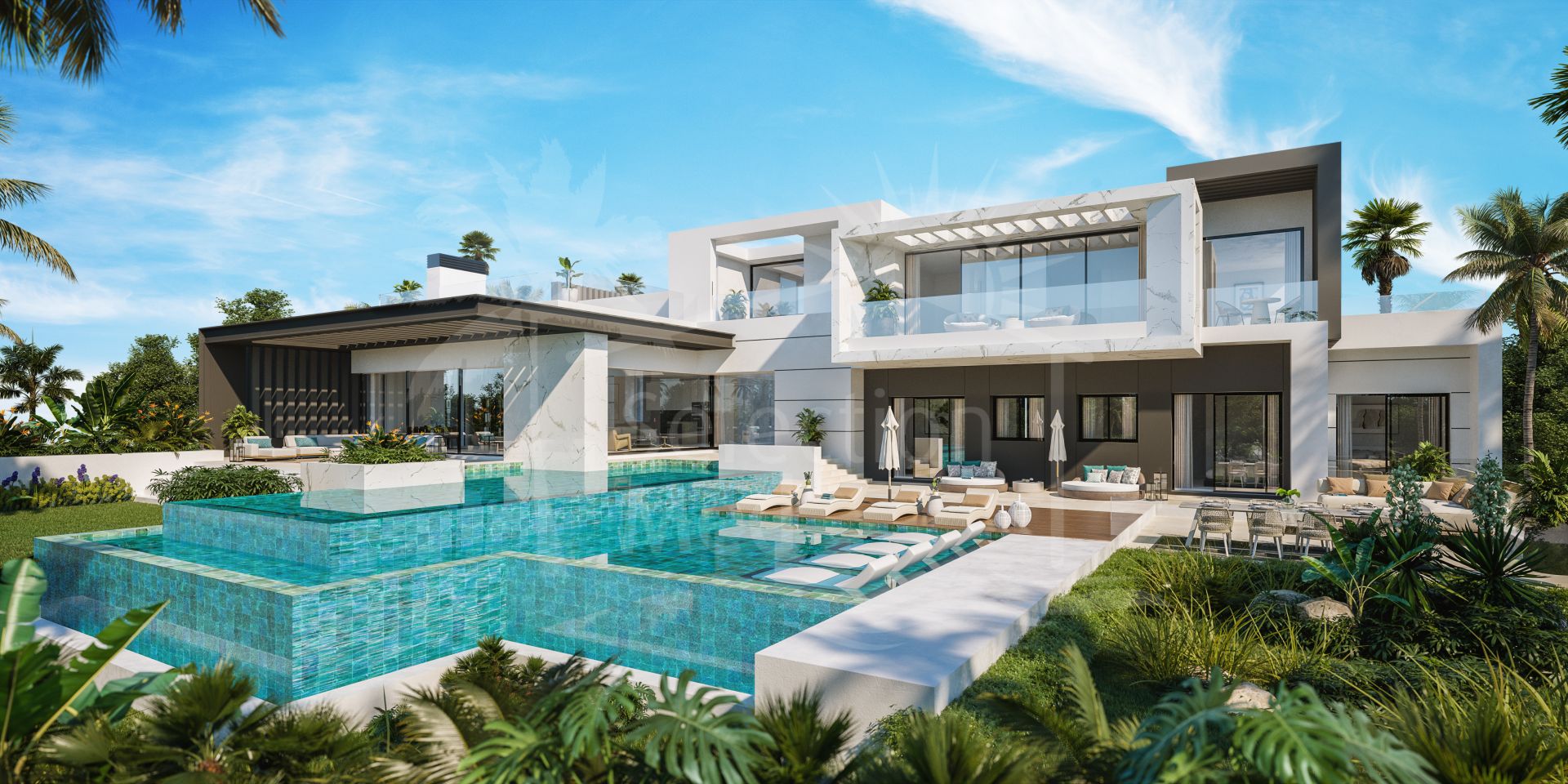 La construcción y características son de última generación y con los más altos niveles, e incluyen todos los lujos, entre los que se incluyen spa interior, piscinas dobles y garaje para varios vehículos, entre otros muchos rasgos especiales.