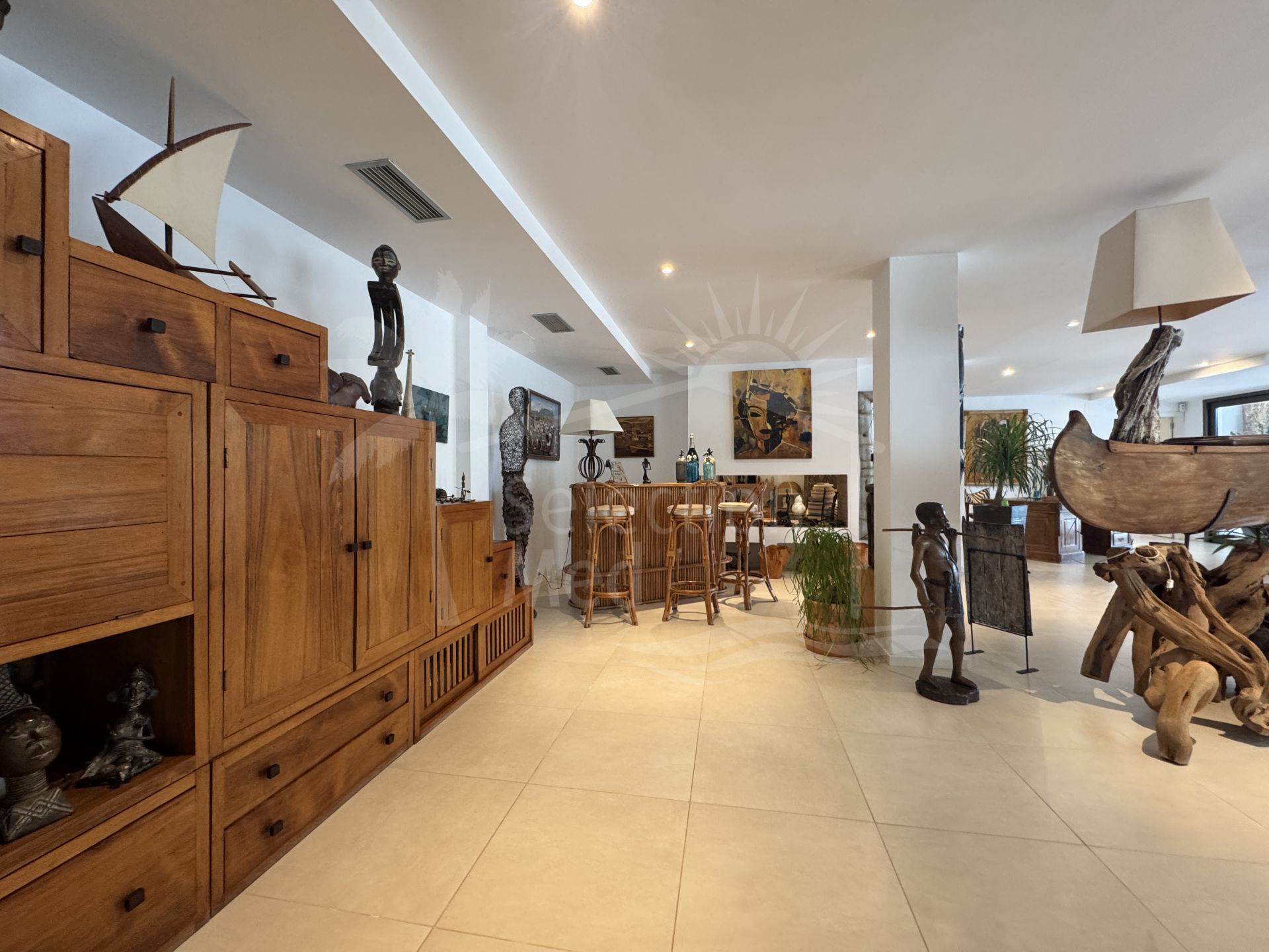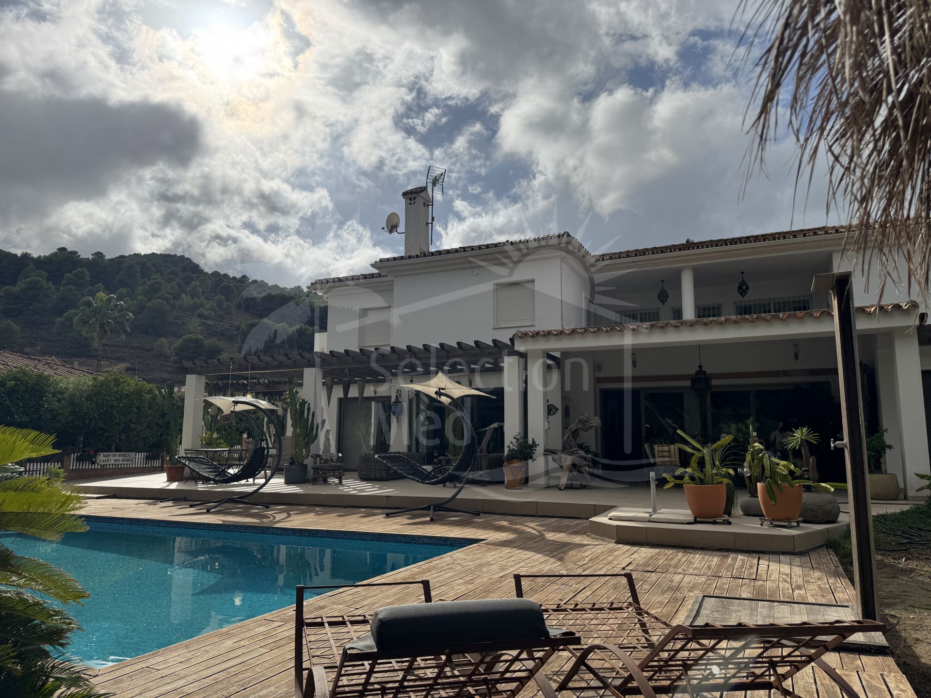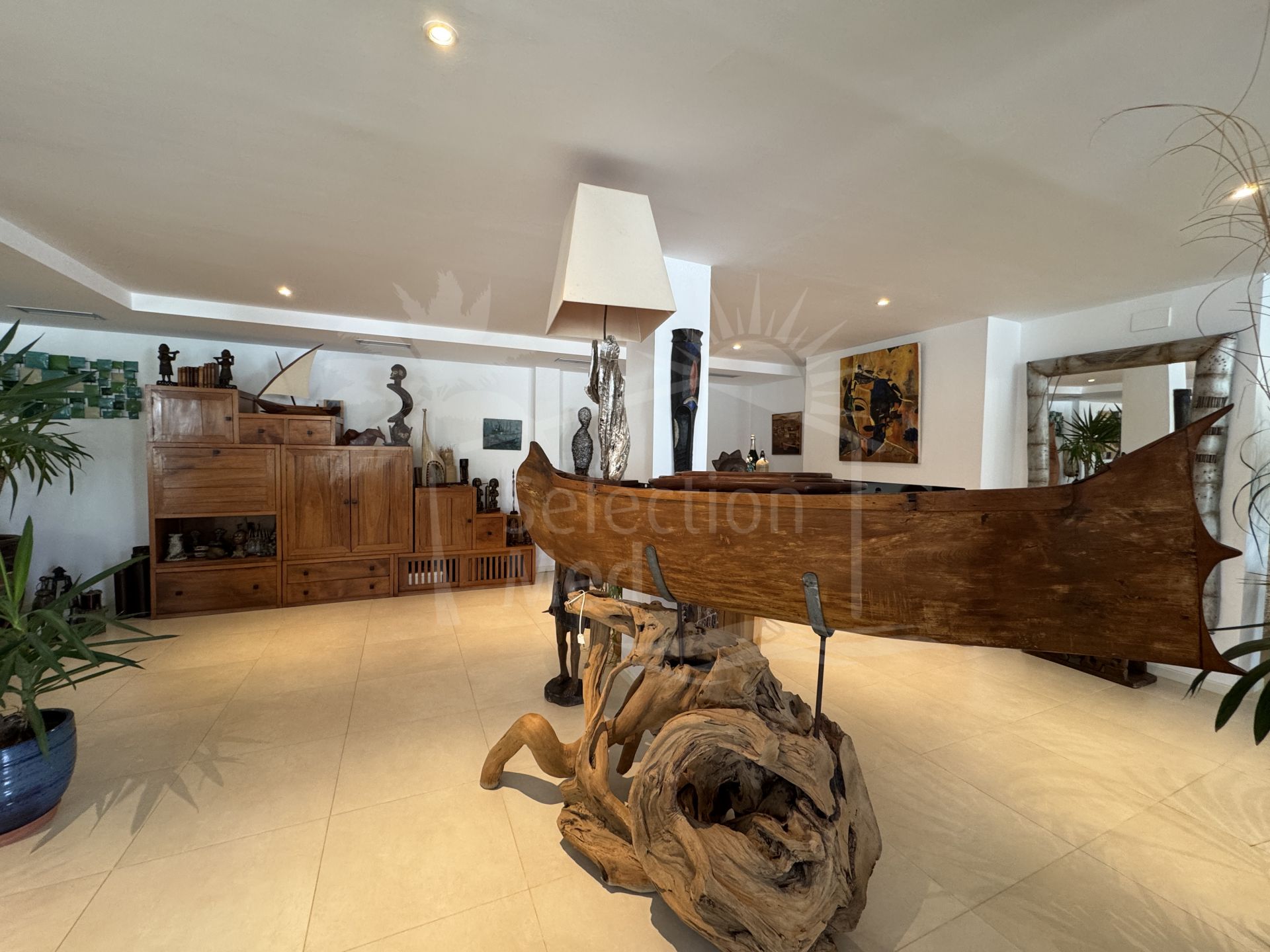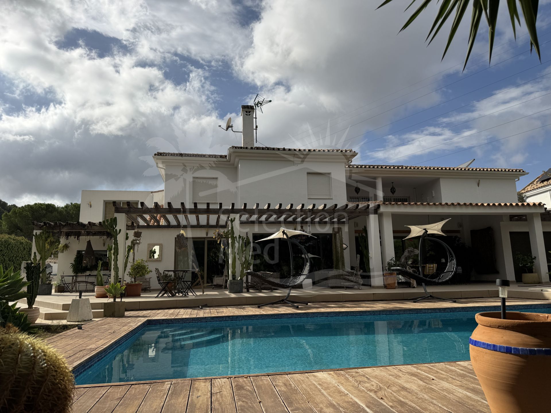 El interior de la villa destaca por sus numerosos atractivos: cocina totalmente equipada, amplio salón con chimenea, comedor independiente, así como sala de juegos y despacho. Varias terrazas, tanto cubiertas como descubiertas, permiten disfrutar de vistas despejadas al campo, al jardín maduro o a la piscina privada. La presencia de un dormitorio y un apartamento para invitados, trastero, despacho y vestidor para invitados aumenta la funcionalidad de la vivienda. Además, la villa dispone de sistema de calefacción por techo, aire acondicionado, sistema Dolby Surround, doble acristalamiento, suelos de gres, acceso a Internet por fibra óptica y máxima seguridad garantizada por sistema de alarma, cámaras de vigilancia y rejas de seguridad.