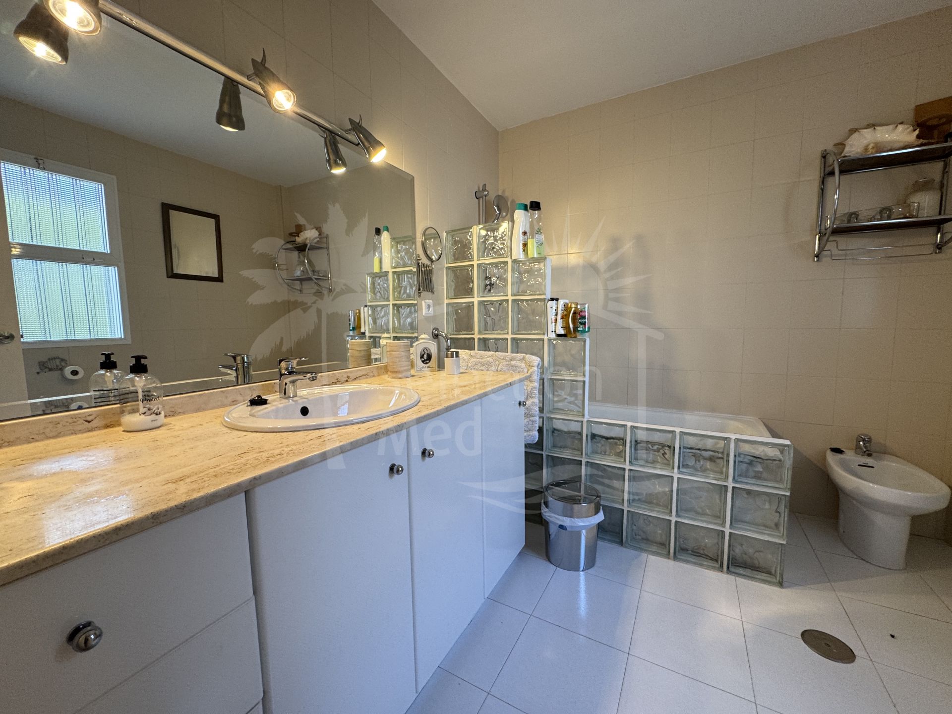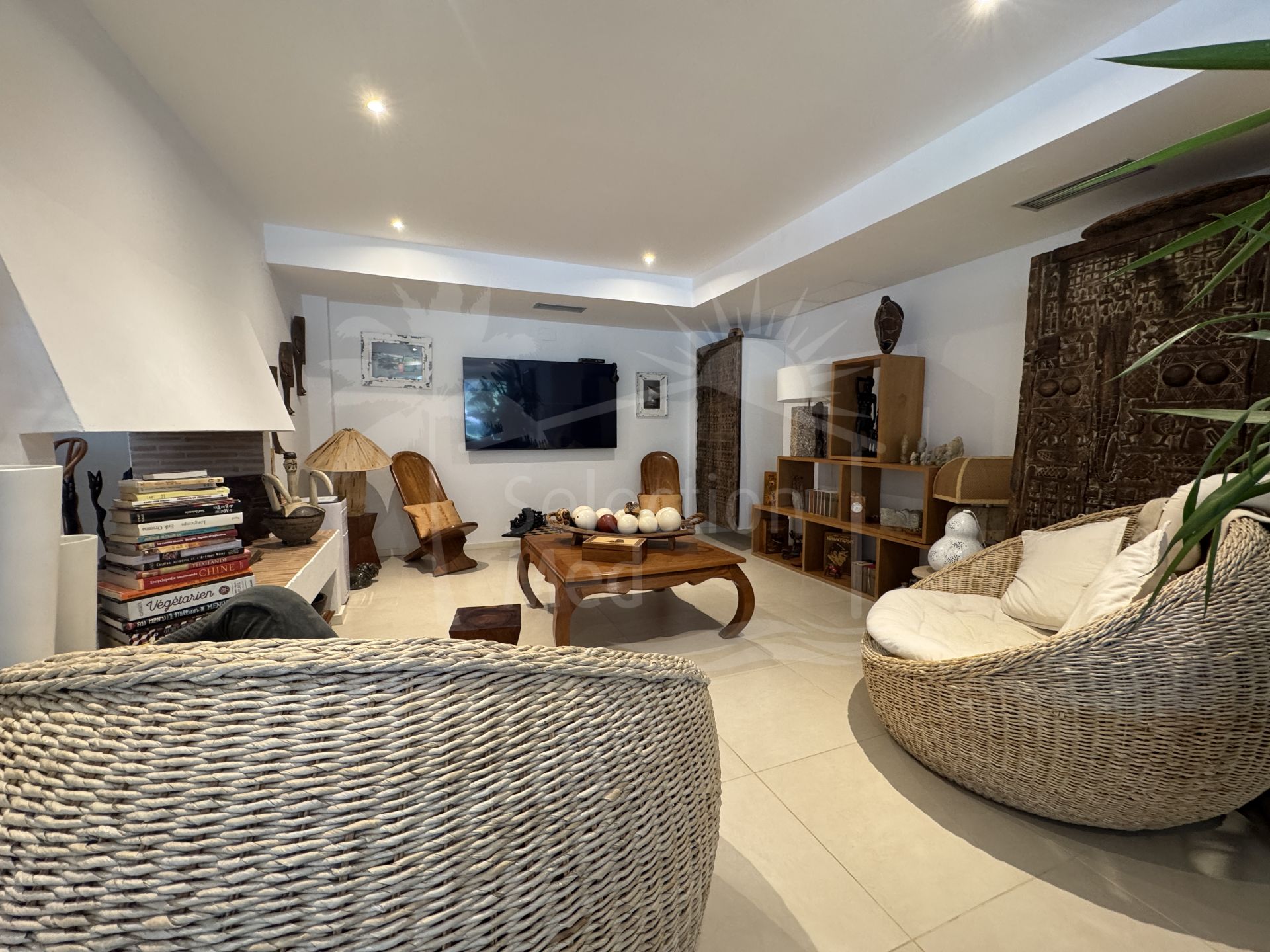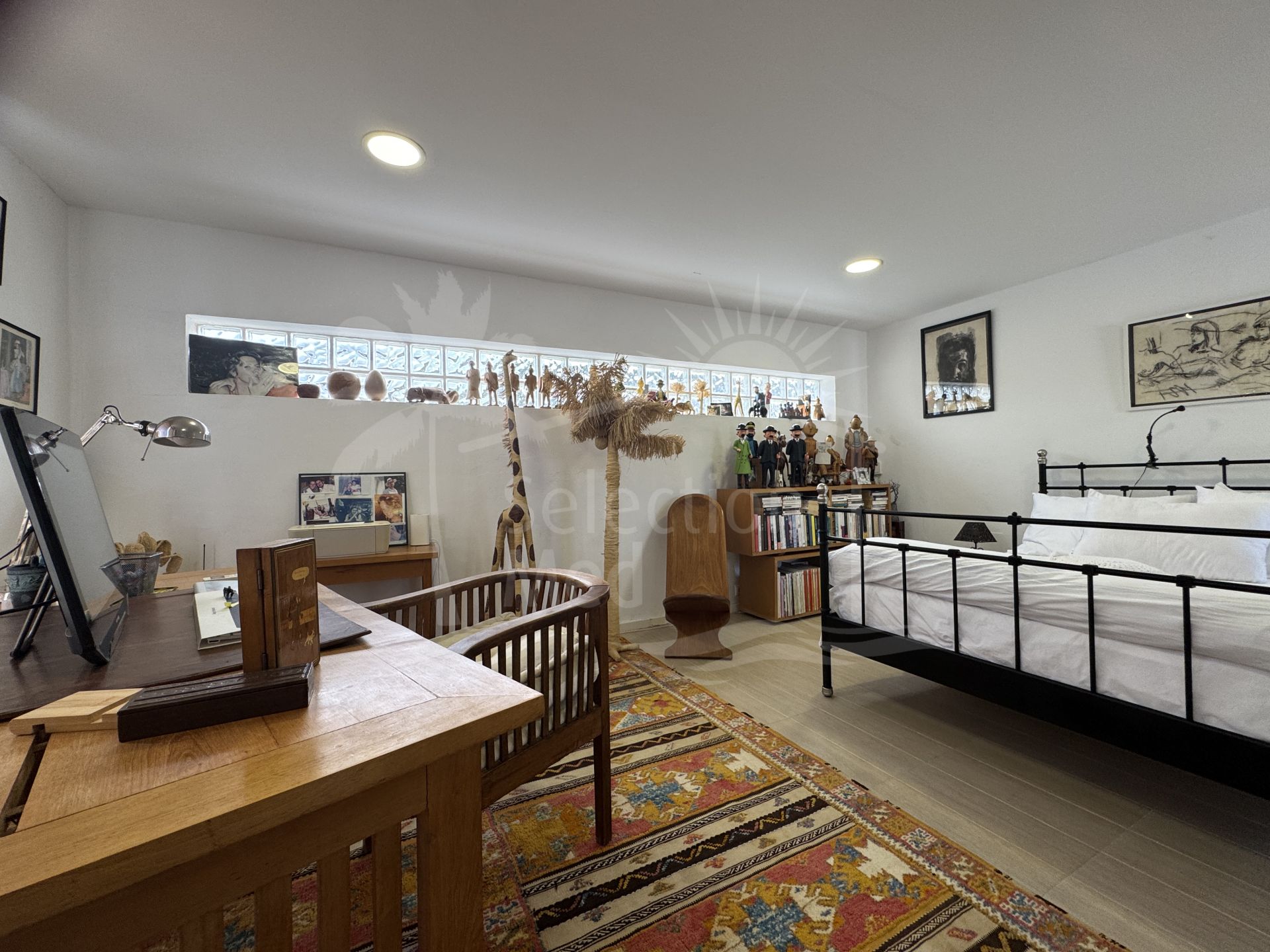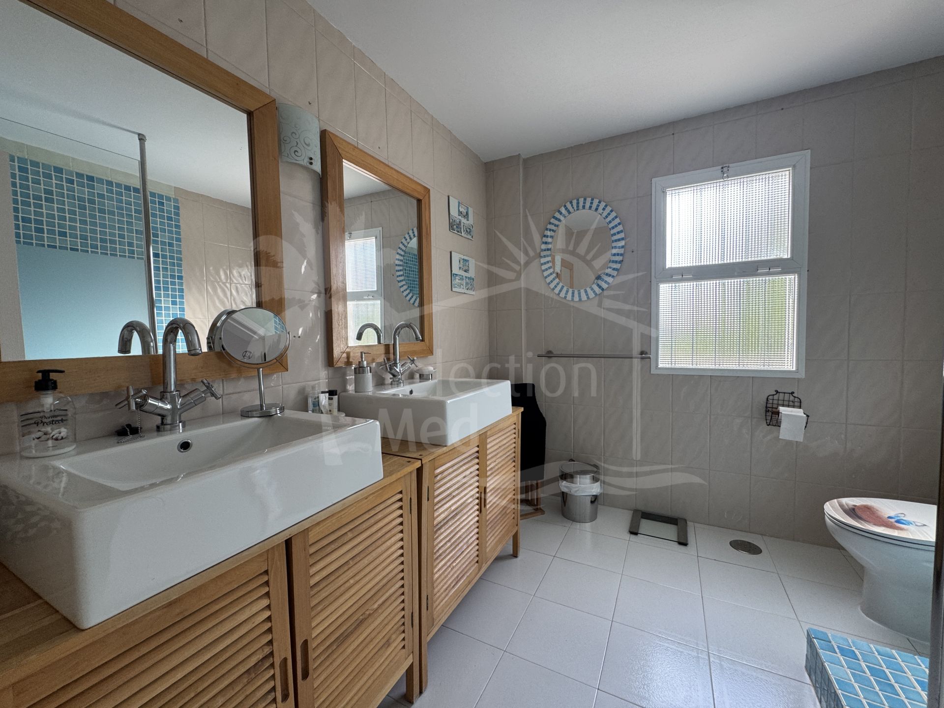 El interior de la villa destaca por sus numerosos atractivos: cocina totalmente equipada, amplio salón con chimenea, comedor independiente, así como sala de juegos y despacho. Varias terrazas, tanto cubiertas como descubiertas, permiten disfrutar de vistas despejadas al campo, al jardín maduro o a la piscina privada. La presencia de un dormitorio y un apartamento para invitados, trastero, despacho y vestidor para invitados aumenta la funcionalidad de la vivienda. Además, la villa dispone de sistema de calefacción por techo, aire acondicionado, sistema Dolby Surround, doble acristalamiento, suelos de gres, acceso a Internet por fibra óptica y máxima seguridad garantizada por sistema de alarma, cámaras de vigilancia y rejas de seguridad.