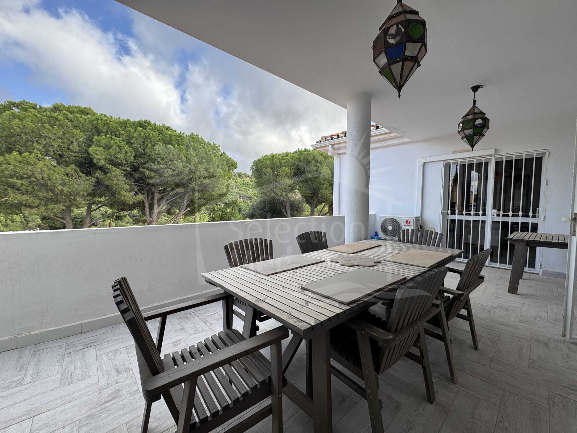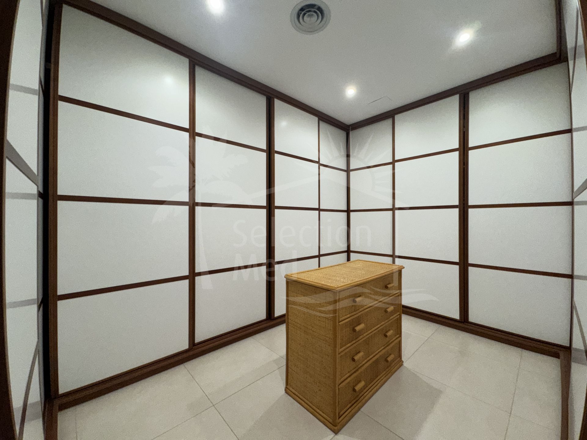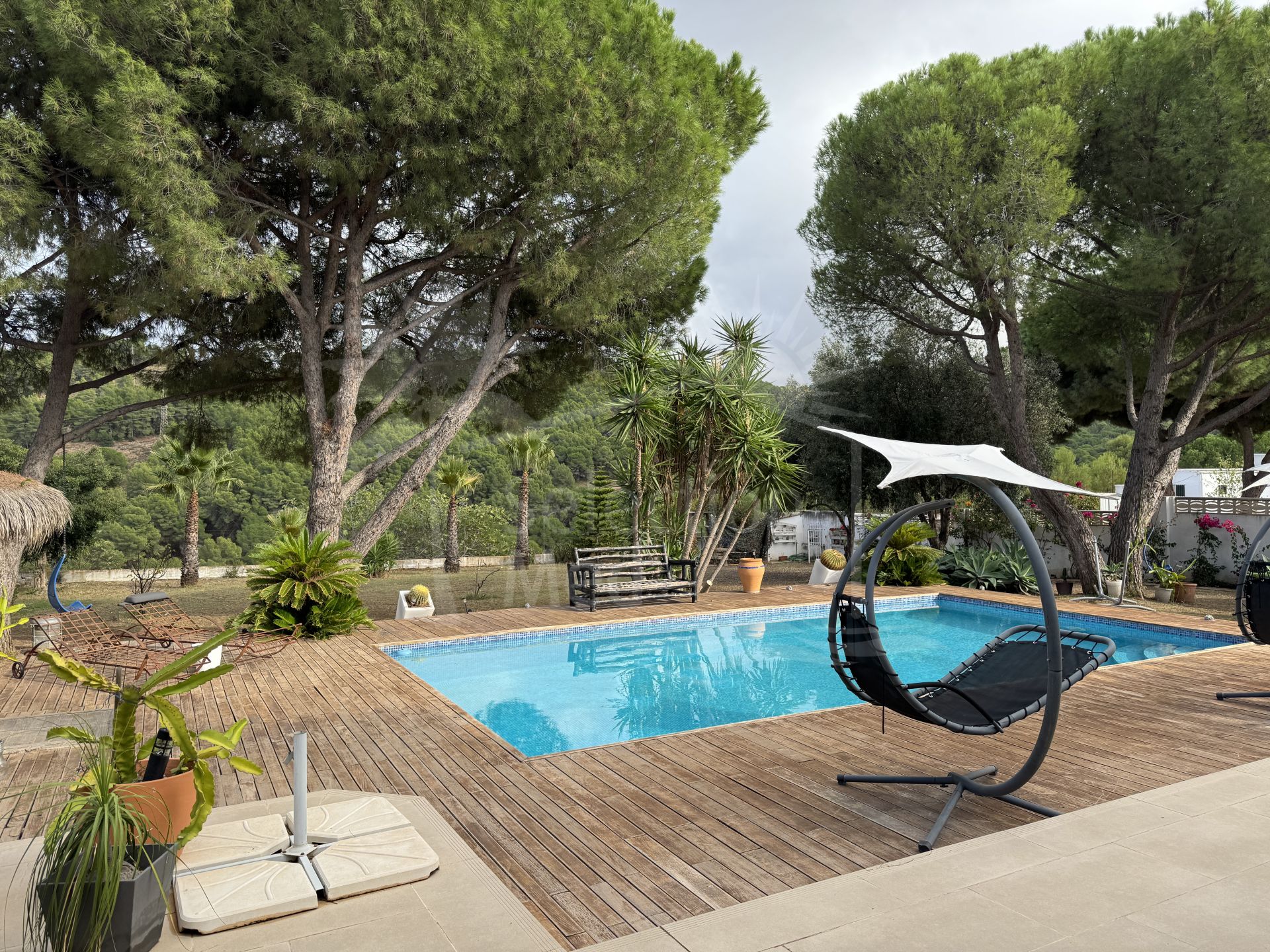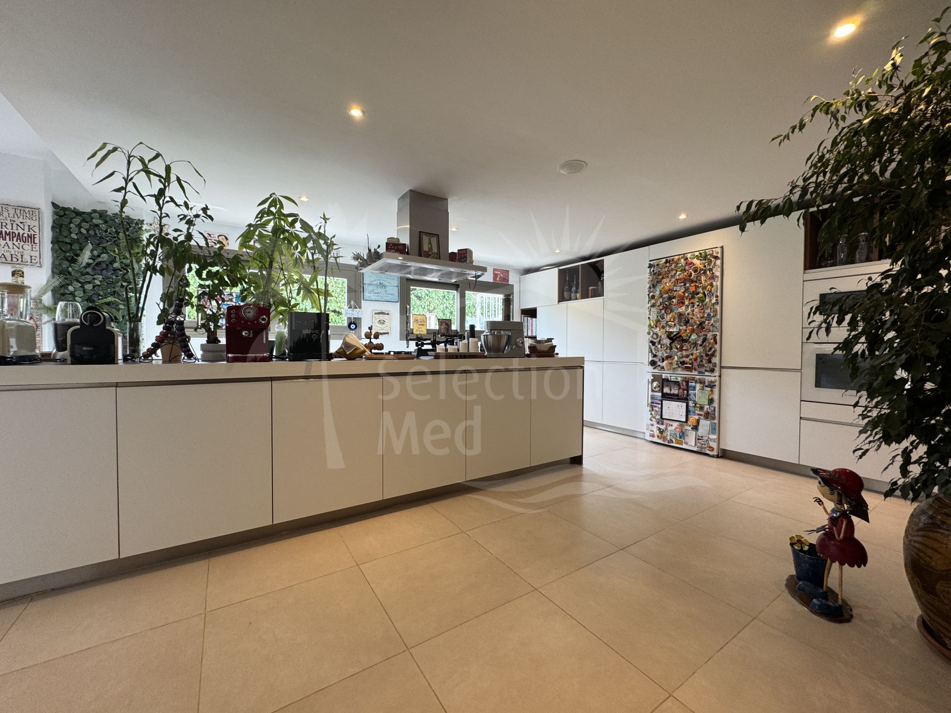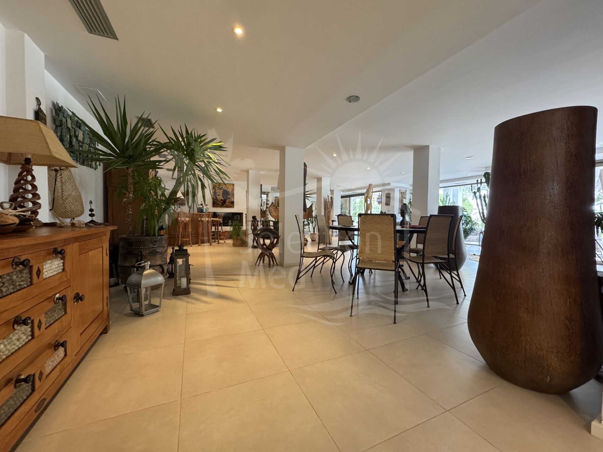 El interior de la villa destaca por sus numerosos atractivos: cocina totalmente equipada, amplio salón con chimenea, comedor independiente, así como sala de juegos y despacho. Varias terrazas, tanto cubiertas como descubiertas, permiten disfrutar de vistas despejadas al campo, al jardín maduro o a la piscina privada. La presencia de un dormitorio y un apartamento para invitados, trastero, despacho y vestidor para invitados aumenta la funcionalidad de la vivienda. Además, la villa dispone de sistema de calefacción por techo, aire acondicionado, sistema Dolby Surround, doble acristalamiento, suelos de gres, acceso a Internet por fibra óptica y máxima seguridad garantizada por sistema de alarma, cámaras de vigilancia y rejas de seguridad.