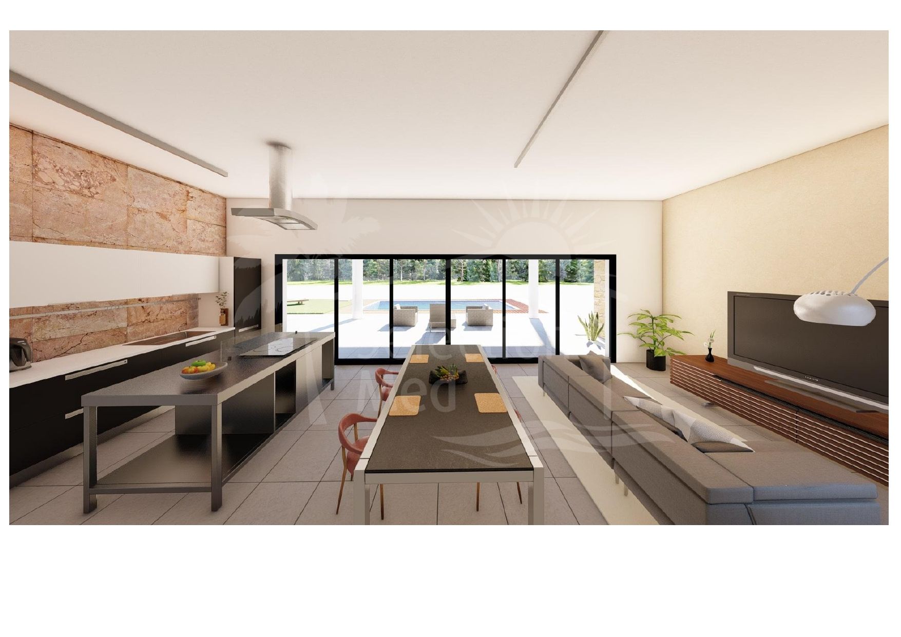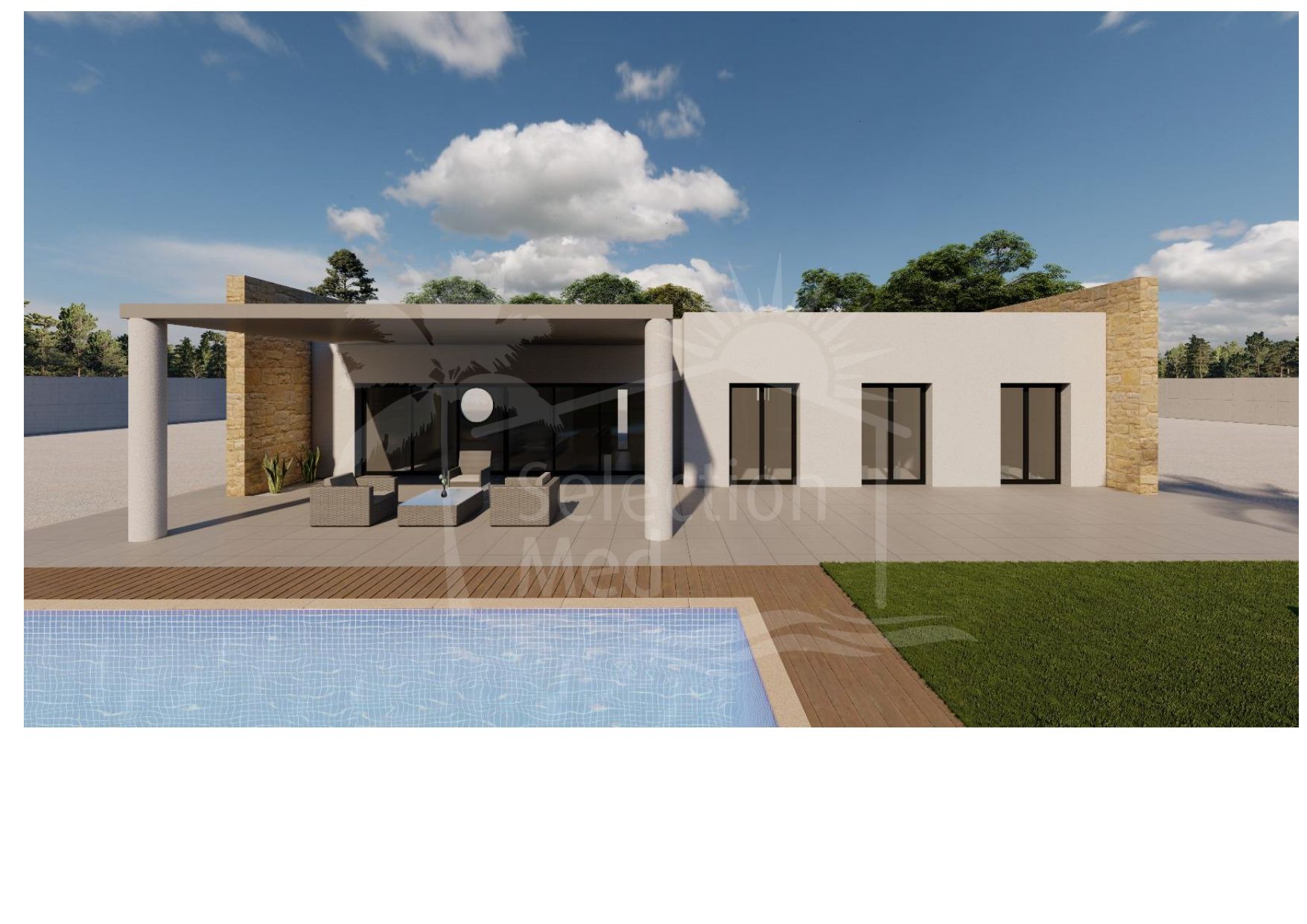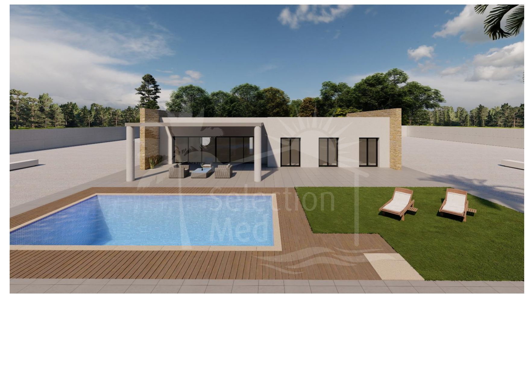 El interior destaca por su cocina amueblada, baños equipados y la preinstalación de aire acondicionado y calefacción por conductos, ofreciendo confort durante todo el año. En el exterior, podrás disfrutar de tu propia piscina privada de 8×4 m y amplias zonas al aire libre perfectas para relajarte o compartir con familia y amigos.