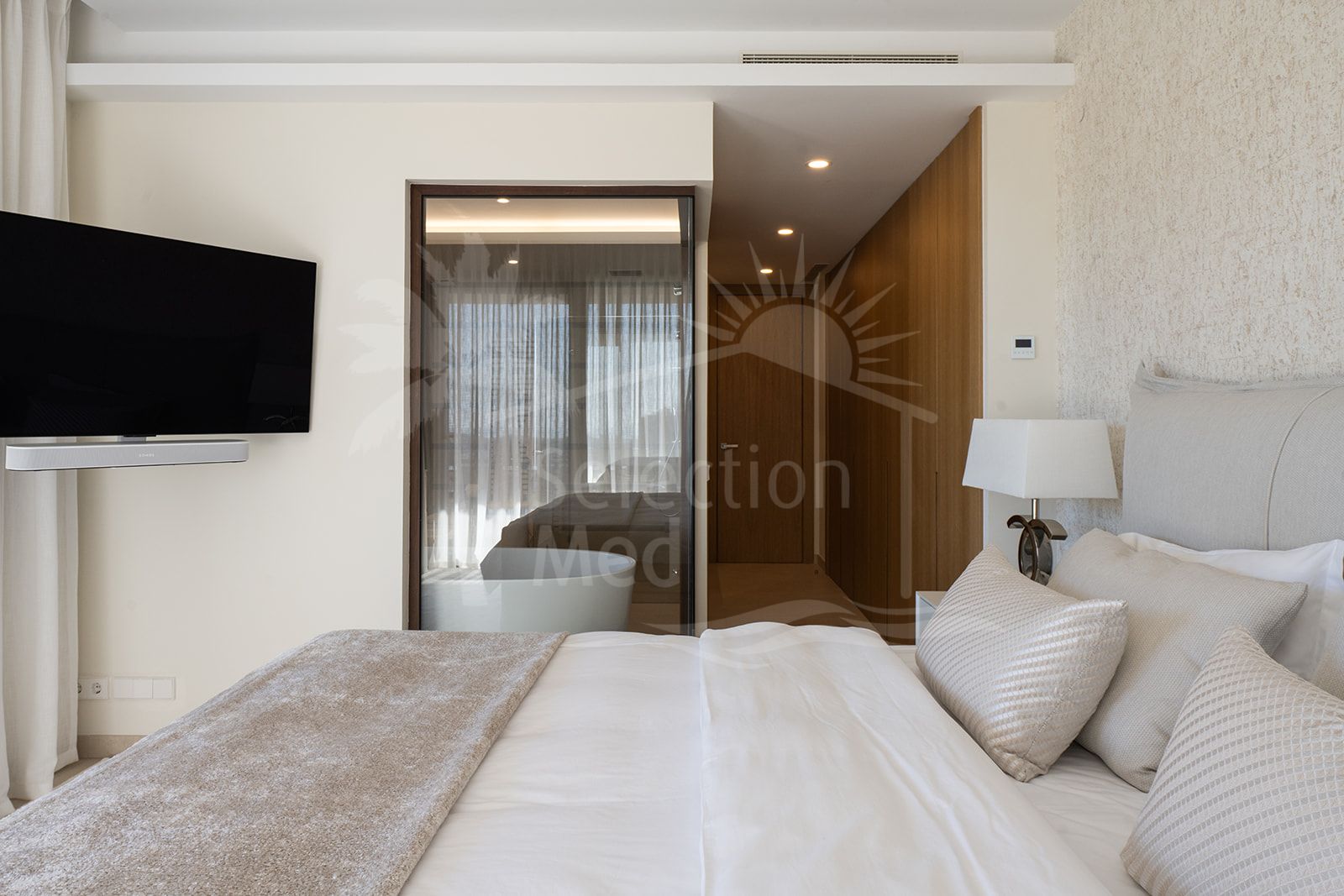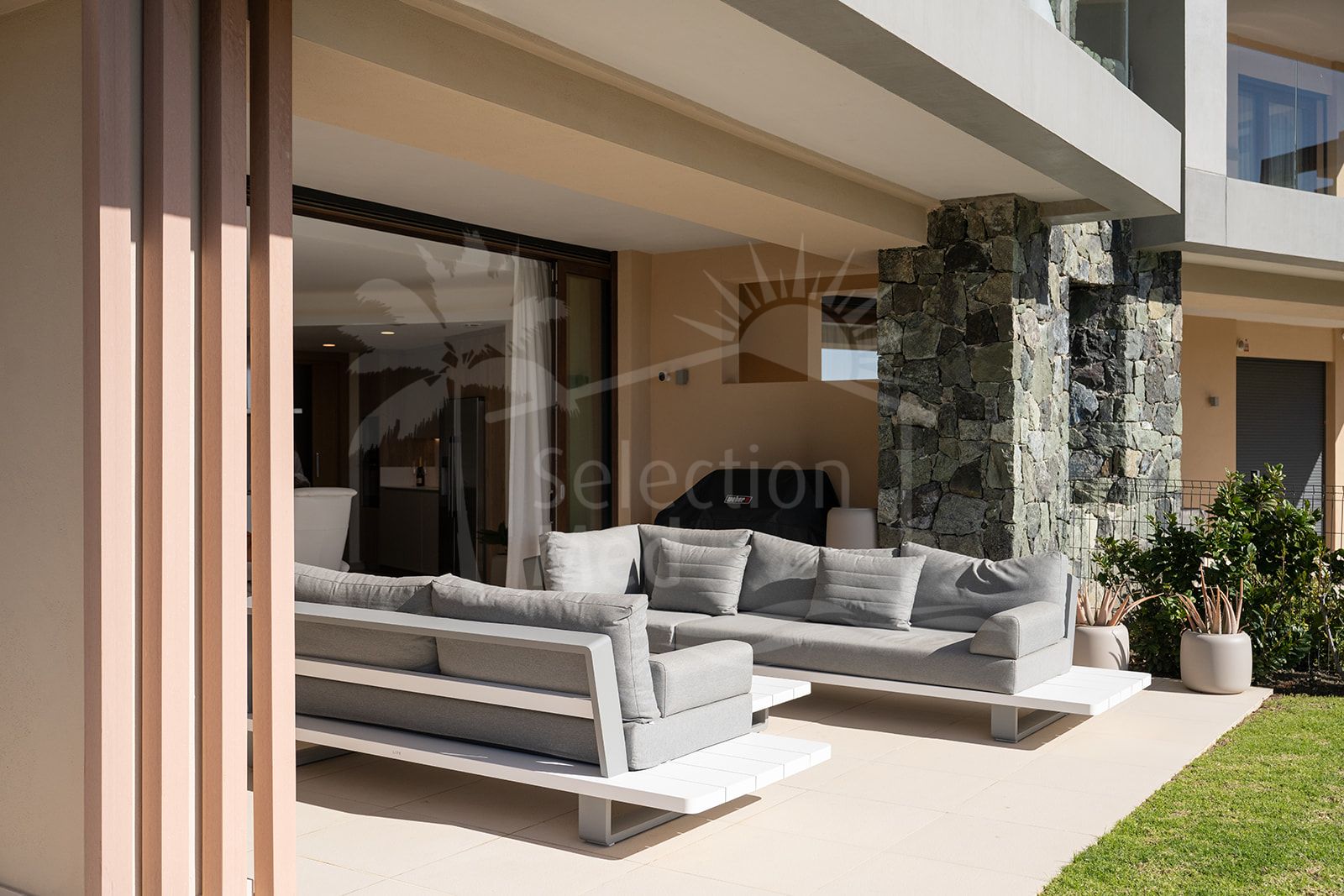 Con una generosa distribución, el apartamento cuenta con 3 bien equipados dormitorios y 2 elegantes baños, ideales para familias o para aquellos que buscan amplio espacio para huéspedes. Con una orientación que capta la calidez del sol del sur, los interiores están inundados de luz natural, lo que realza la sensación de apertura en el hogar.