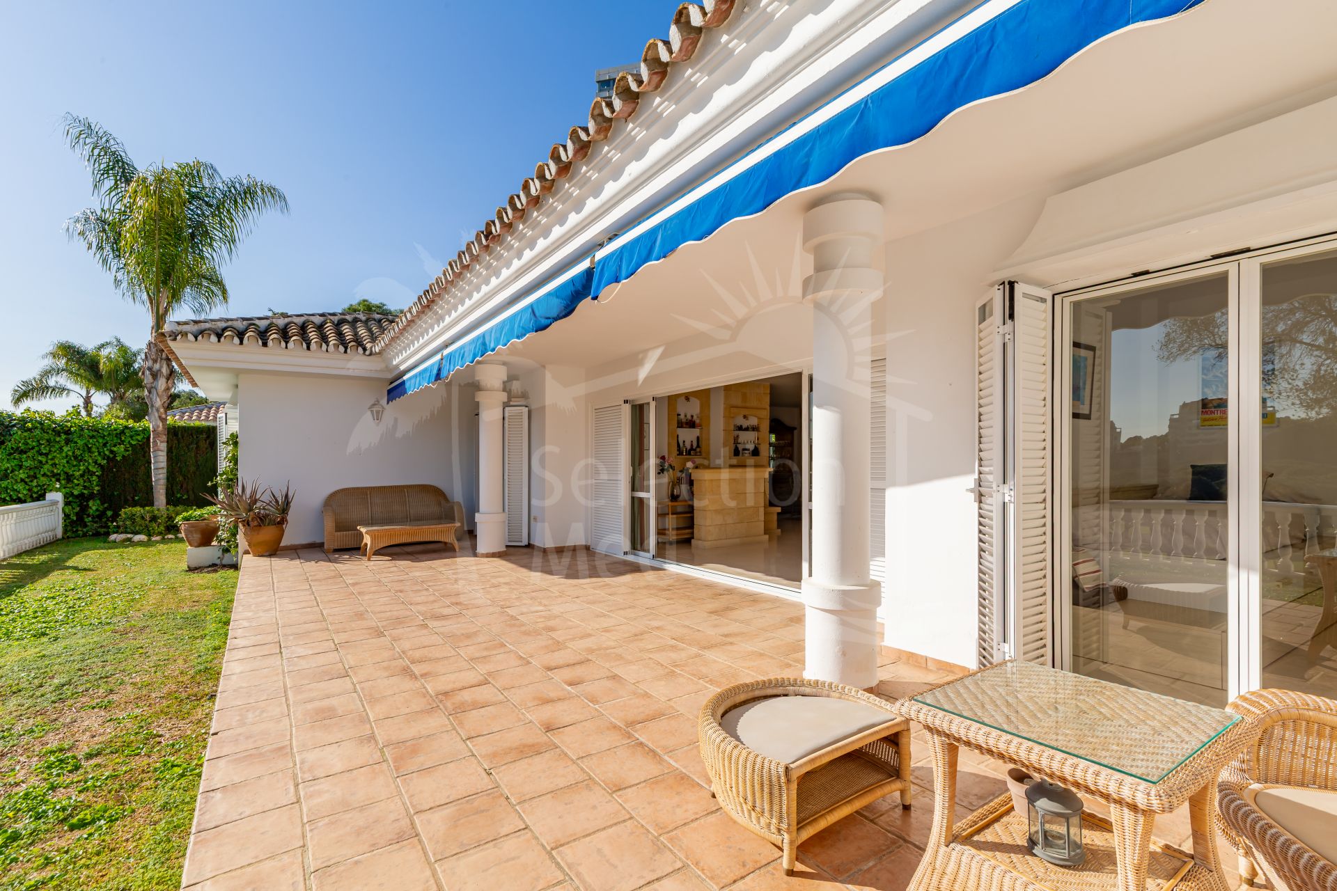 Encantadora villa de una sola planta situada en una comunidad privada y tranquila en Río Real Golf, una de las zonas residenciales más consolidadas del este de Marbella. La propiedad se encuentra a pocos minutos andando de la playa y rodeada de naturaleza y campos de golf, ofreciendo un entorno privilegiado con gran privacidad.