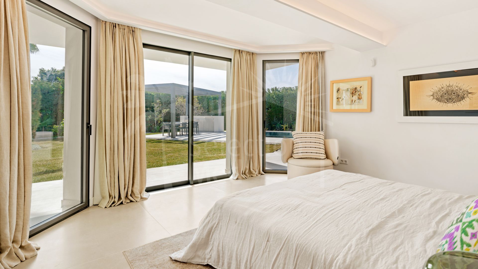 La arquitectura moderna de la villa se complementa con una gama de acabados de alta gama, que incluyen una cocina totalmente equipada, un luminoso comedor y un elegante salón con acceso a una amplia terraza privada. El espacio interior de 396,73 m² está cuidadosamente diseñado para el descanso y el entretenimiento, con un aseo de invitados, terrazas cubiertas y descubiertas, así como una lavandería y cuarto de servicio independientes. El confort está garantizado durante todo el año gracias a la calefacción por suelo radiante, el aire acondicionado y la avanzada tecnología aerotérmica.