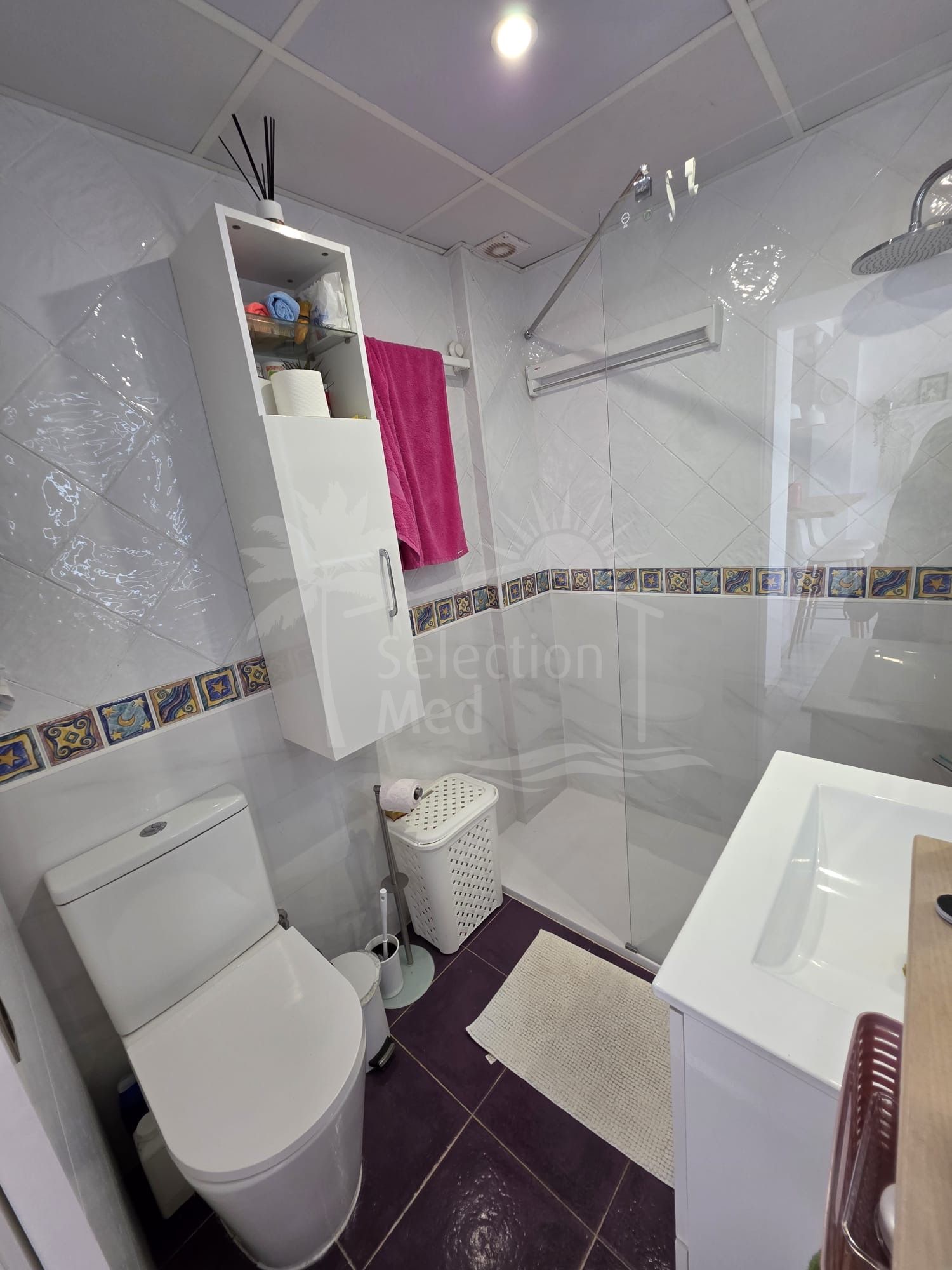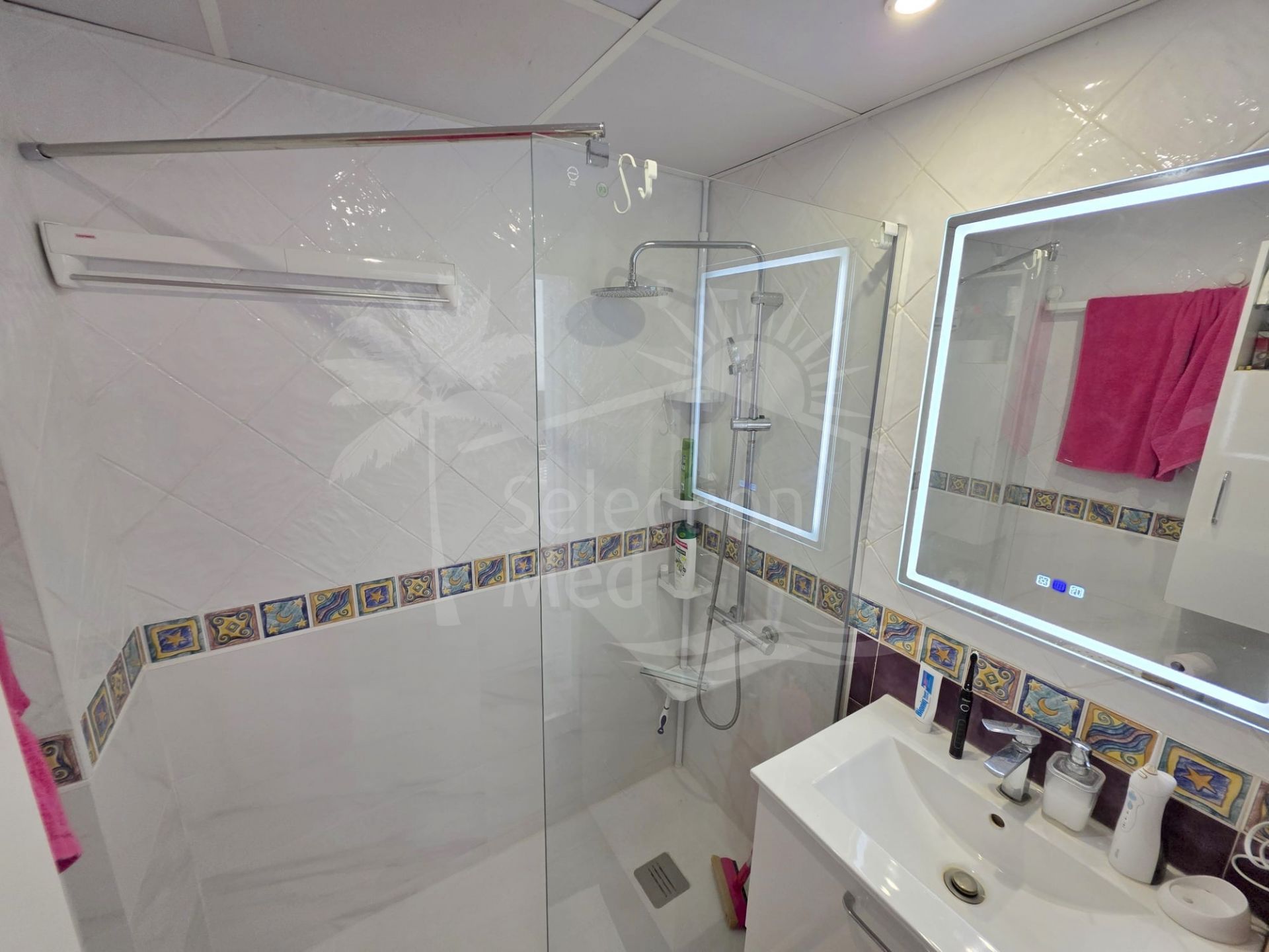 Además, podrás disfrutar de una terraza comunitaria en la azotea, ideal para tomar el sol y relajarte mientras disfrutas de espectaculares vistas tanto al mar como a las montañas. Justo enfrente, encontrarás una amplia playa con ducha, lo que convierte este enclave en un auténtico paraíso.