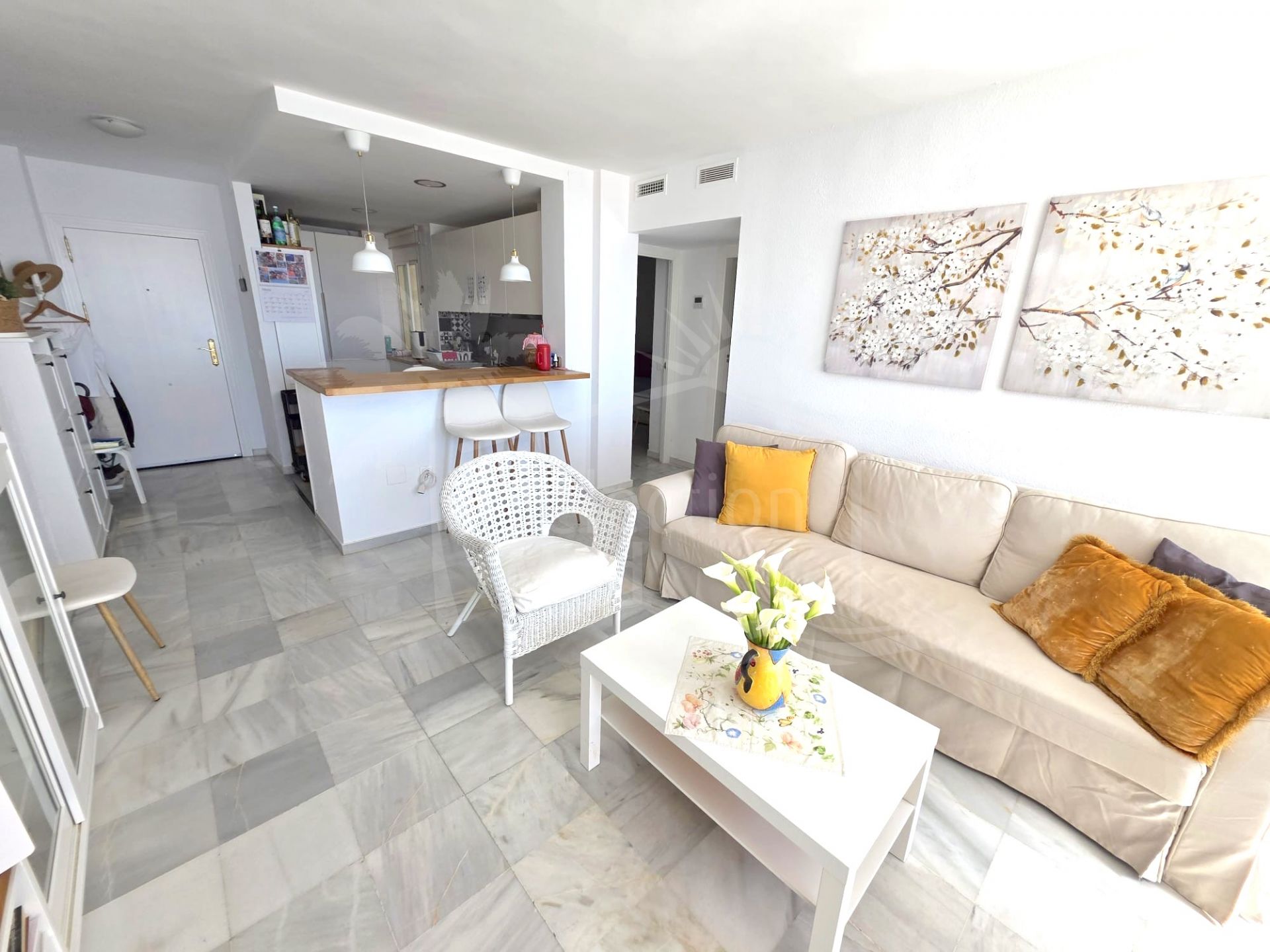 Descubre este impresionante piso ubicado en primera línea de playa, donde el sonido de las olas y las vistas panorámicas al mar se convierten en una parte integral de tu día a día. Con 2 amplios dormitorios, un luminoso salón con cocina americana integrada y una terraza privada de 4 metros, este hogar ofrece una experiencia inigualable.