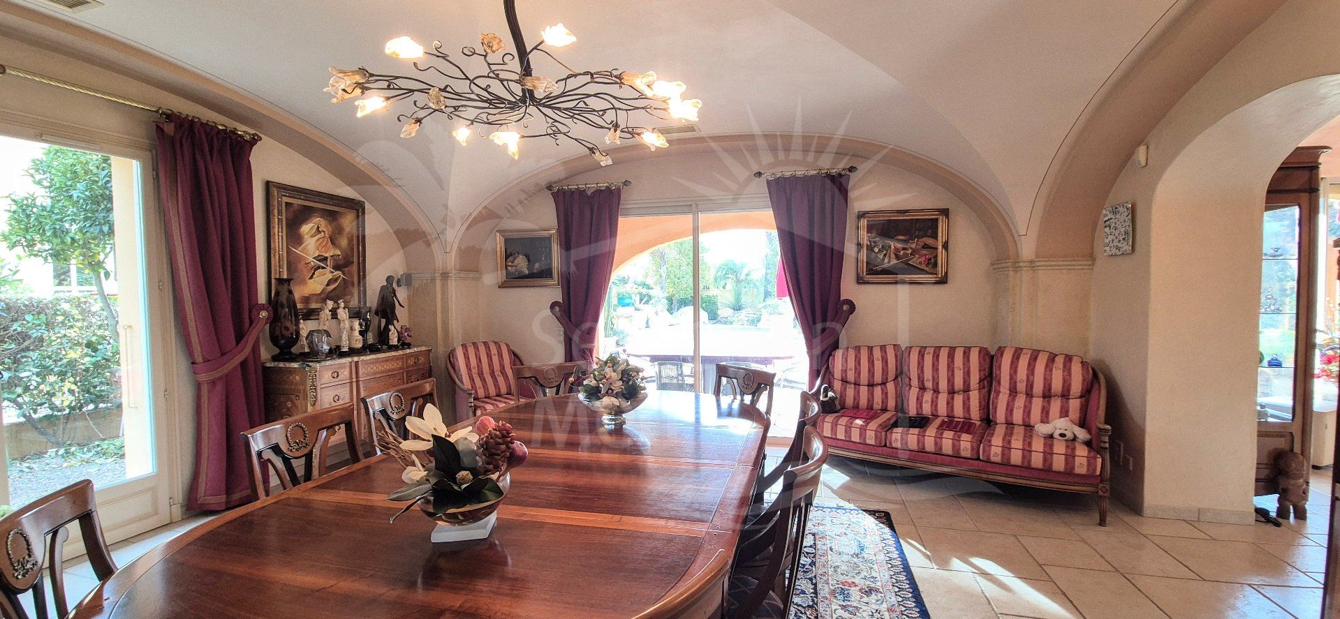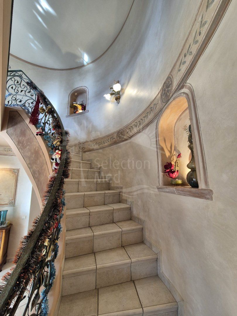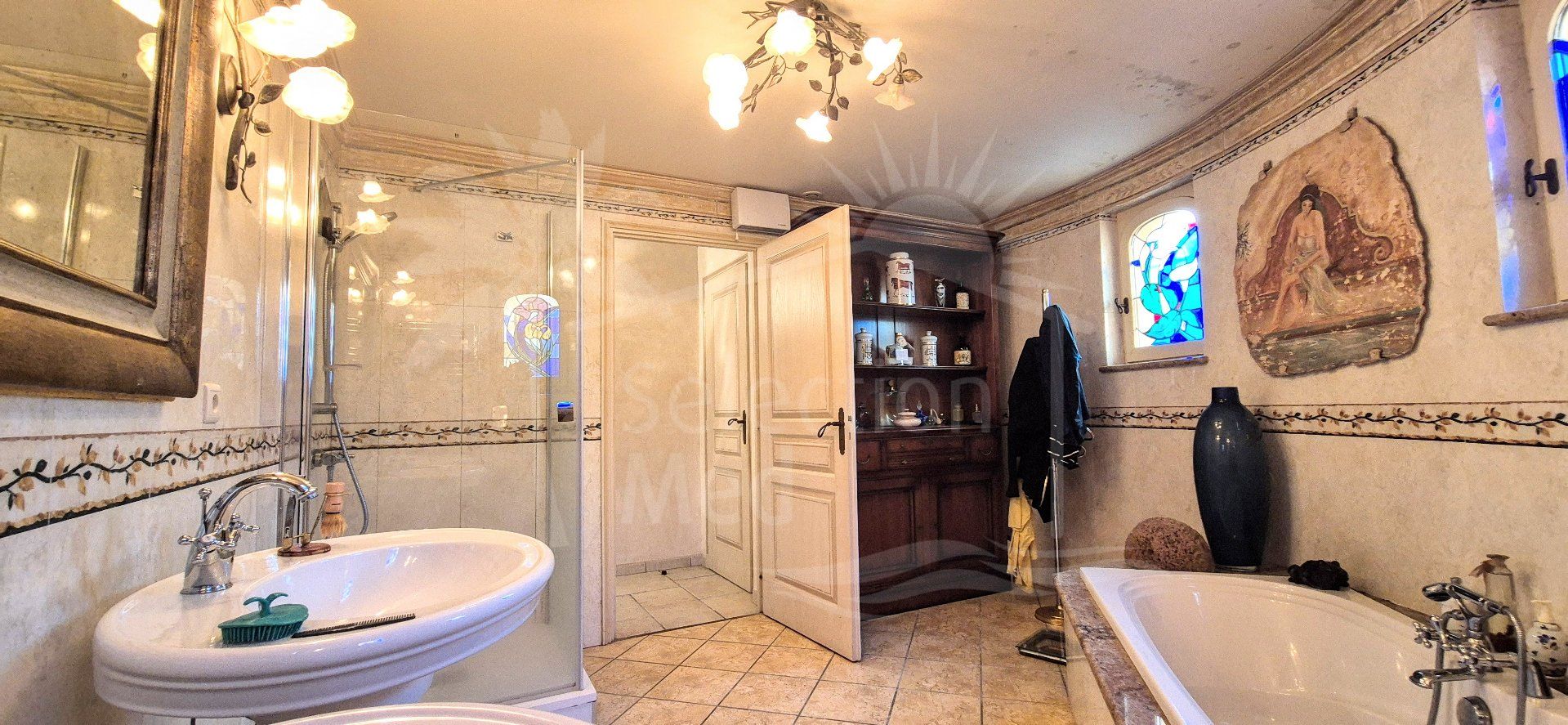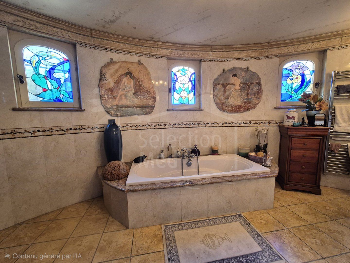 En la prestigiosa zona de La Prade, en Saint-Cyprien, a pocos pasos de tiendas, colegios, centros médicos, playas y el Parc de la Prade, con sus senderos deportivos y estanques, se encuentra a la venta esta magnífica y singular villa. Ofrece 207 m² de superficie habitable (245 m² de superficie total construida) en una parcela ajardinada de 1299 m². Un jardín mediterráneo con palmeras, limoneros, naranjos, higueras y albaricoqueros rodea una piscina enterrada de diseño exclusivo con spa. La propiedad garantiza privacidad y tranquilidad, ideal para una relajación total. Una hermosa entrada permite aparcar una autocaravana y otros vehículos, y conduce a un garaje doble con altillo, que ofrece amplio espacio de almacenamiento y taller. Se accede a la propiedad a través de una preciosa puerta principal de hierro forjado que da paso a un recibidor circular de 18,5 m², el cual conduce a las zonas de estar y descanso. La zona de descanso consta de tres amplias y luminosas habitaciones de aproximadamente 15, 21 y 14 m², un aseo y un baño de aproximadamente 11,5 m² equipado con bañera y ducha, garantizando comodidad y funcionalidad. En el ala derecha, se encuentra un salón de 24 m² con un precioso techo abovedado y chimenea, que se extiende hasta una luminosa sala de estar de aproximadamente 35,2 m². Grandes puertas francesas dan a una terraza cubierta de aproximadamente 21,66 m² con vistas a la piscina de cloro, con una capacidad de aproximadamente 80 m³. Una hermosa cocina totalmente equipada, con armarios de roble y encimeras de granito, de aproximadamente 22 m², ofrece una preciosa vista al magnífico parque de La Prade. Una despensa contigua de aproximadamente 10 m², un despacho de 7,6 m² y un aseo de cortesía completan esta planta. Una escalera de hierro forjado conduce a una biblioteca de aproximadamente 13 m² y a un solárium de aproximadamente 25 m², con impresionantes vistas al jardín y al macizo del Canigó. Entre sus características de alta calidad se incluyen: sistema de alarma con grabación, aire acondicionado centralizado, doble acristalamiento, calentador solar de agua, persianas eléctricas, pozo agrícola con riego automático y puertas motorizadas y peatonales. La piscina está revestida con mosaico de vidrio. La construcción tradicional de esta hermosa propiedad emplea materiales de primera calidad, lo que garantiza su durabilidad y confort térmico. Ubicada en un entorno tranquilo cerca del mar, esta propiedad es un verdadero remanso de paz con un gran potencial residencial y hotelero. Prepare sus maletas para una nueva vida bajo el sol en nuestra región. ¡Contácteme pronto para concertar una visita! Puede consultar información sobre los riesgos a los que está expuesta esta propiedad en la página web de Georisques: www.georisques.gouv.fr