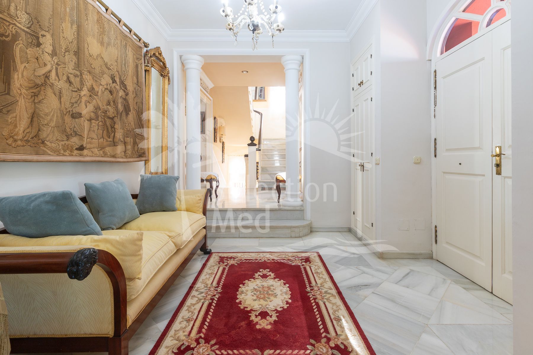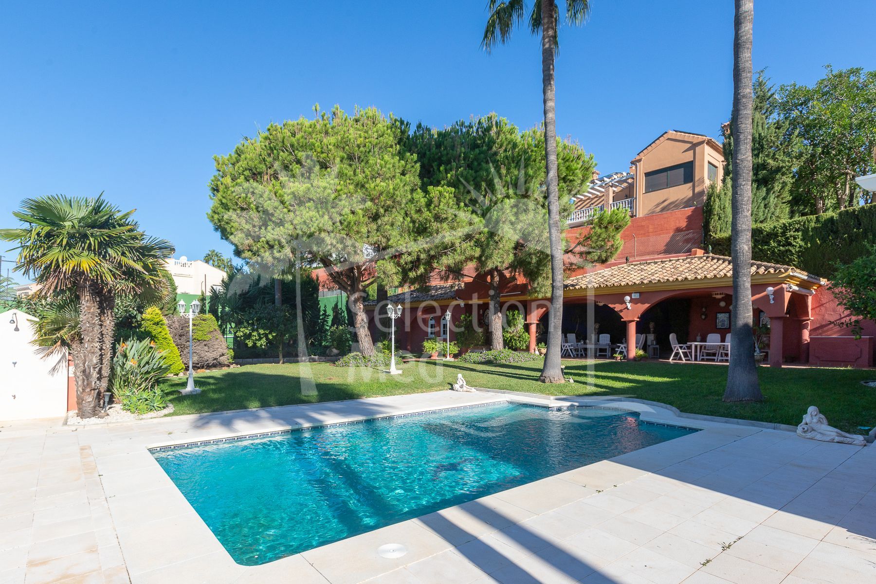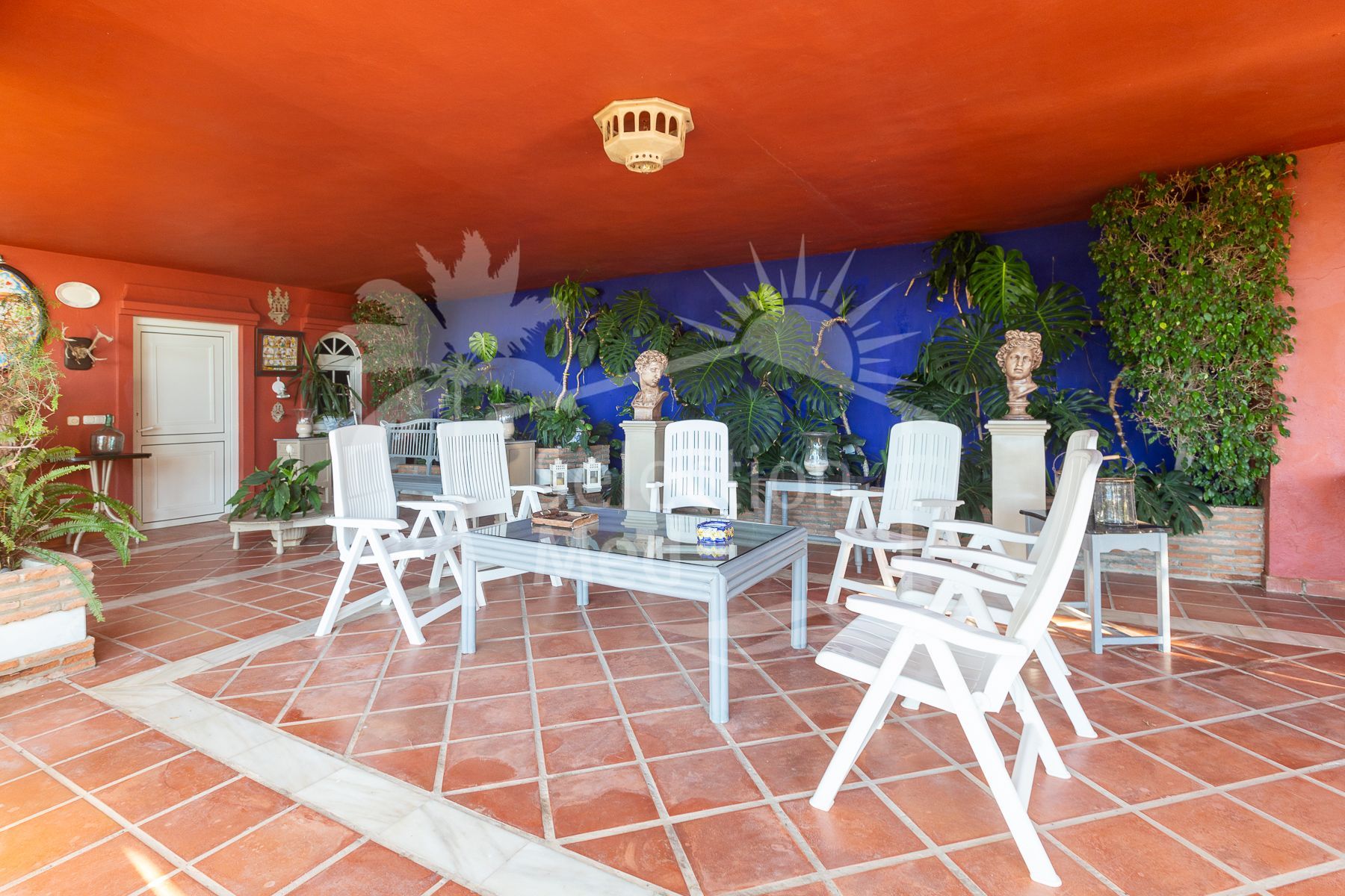 Bienvenido a este enclave idílico en Estepona, donde se alza una magnífica villa concebida como un auténtico refugio de serenidad, confort y privacidad. Ubicada sobre dos parcelas que suman 1.748 m², esta propiedad ofrece un entorno único, perfectamente resguardado por un sólido muro perimetral que garantiza seguridad y total intimidad.