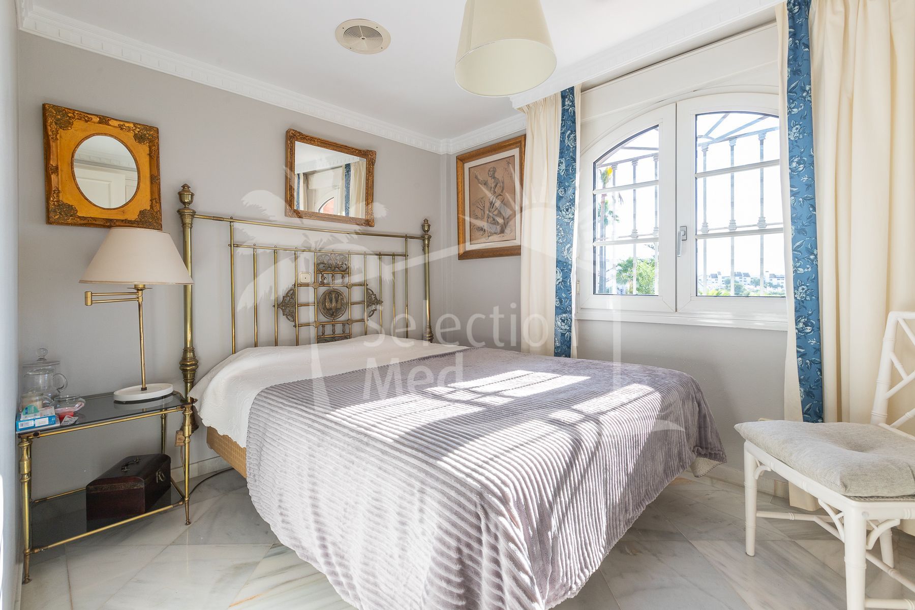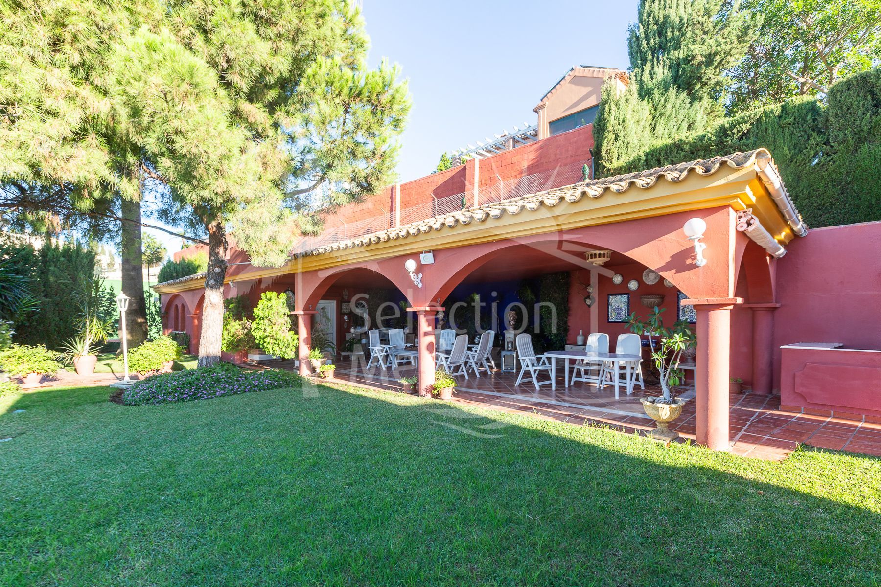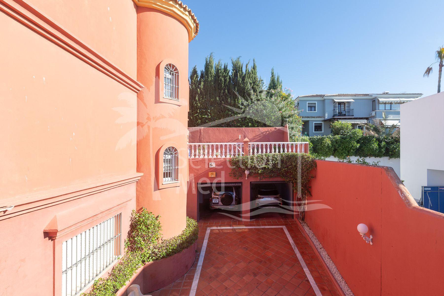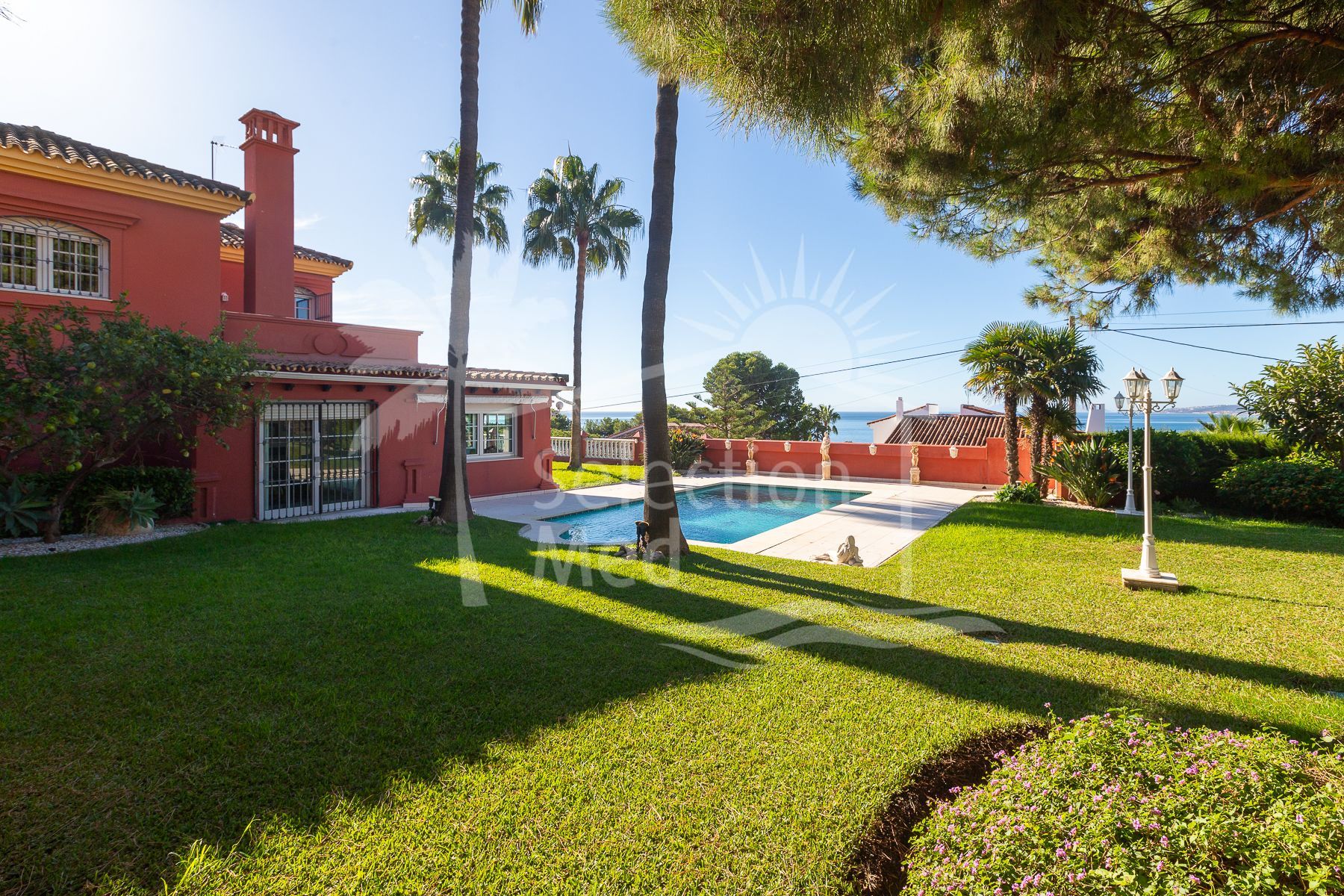 Bienvenido a este enclave idílico en Estepona, donde se alza una magnífica villa concebida como un auténtico refugio de serenidad, confort y privacidad. Ubicada sobre dos parcelas que suman 1.748 m², esta propiedad ofrece un entorno único, perfectamente resguardado por un sólido muro perimetral que garantiza seguridad y total intimidad.