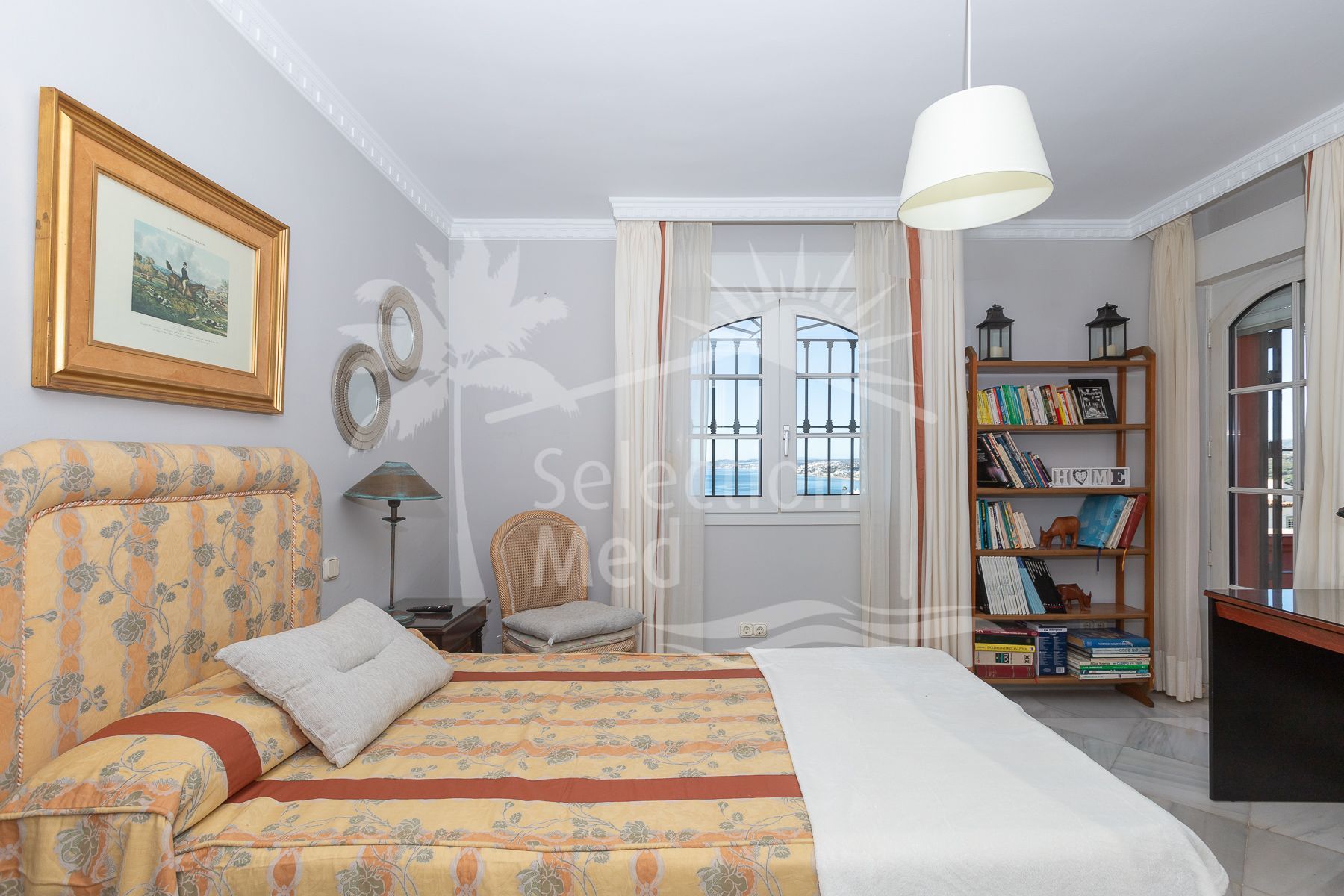 La planta superior alberga cinco dormitorios, todos ellos con carácter propio y gran luminosidad. Algunos disfrutan de vistas al mar, aportando un valor añadido excepcional. La planta se completa con tres baños, garantizando privacidad y confort para toda la familia. Desde la terraza, las vistas abiertas invitan a disfrutar de momentos de calma, donde la brisa marina y el entorno natural se fusionan en perfecta armonía.