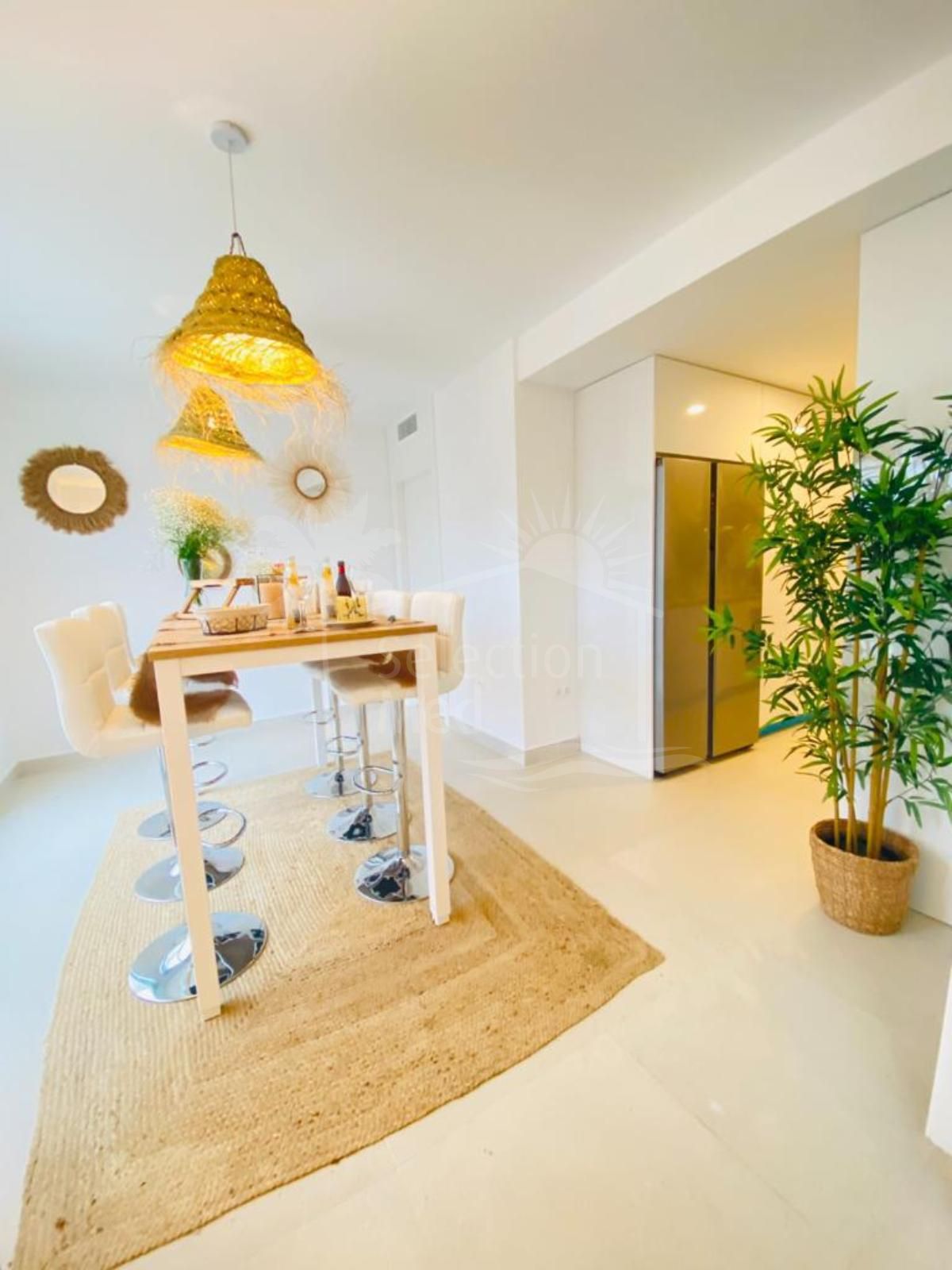 Esta amplia Garden House de 5 dormitorios ofrece 4 habitaciones en suite, más un dormitorio independiente con baño para el personal de servicio, un aseo de cortesía, un luminoso salón-comedor de planta abierta de 60 m², cocina moderna con zona de desayuno y una práctica zona de lavandería.