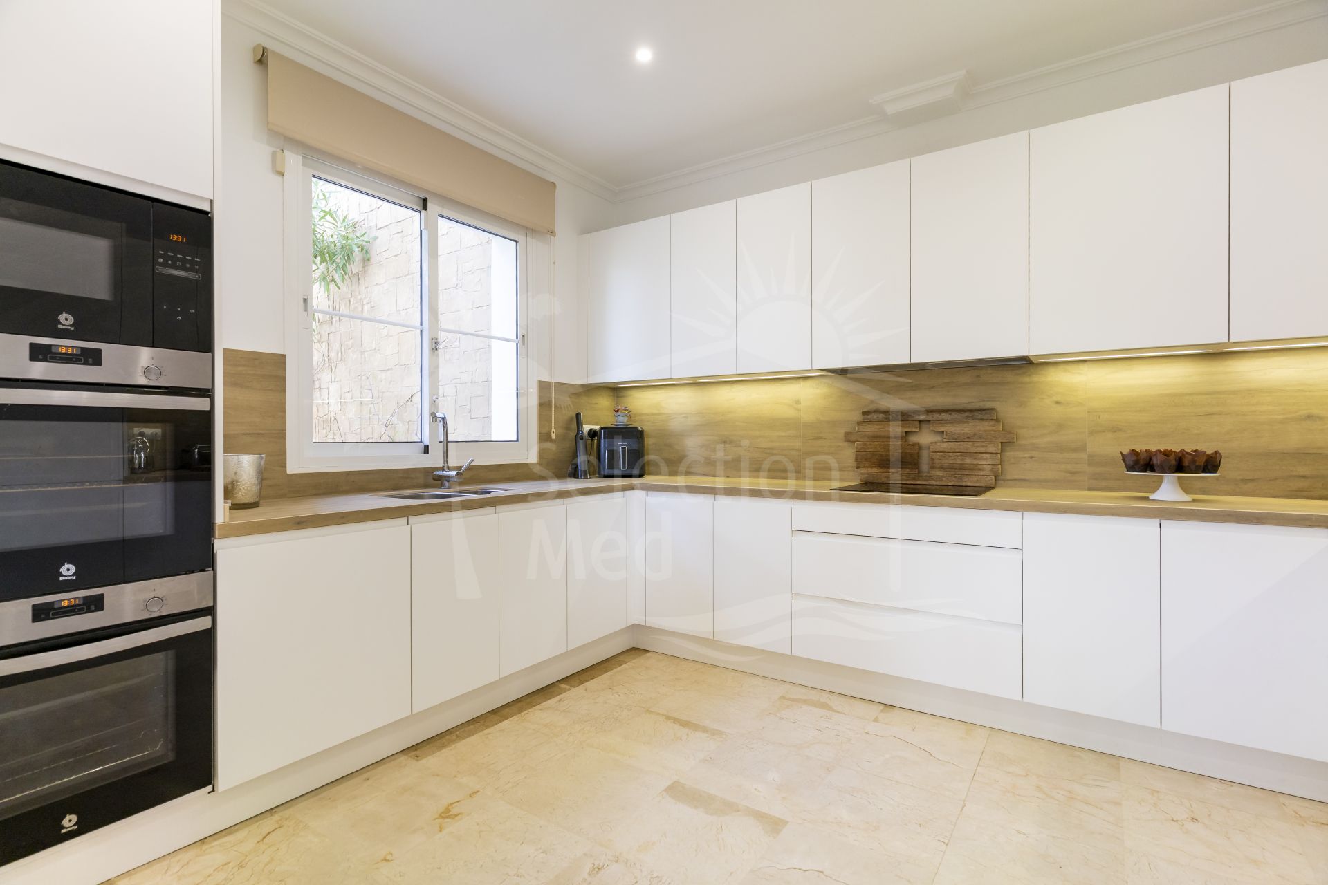 La cocina ha sido renovada con altos estándares y tiene el potencial de integrarse con la zona principal de estar o reconfigurarse para crear un cuarto dormitorio si se desea.
