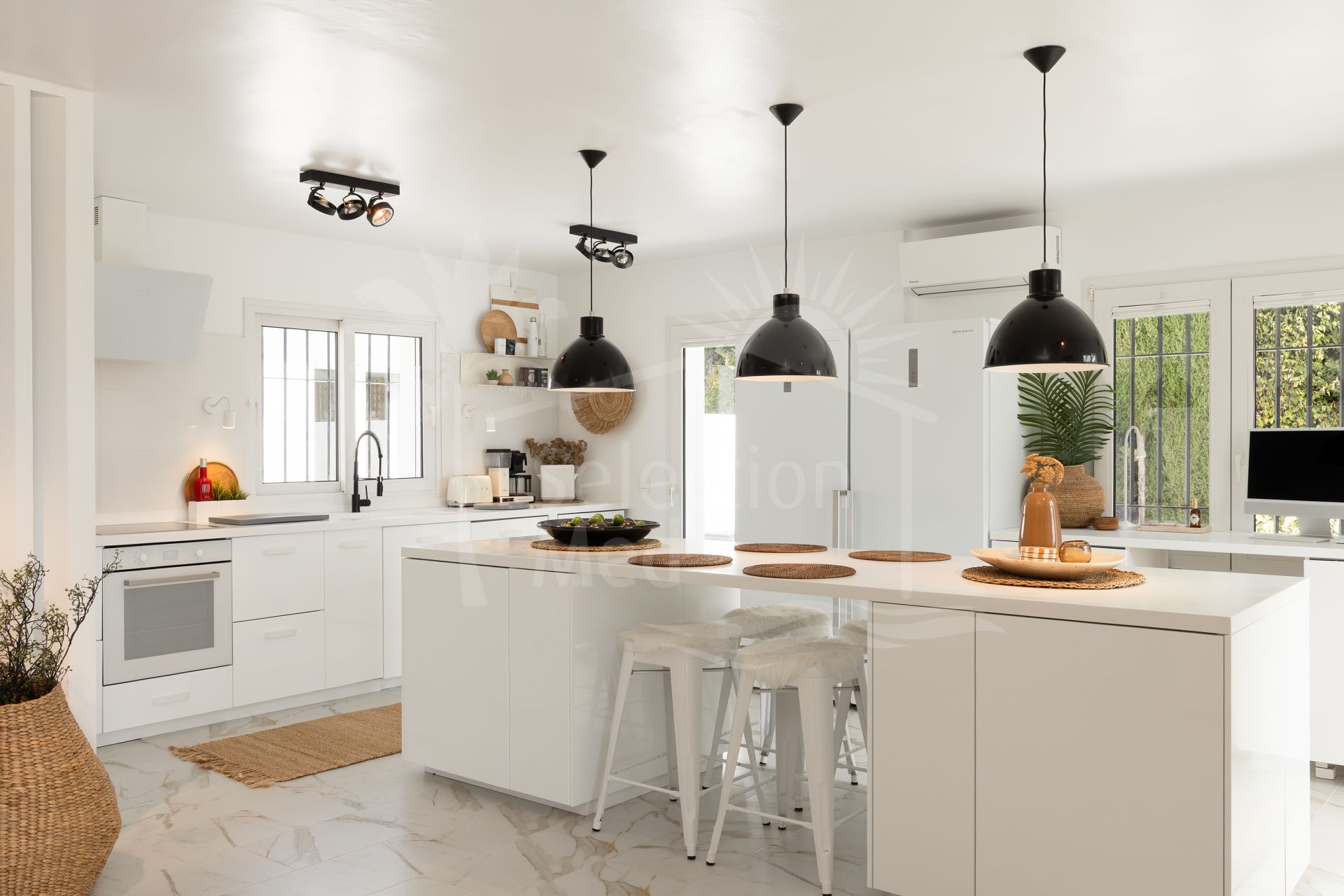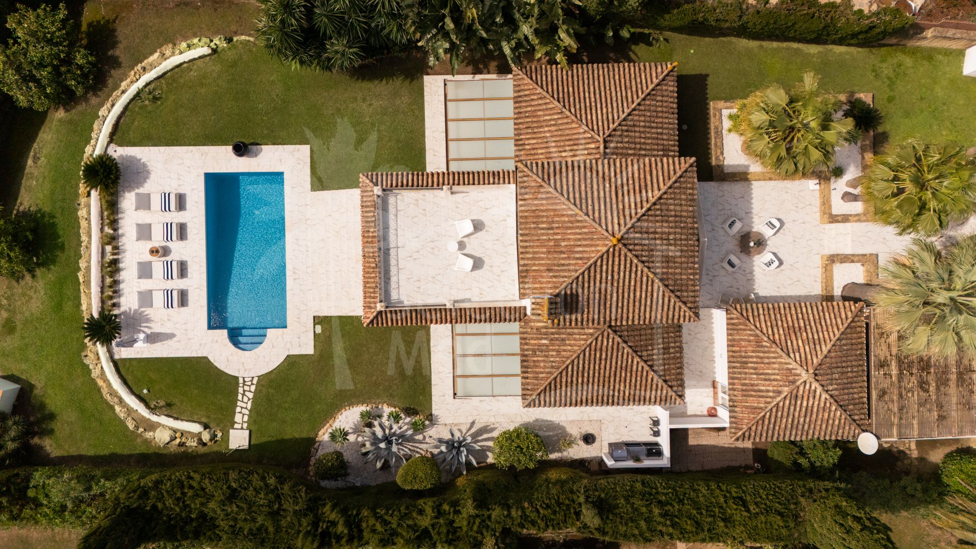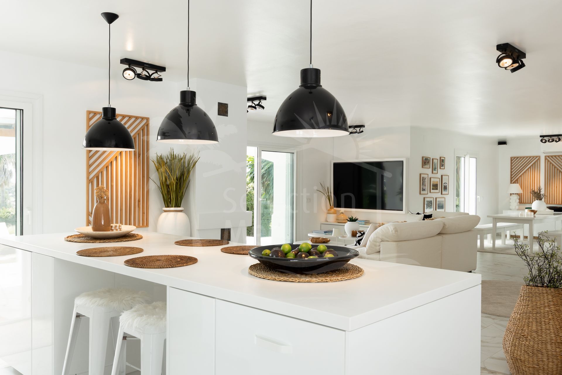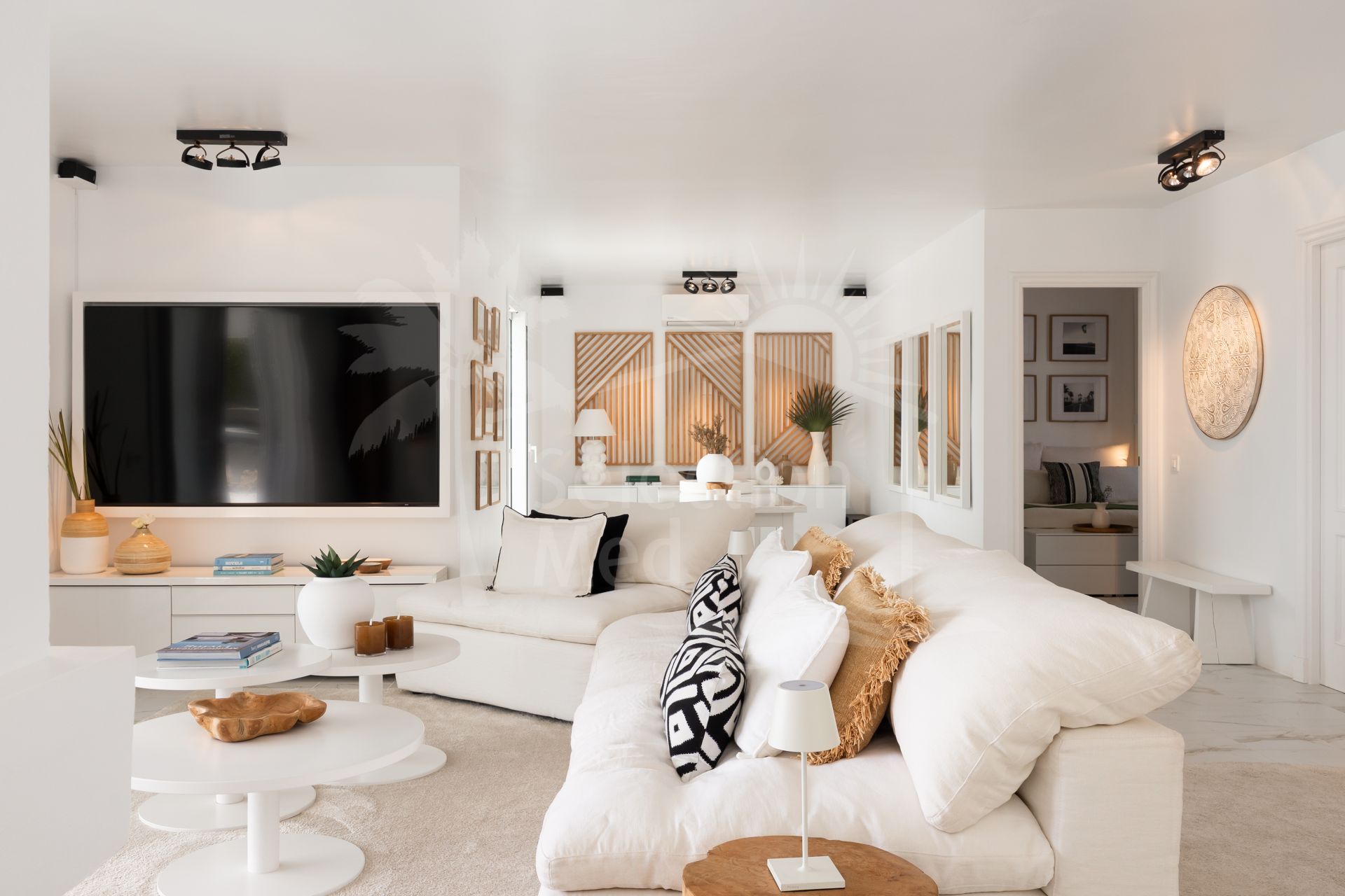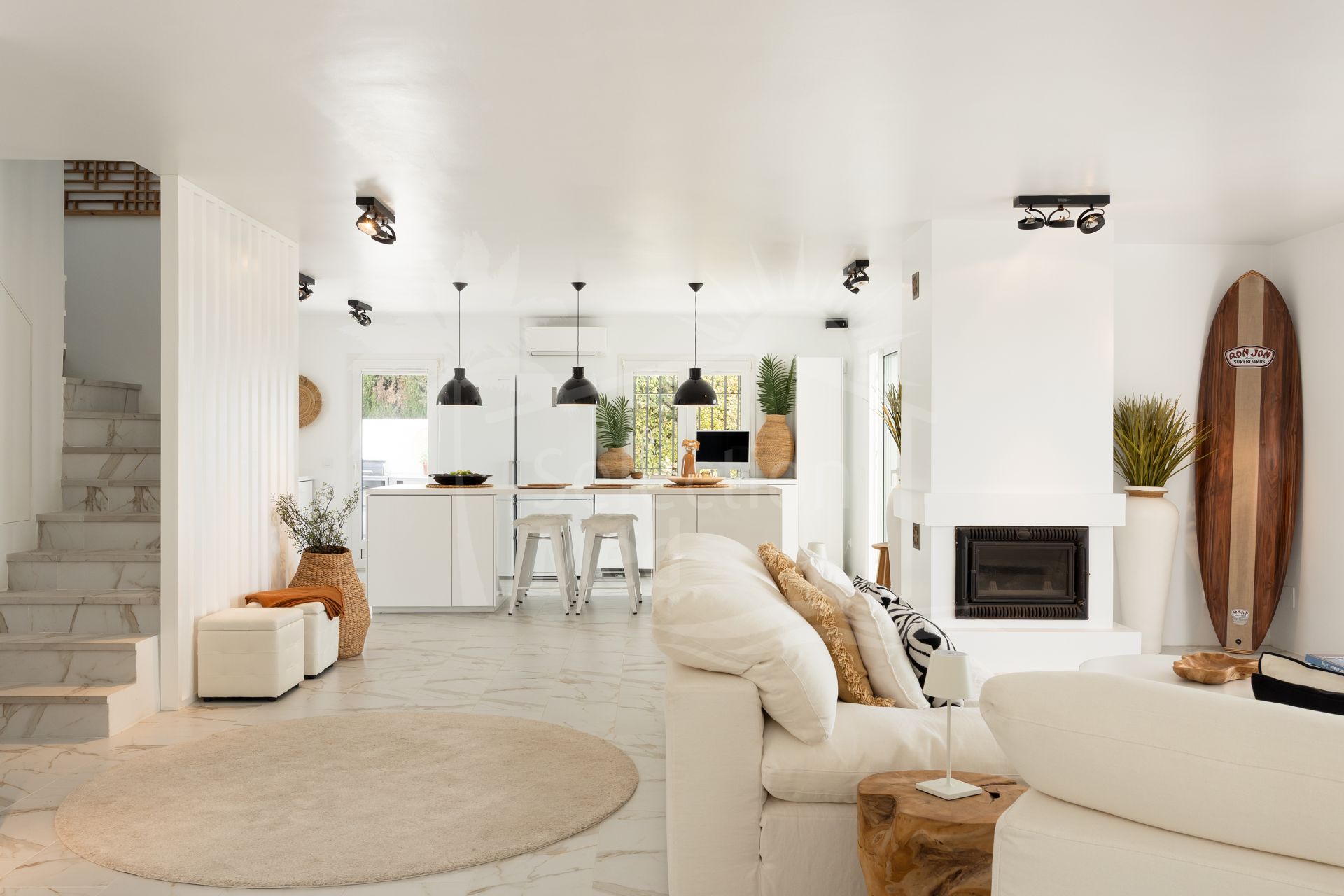 Una hermosa vivienda familiar andaluza completamente renovada, con una elegancia tranquila y discreta, Casa Serena disfruta de vistas abiertas al mar orientadas al sur desde el momento en que se cruza la entrada. La planta principal está diseñada para una vida fluida entre interior y exterior, con una cocina de concepto abierto, comedor y sala de estar que se integran directamente con una amplia terraza cubierta. Desde aquí, las vistas se extienden sobre la piscina, el campo de golf y el Mediterráneo, creando un entorno ideal tanto para mañanas tranquilas como para reuniones relajadas.